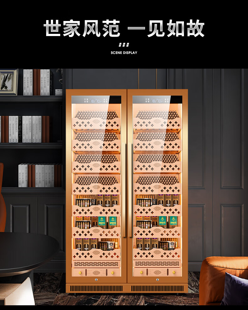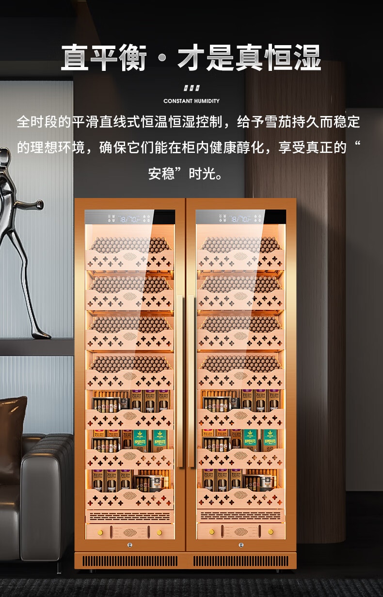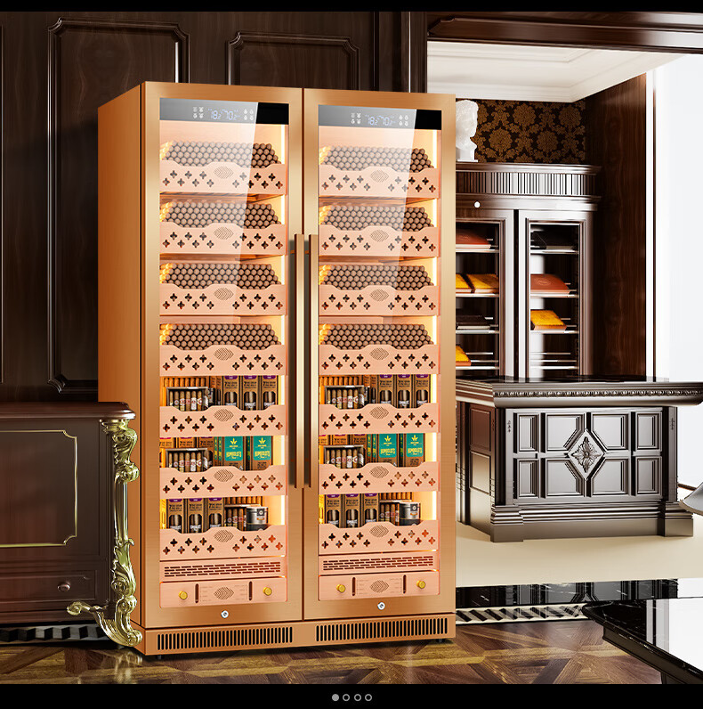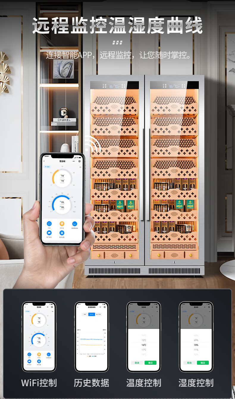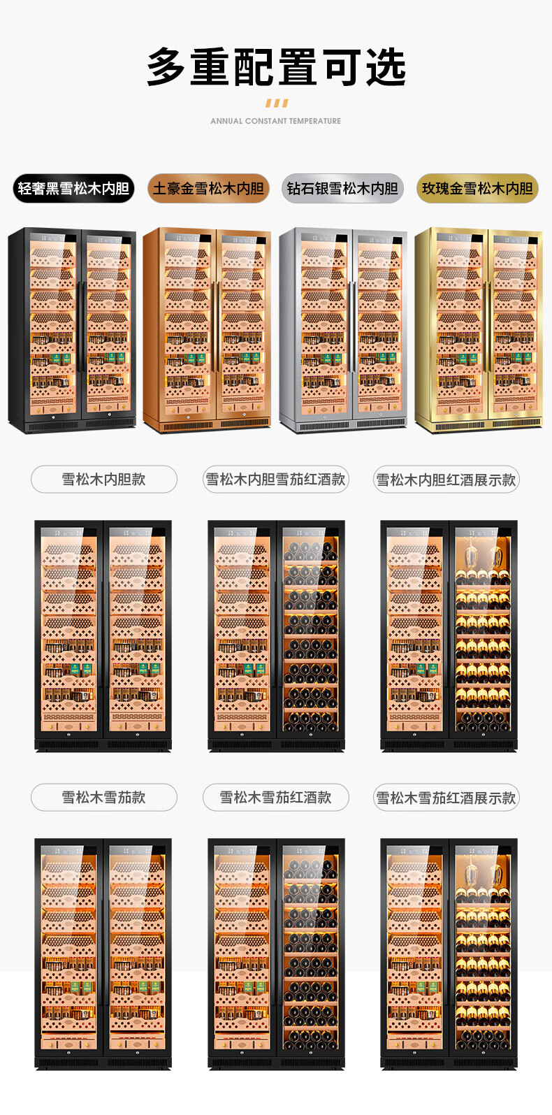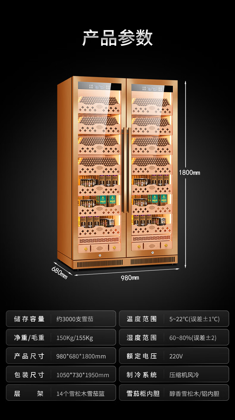 Kelong 320C cigar cabinet intelligent constant temperature and humidity Spanish cedar wood liner WiFi remote control water ion purified ammonia double door dual system stainless steel cabinet cigar and wine cabinet Tuhao gold cedar wood cigar model WiFi + purified ammonia + constant temperature and humidity