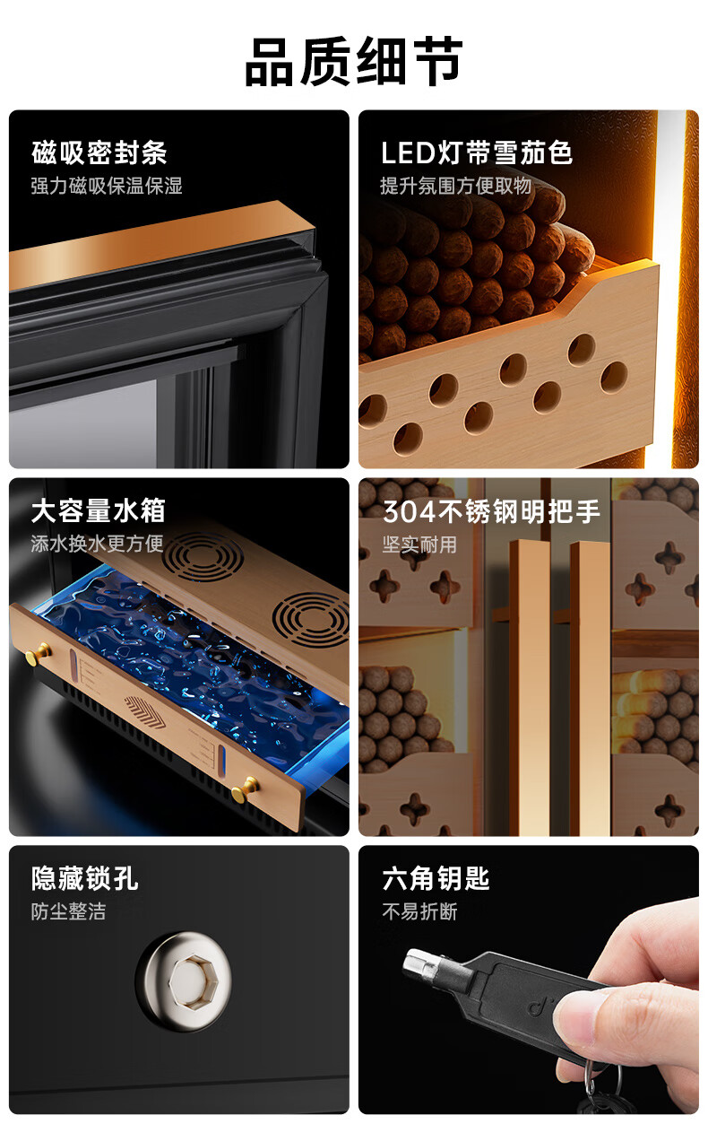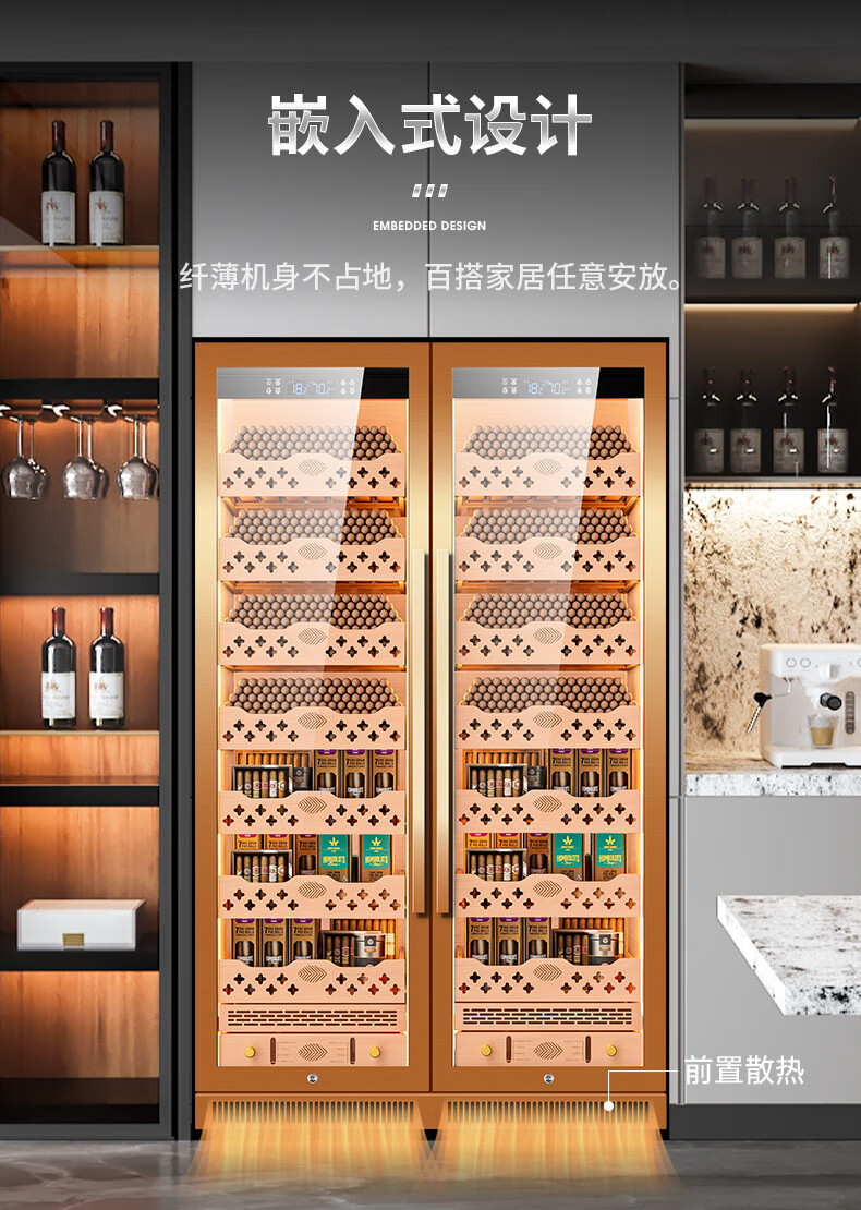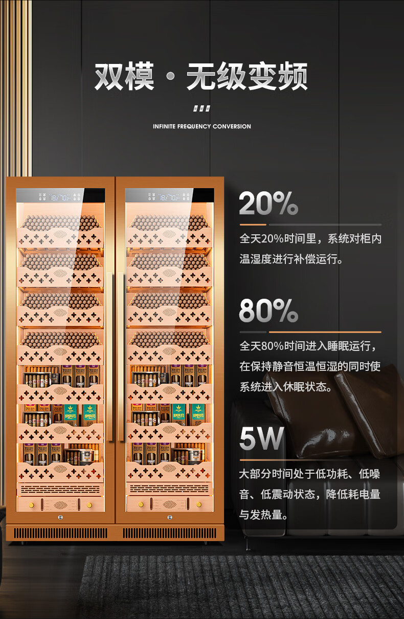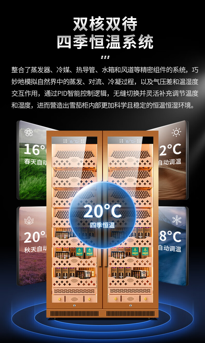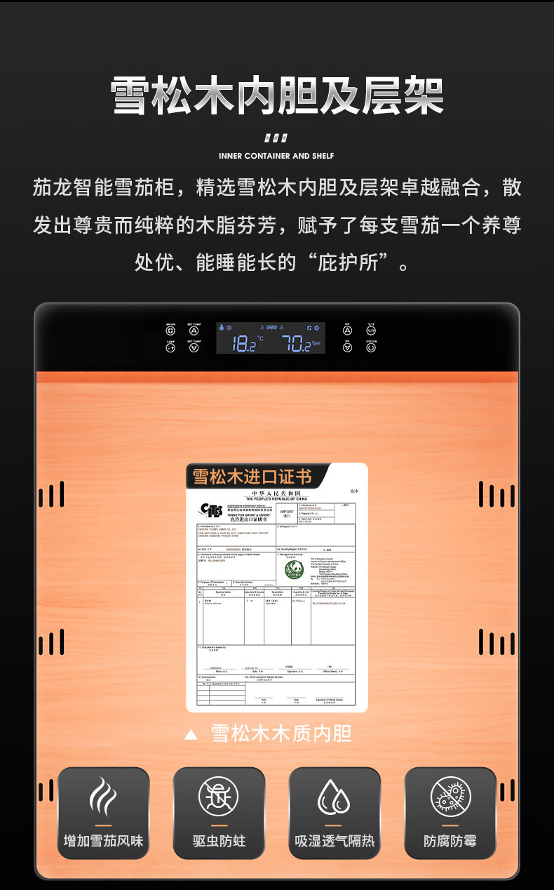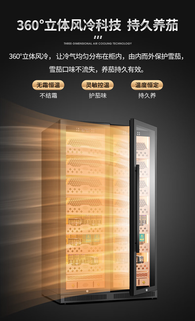 Kelong 320C cigar cabinet intelligent constant temperature and humidity Spanish cedar wood liner WiFi remote control water ion purified ammonia double door dual system stainless steel cabinet cigar and wine cabinet Tuhao gold cedar wood cigar model WiFi + purified ammonia + constant temperature and humidity