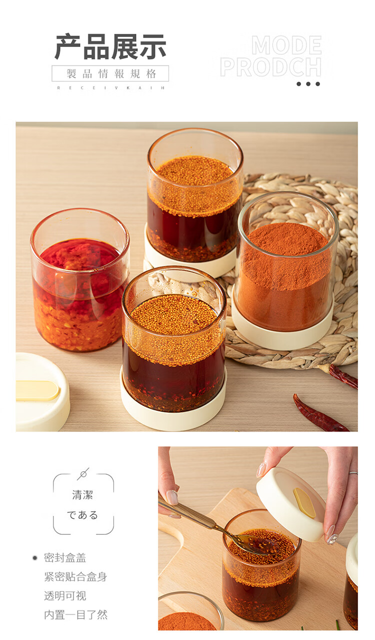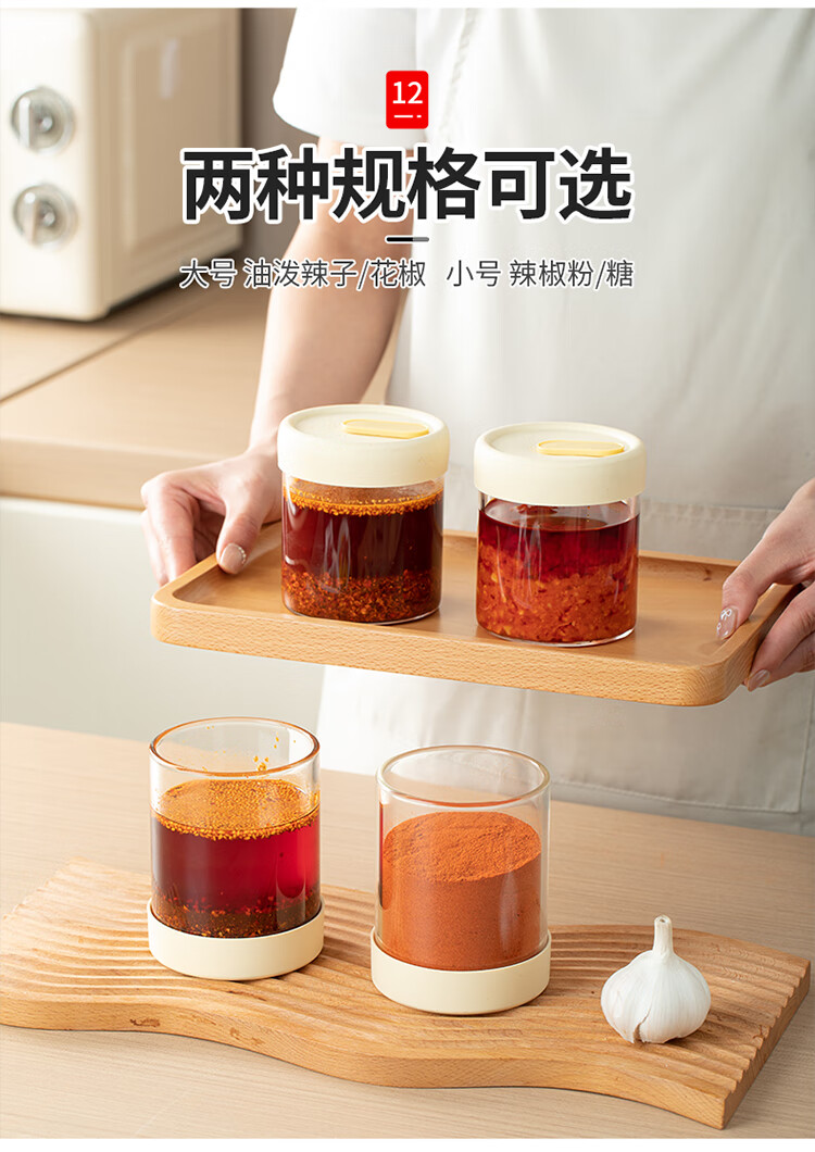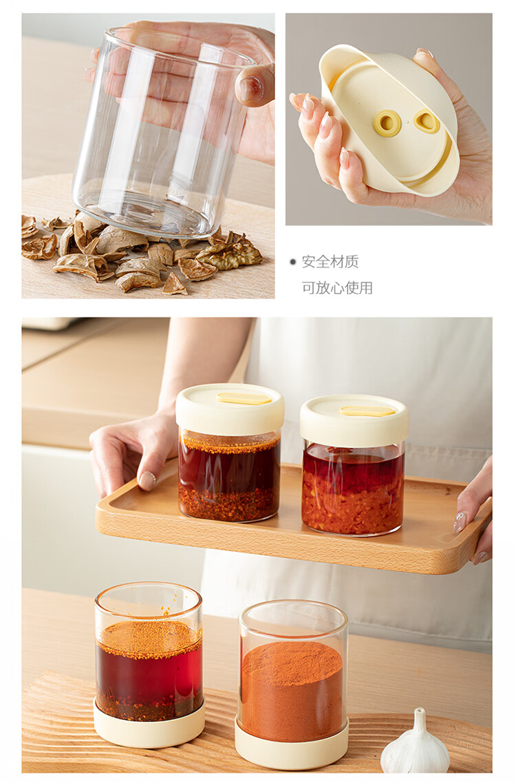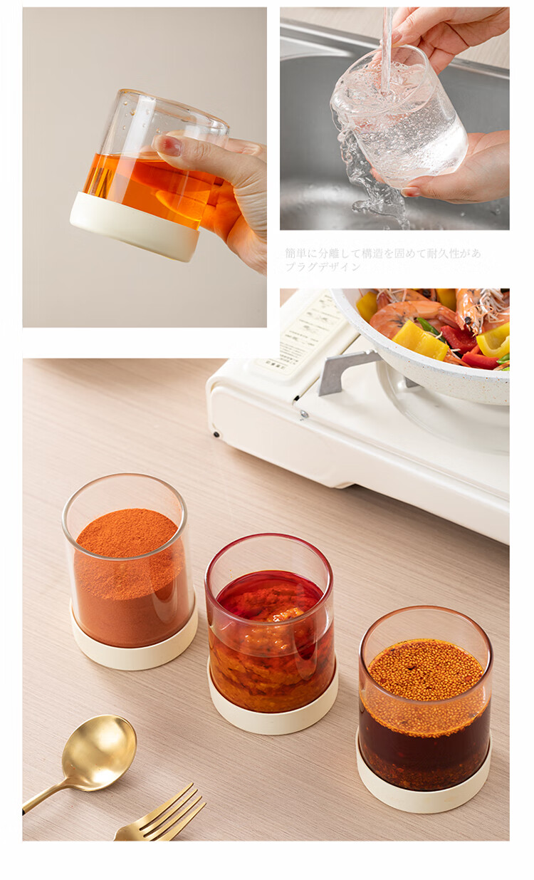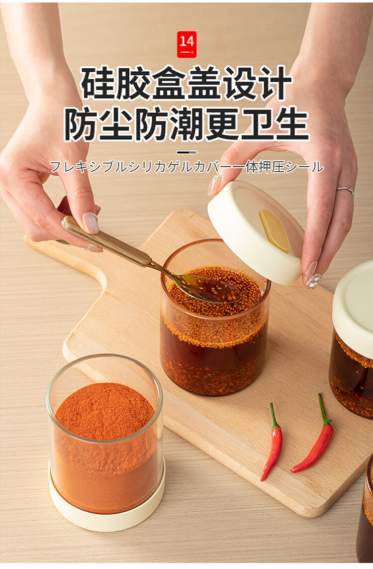 Home KATEI STORY Japanese chili oil special jar household sealed oil spicy jar kitchen food grade cooked oil seasoning jar high temperature resistant beige high borosilicate glass 2-piece set 400ml