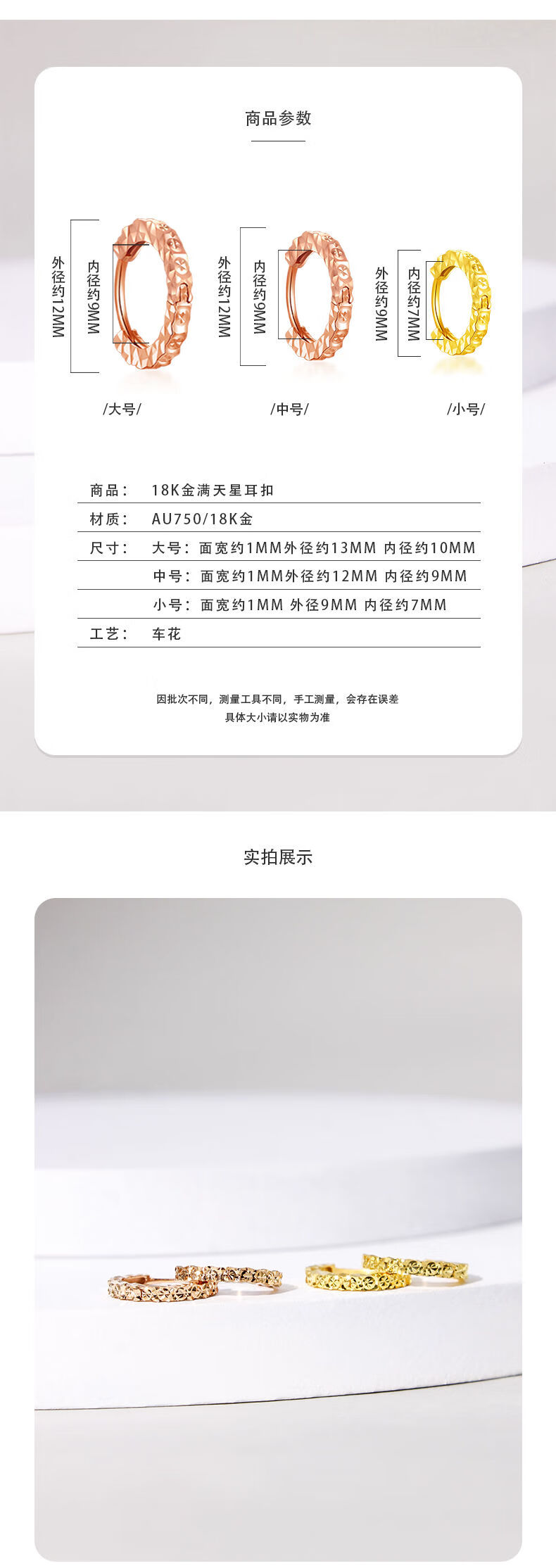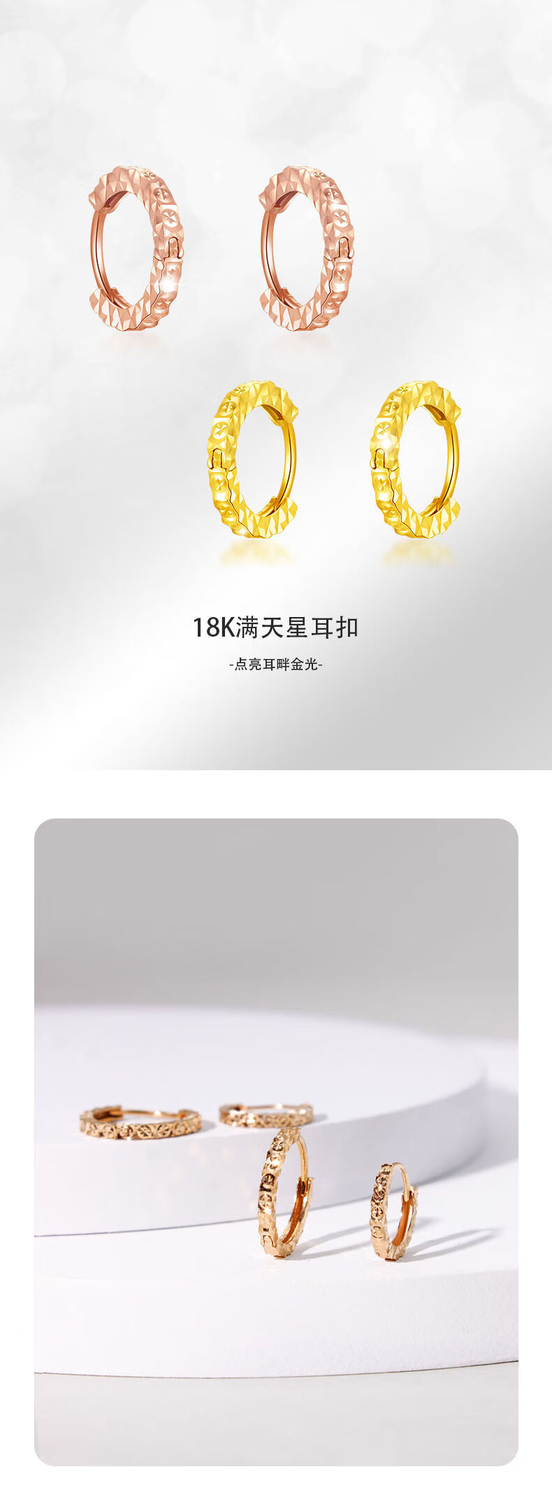 OEMG18K gold earrings color gold rice flower earrings AU750 yellow gold baby's breath earrings rose gold ear bone stud earrings 18K rose gold baby's breath earrings (medium size one