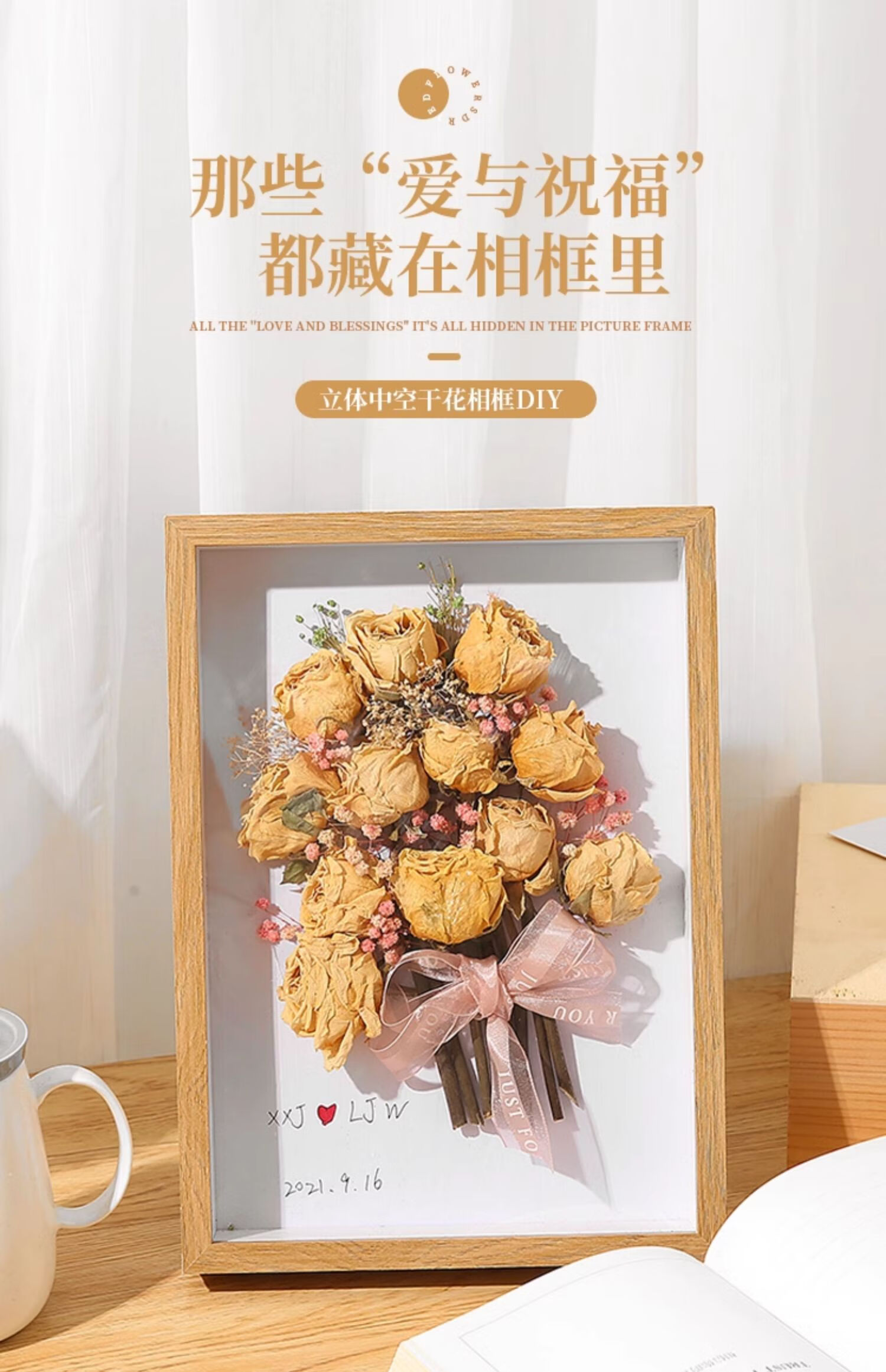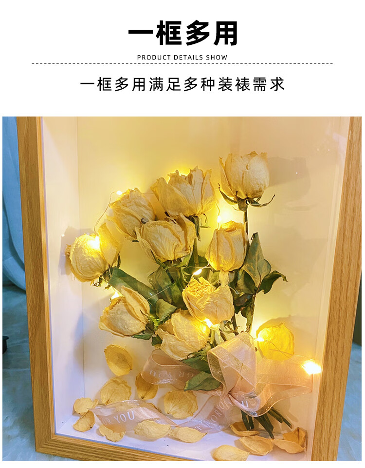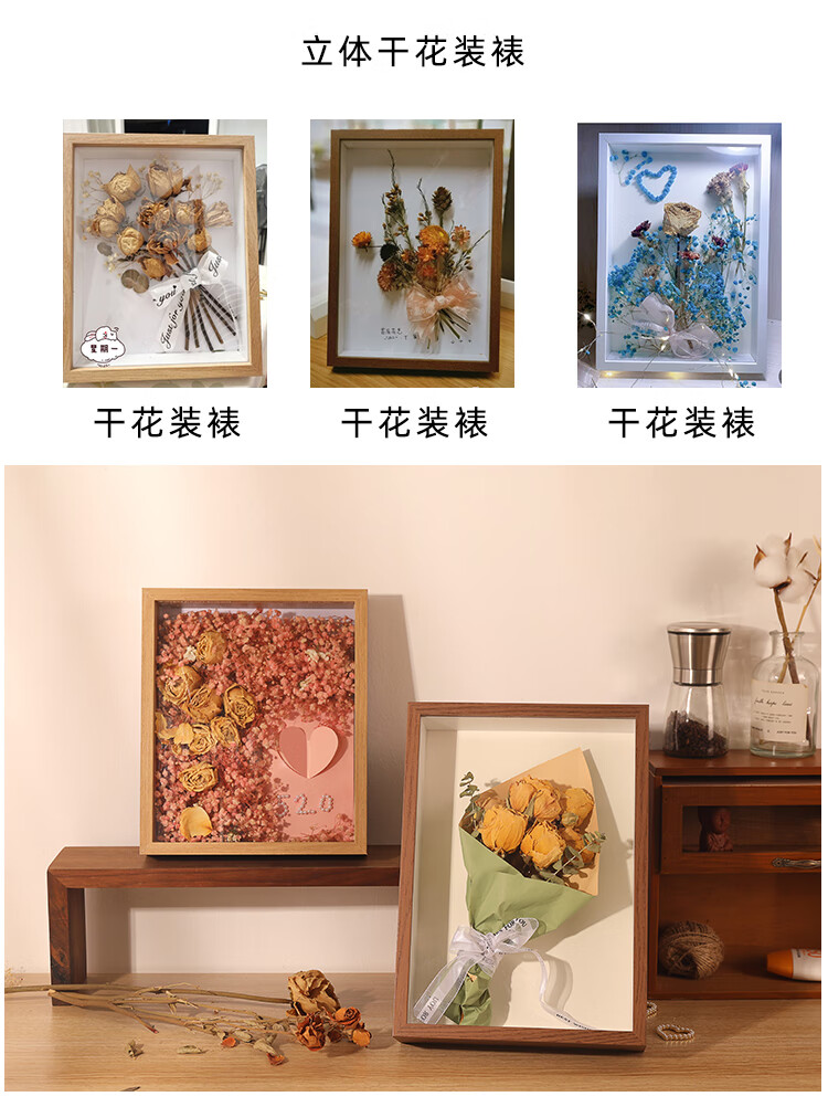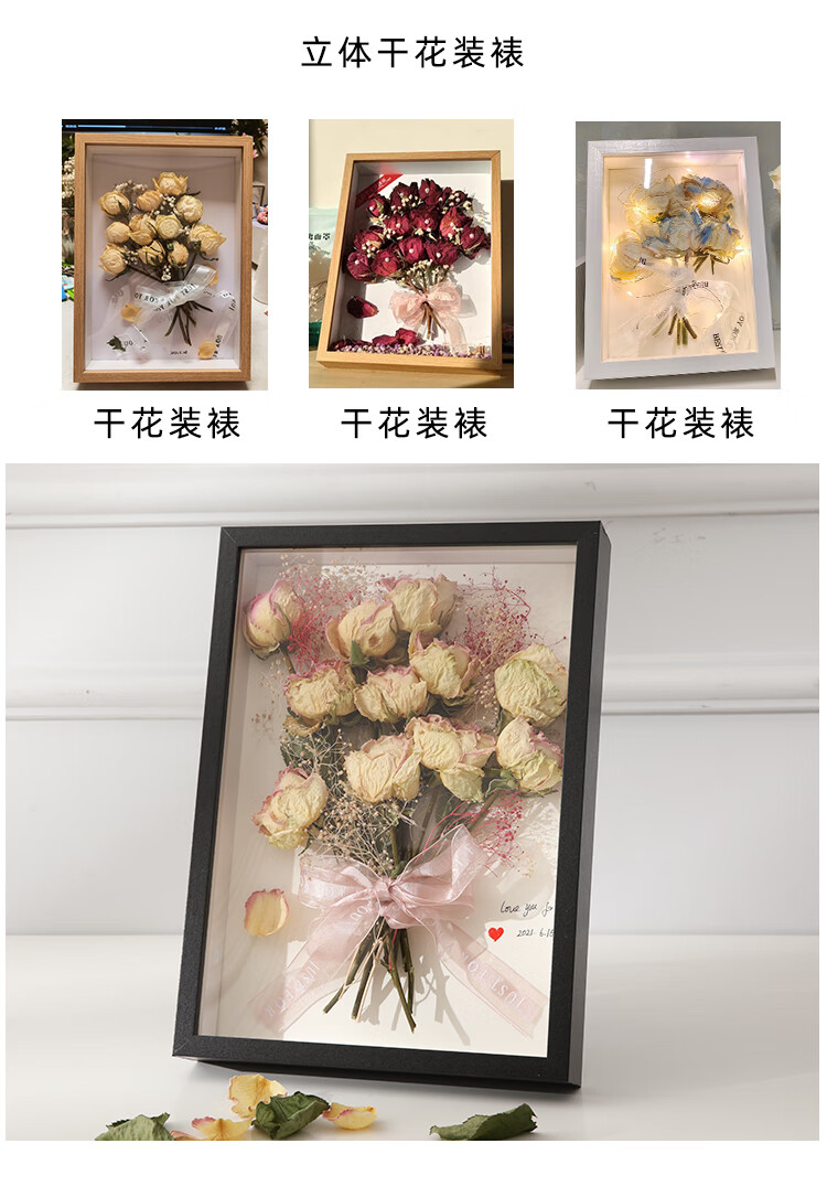 Shantou Lincun Hollow Dried Flower Photo Frame DIY Handmade Gift Preserved Flowers Picture Frame Placement Toilet Tissue Rose Photo Frame White 5cm (8 inches 15*20cm) does not include dried flowers. Free lanterns + ribbons + glue + pearls + bottom paper
