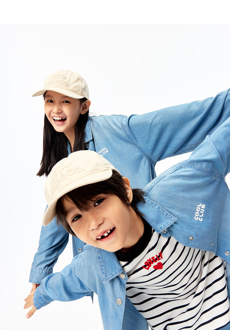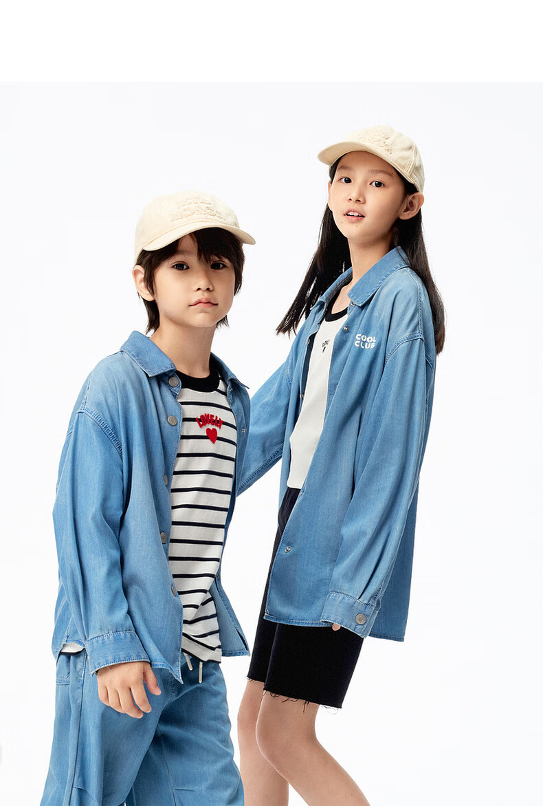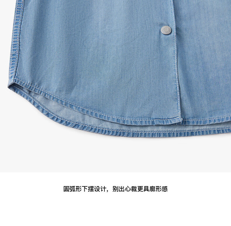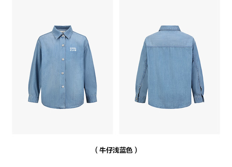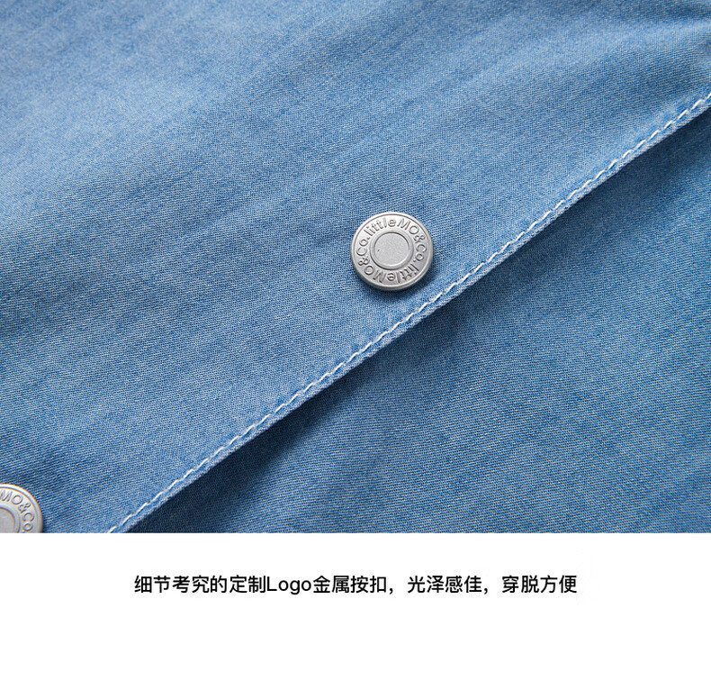 Little MO&Co. Sun protection, cool feeling and antibacterial little moco children's clothing 25 summer new style boys and girls parent-child clothing denim long-sleeved shirt denim light blue 140 140/68