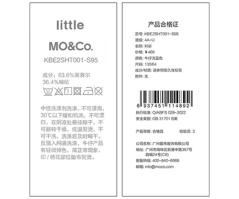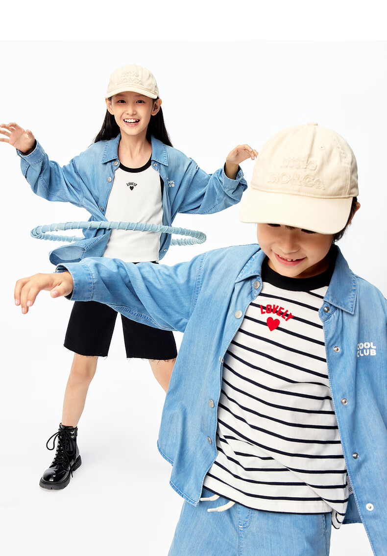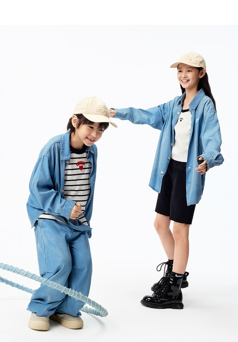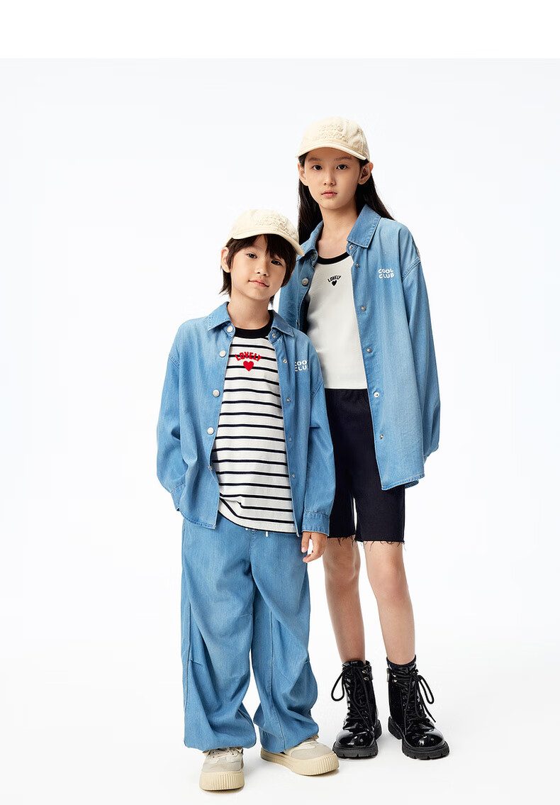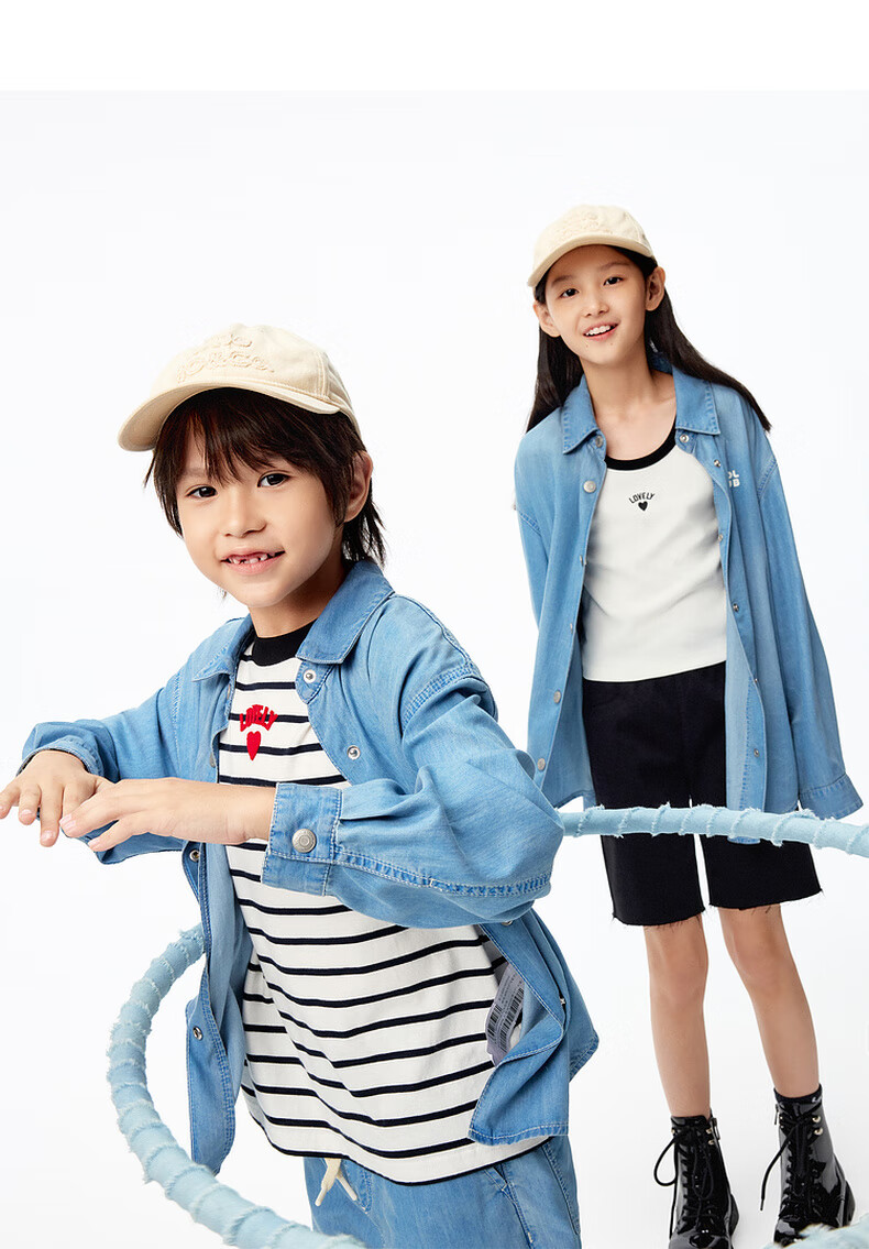 Little MO&Co. Sun protection, cool feeling and antibacterial little moco children's clothing 25 summer new style boys and girls parent-child clothing denim long-sleeved shirt denim light blue 140 140/68