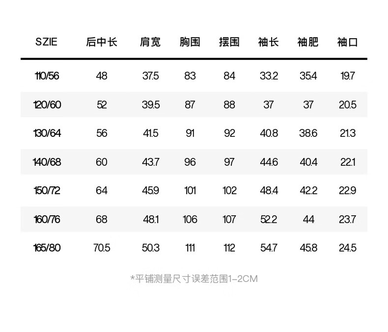China (cm) 160-165/84-86 165-170 / 88-90 167-172 / 92-96 168-173 / 98-102 170-176 / 106-110