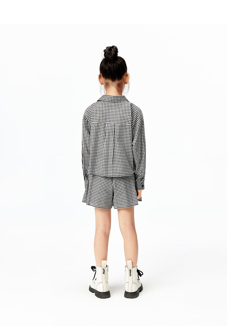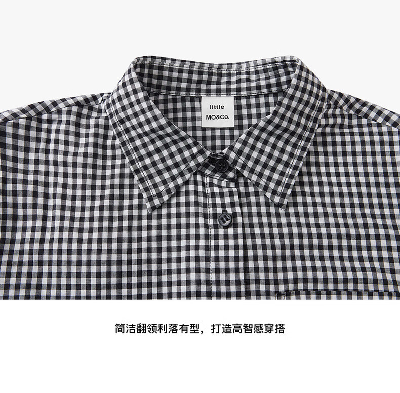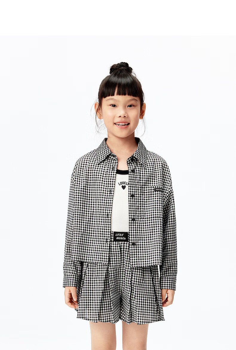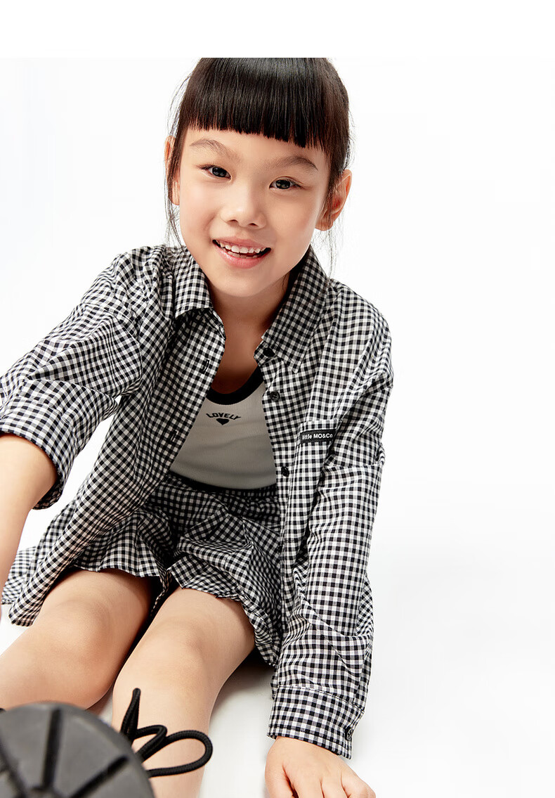 Little MO&Co.little moco children's clothing 25 summer clothes girls pure cotton plaid shirt long-sleeved shirt jacket KBE2SHT009 black and white plaid color 130 130/64