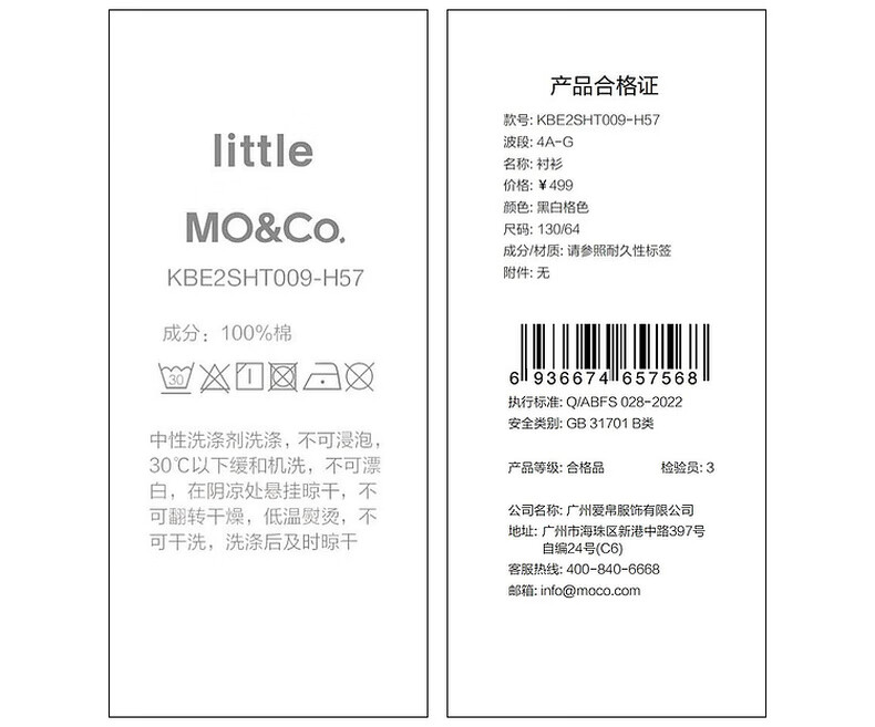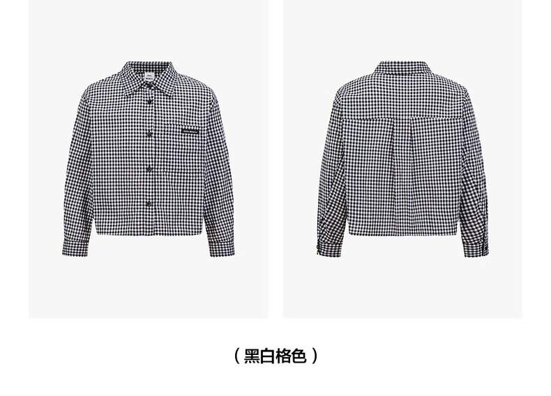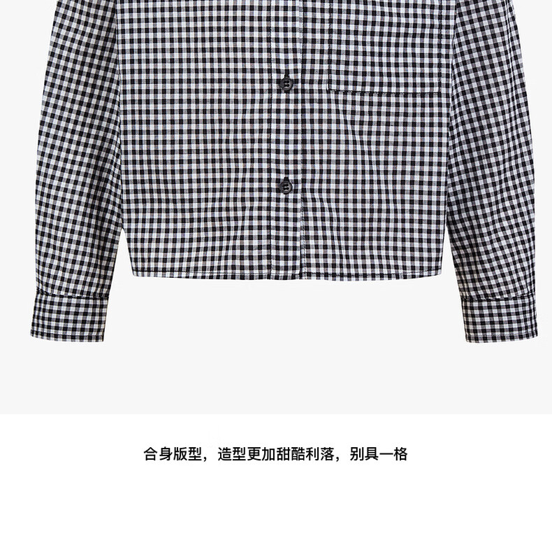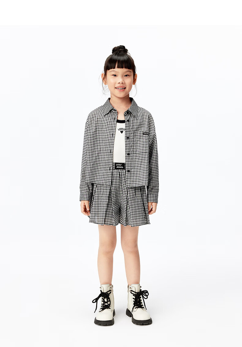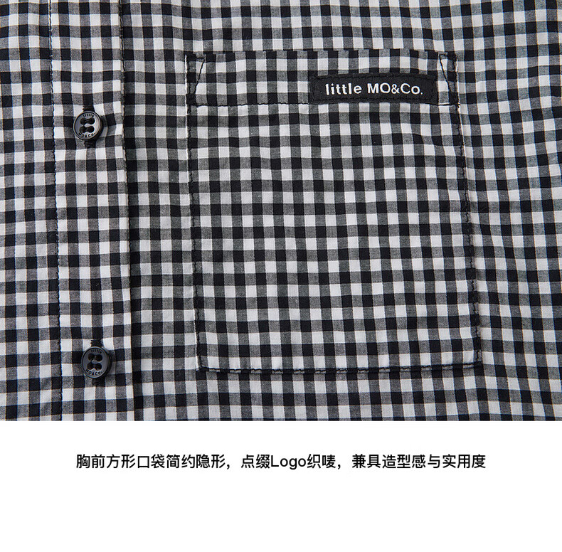 Little MO&Co.little moco children's clothing 25 summer clothes girls pure cotton plaid shirt long-sleeved shirt jacket KBE2SHT009 black and white plaid color 130 130/64