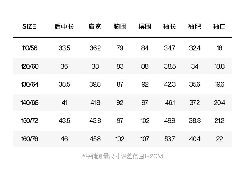 China (cm) 160-165/84-86 165-170 / 88-90 167-172 / 92-96 168-173 / 98-102 170-176 / 106-110