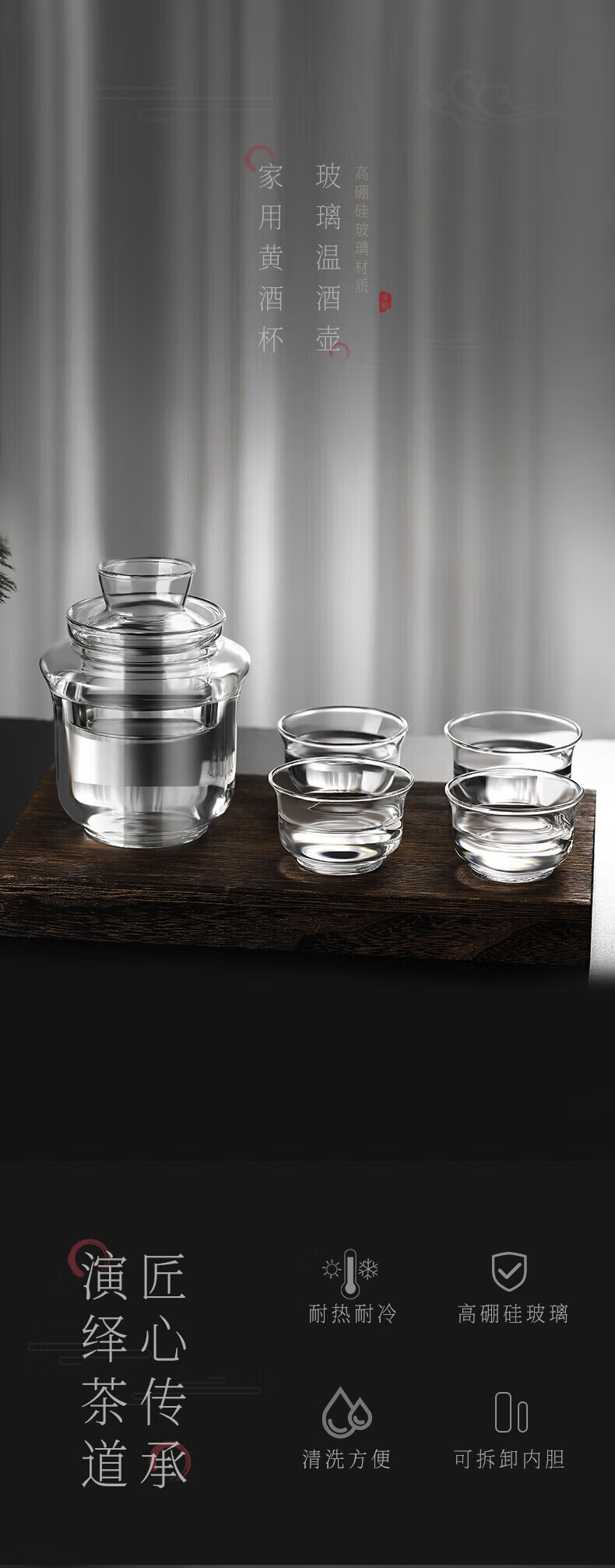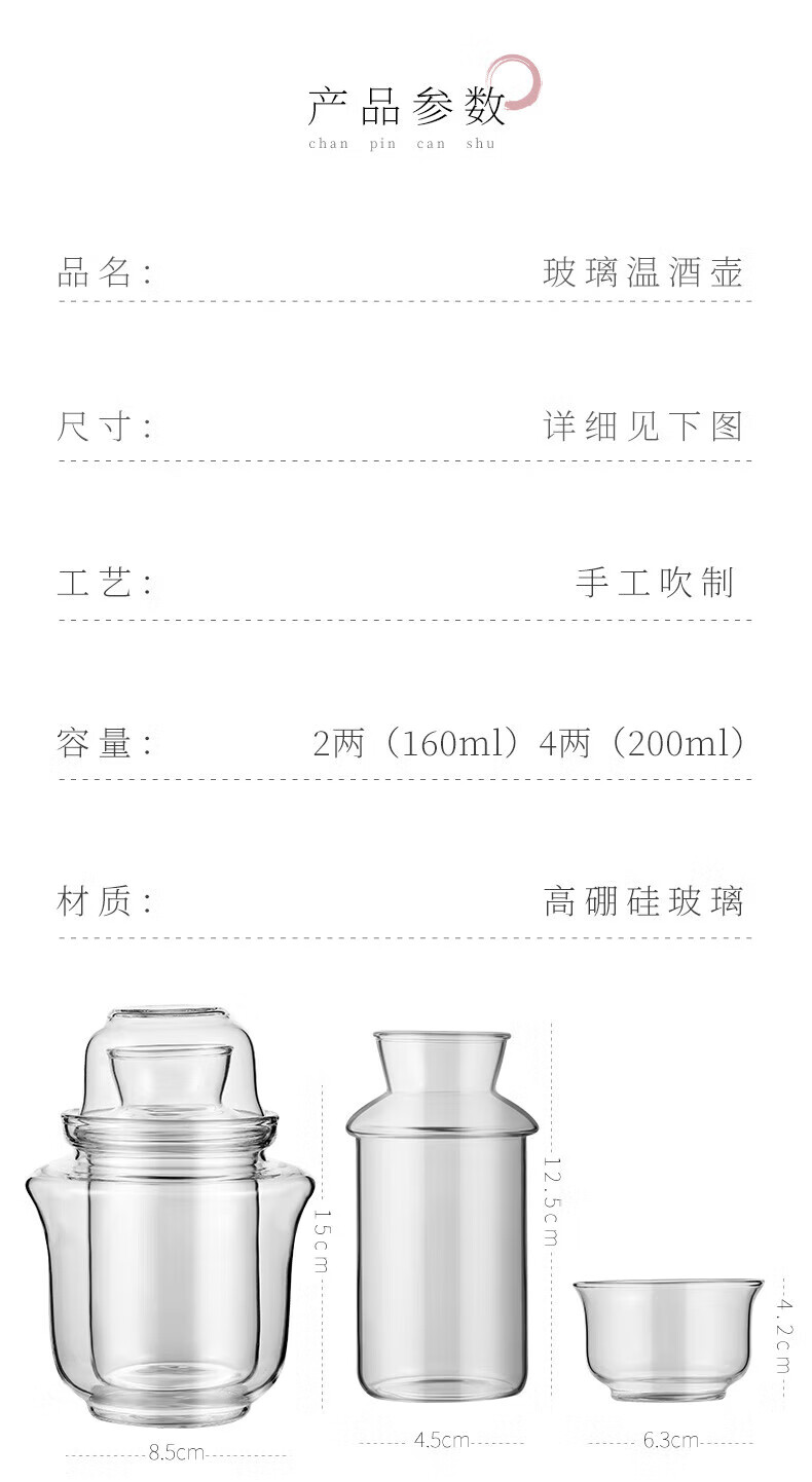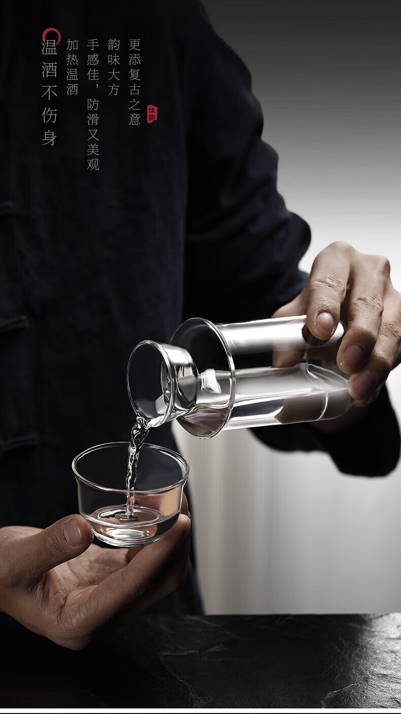 MARTIGUES wine warmer household hot wine pot yellow wine wine warmer Chinese style old-fashioned nostalgic heat-resistant glass white wine hot wine wine set small wine warmer (2 taels/160ml)