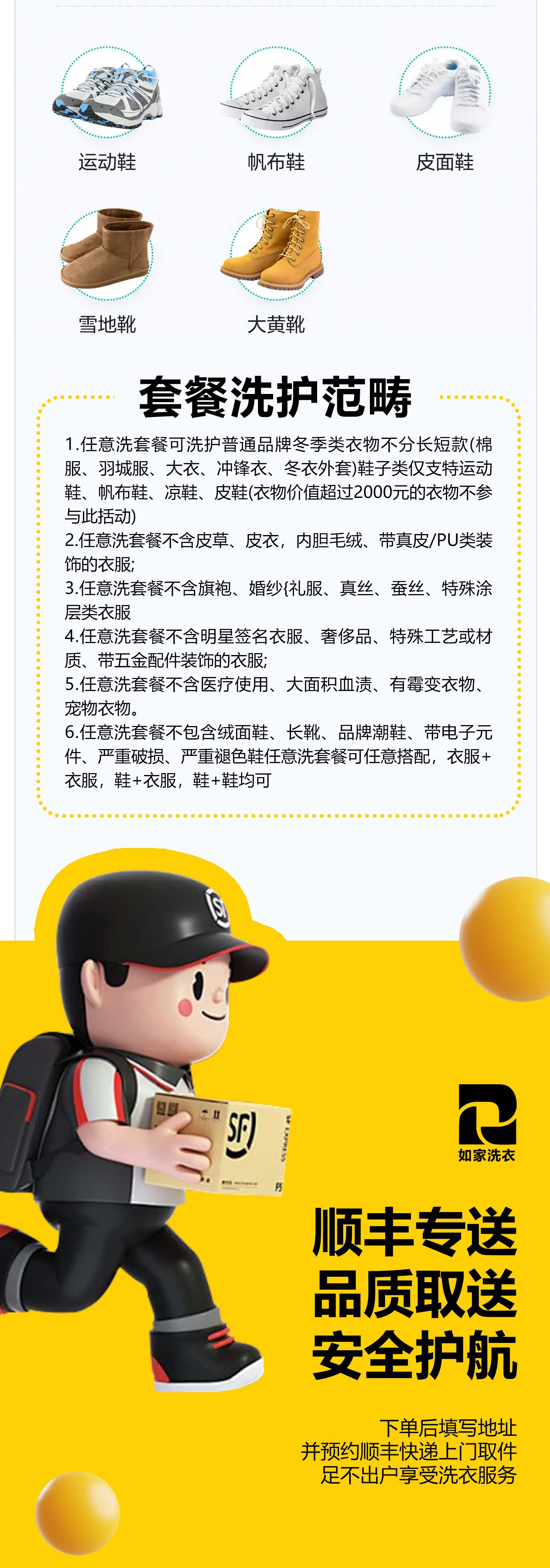 Home Inn Jingdong Laundry Service: Any clothes and shoes can be washed. Door-to-door pickup and delivery service. Cleaning of down jackets/sneakers/jackets worth less than 2,000 yuan. Dry cleaning//wet cleaning. 2 pieces of clothes and shoes can be washed at will (the value of each item does not exceed 2,000 yuan). On the day of appointment (pickup at your door about 1 hour after placing the order)