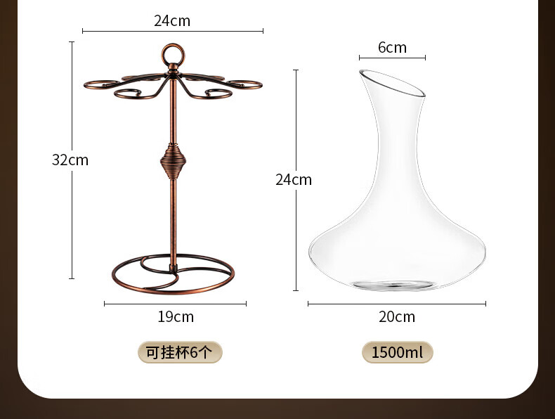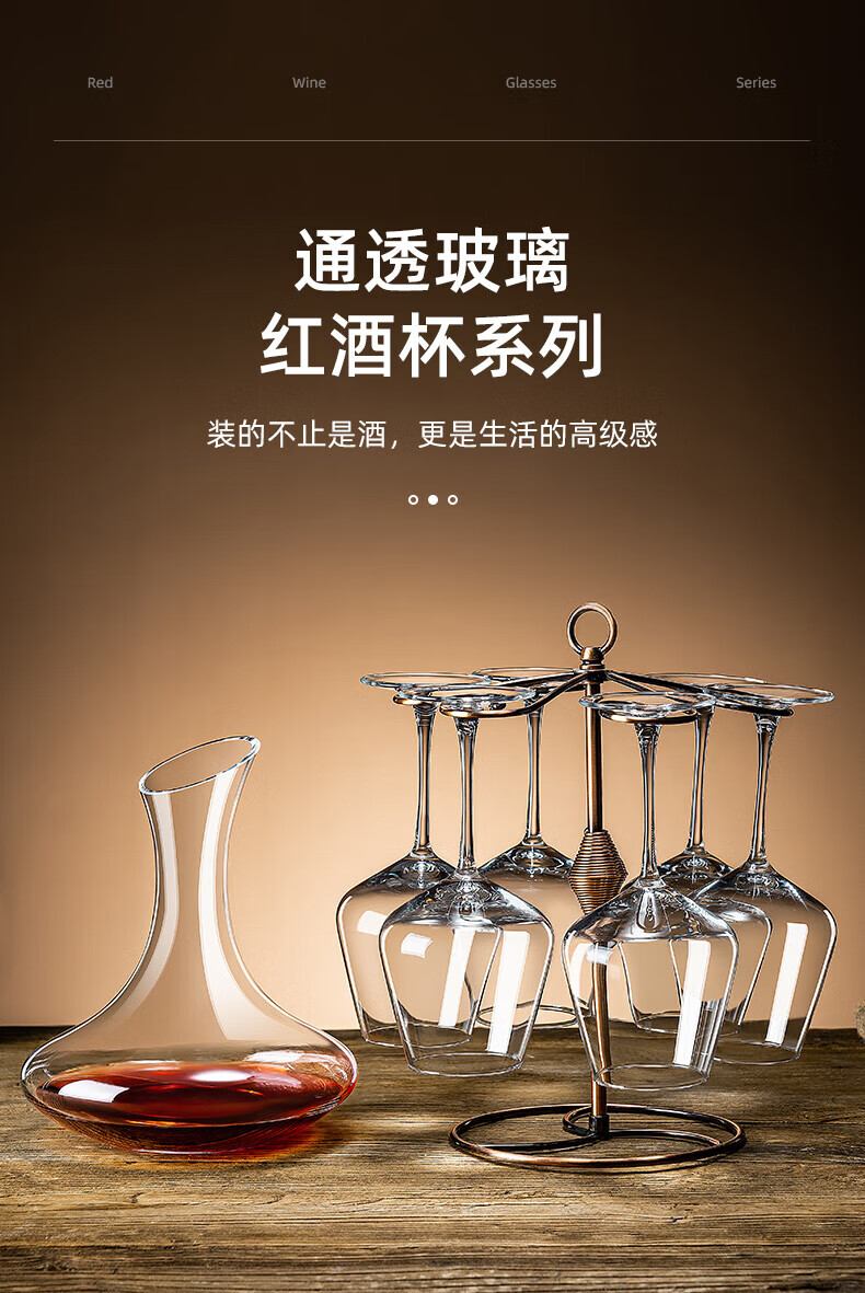 MARTIGUES red wine glass set with cup holder, goblet, wine divider, large-capacity household wine glass, glass decanter, wine set, decanter + 6 tall red wine glasses, 440ml