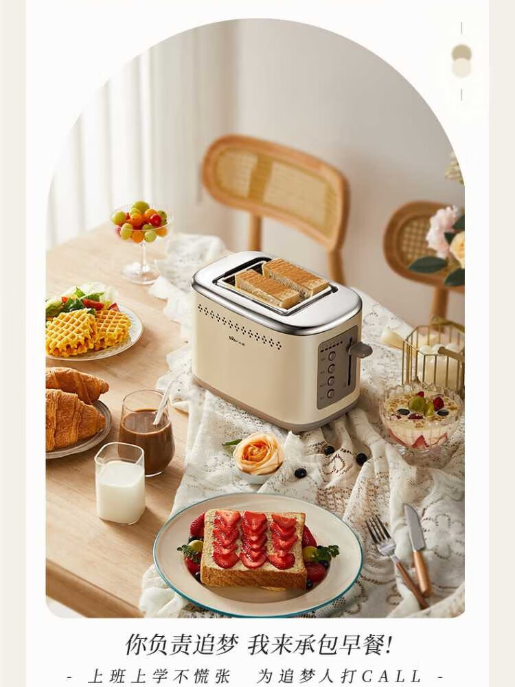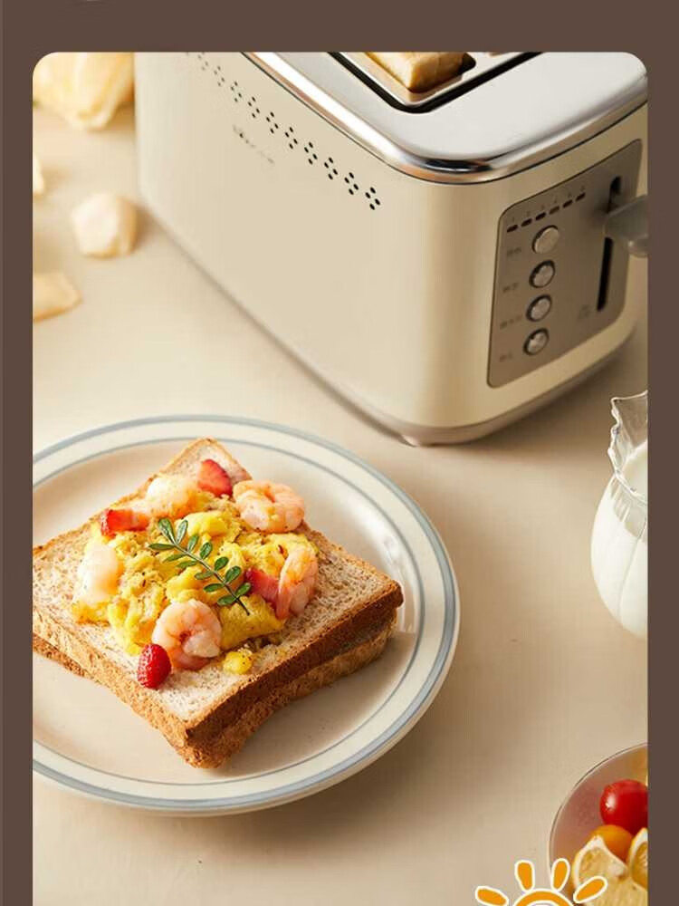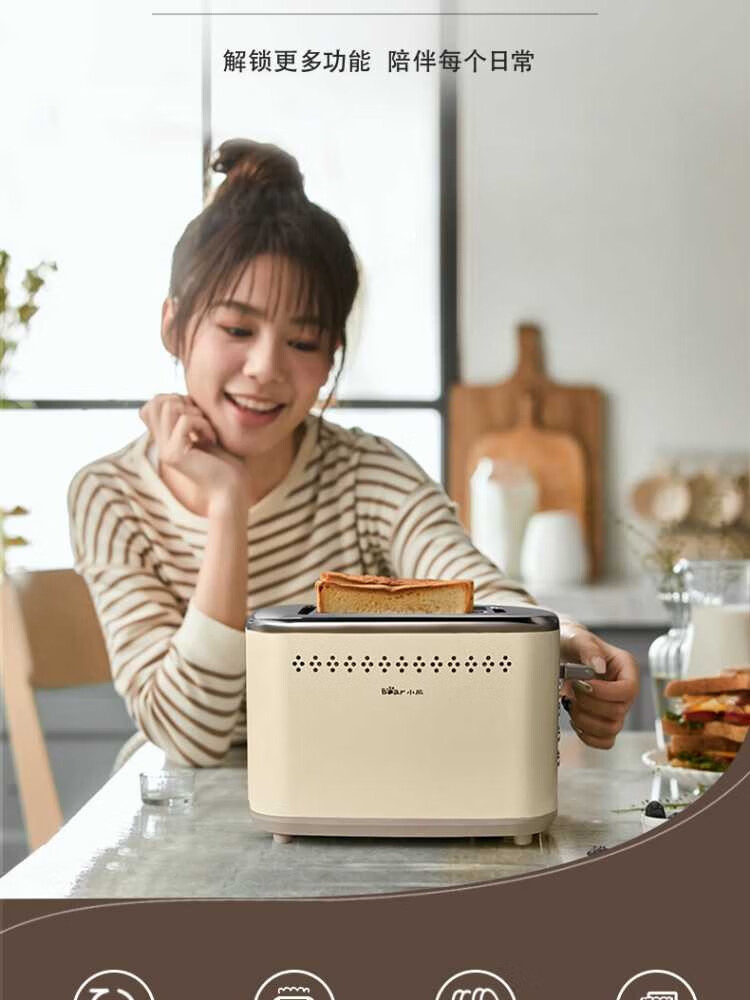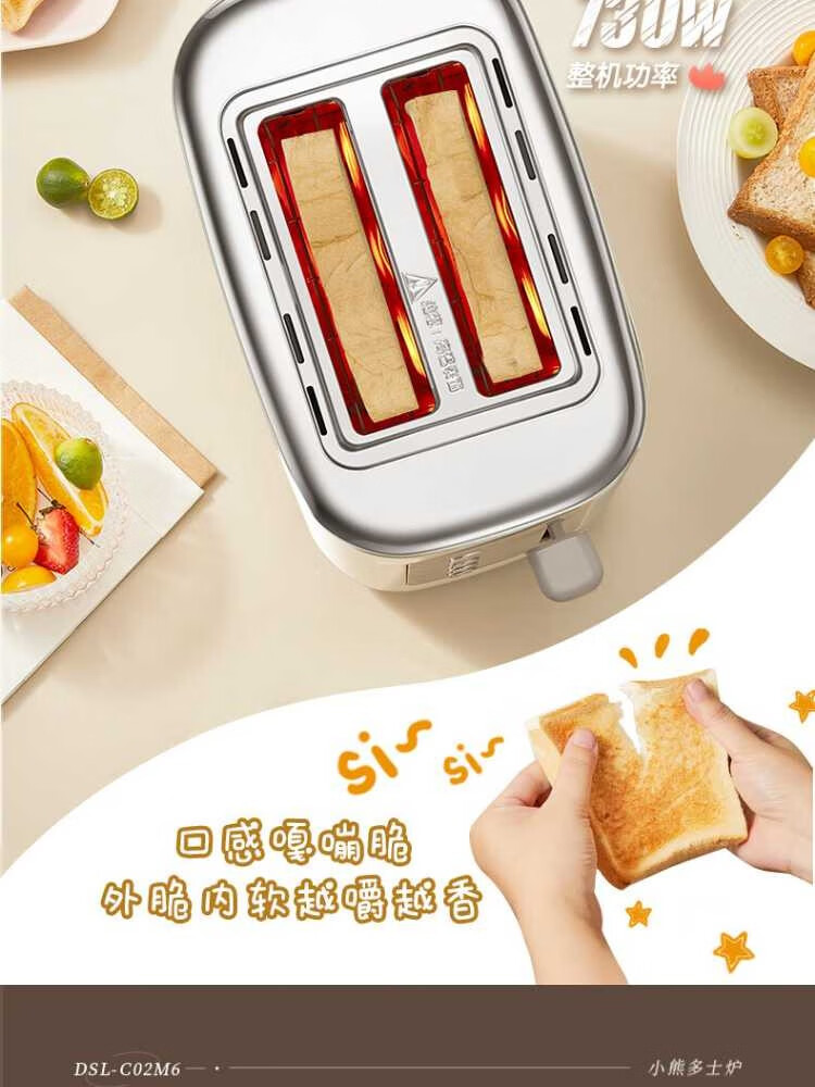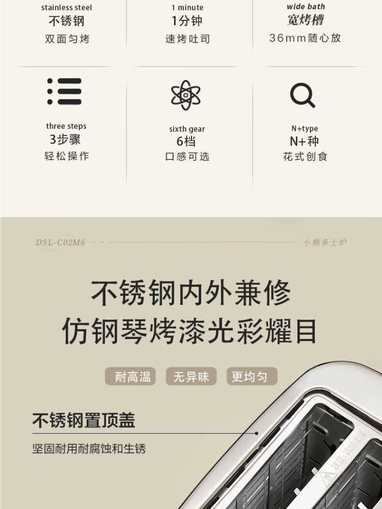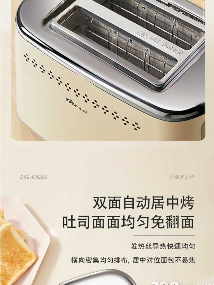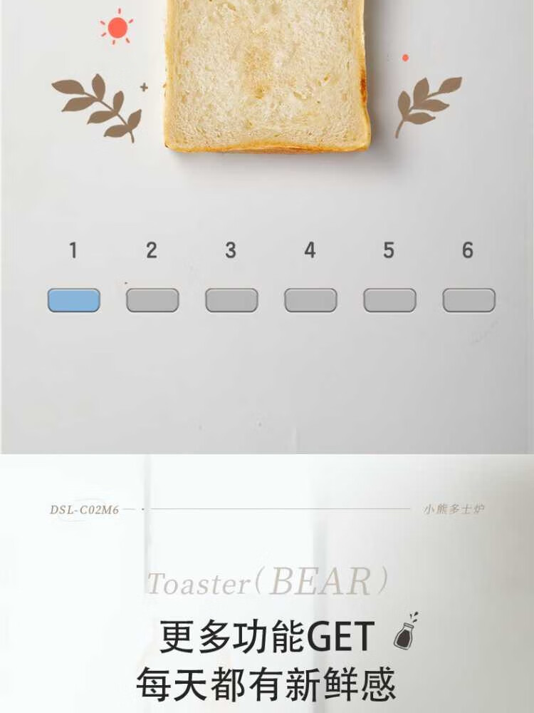 Bear Bread Machine Toaster Toaster Breakfast Automatic Home Small Toaster Steamed Bun Stainless Steel Toaster DSL-C02M6丨Stainless steel edging + 6-stop baking + with dust cover