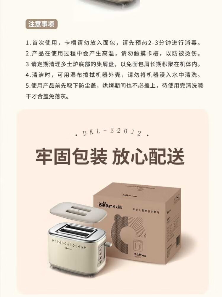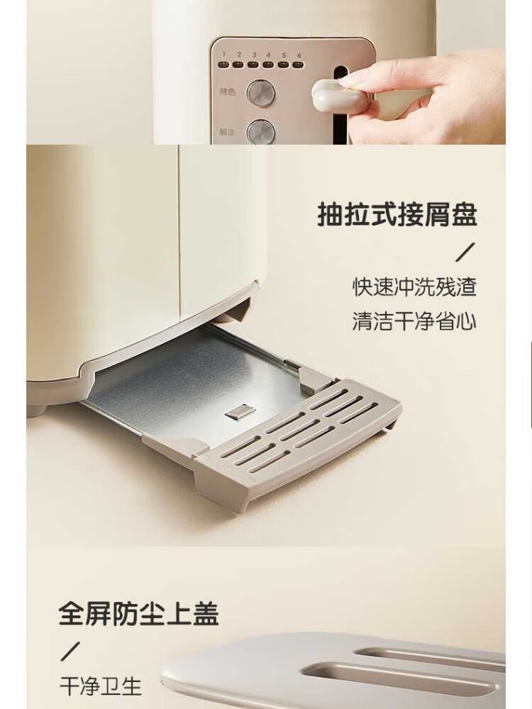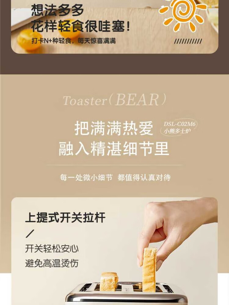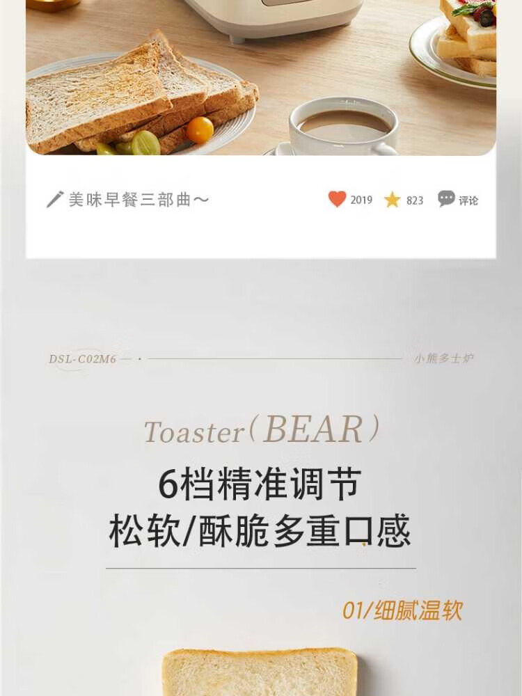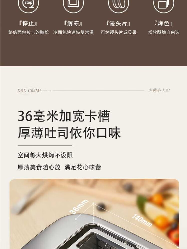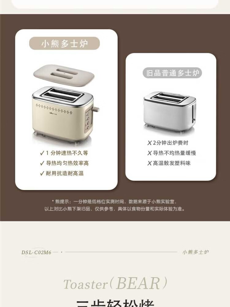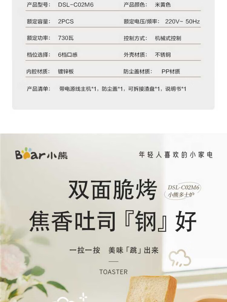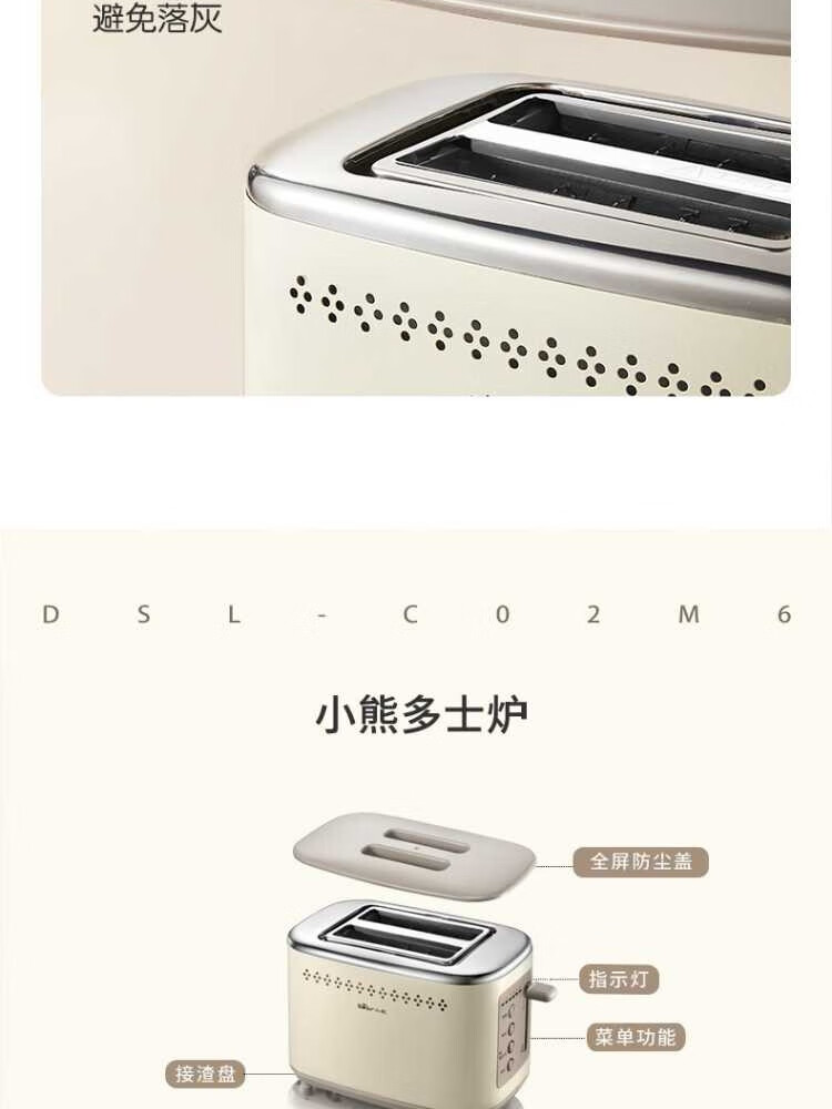 Bear Bread Machine Toaster Toaster Breakfast Automatic Home Small Toaster Steamed Bun Stainless Steel Toaster DSL-C02M6丨Stainless steel edging + 6-stop baking + with dust cover