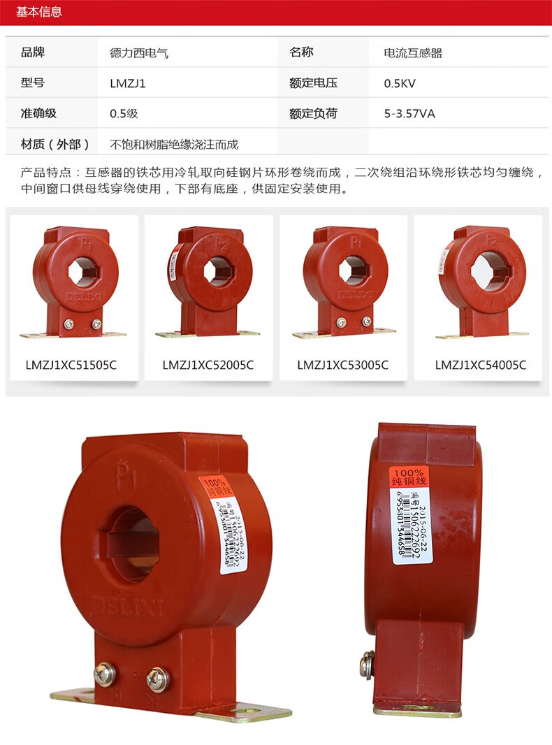 Delixi Electrical current transformer LMZJ1 type current ratio current transformer number of core turns 1 turn current ratio 400/5 LMZJ1XC54005C