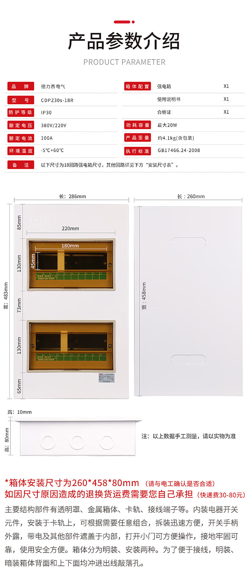 Delixi Electric Power Box PZ30 Concealed Assembly Electrical Box Household Air Open Box 30 Circuits Double Row (Concealed Installation)