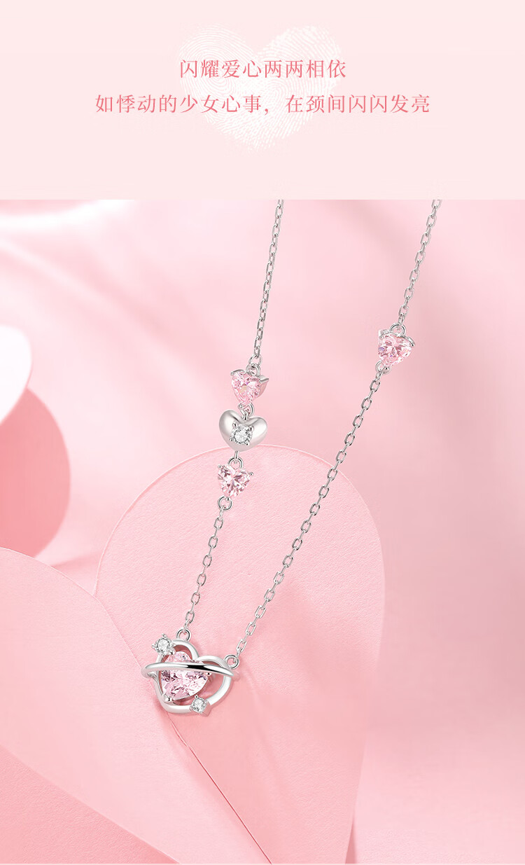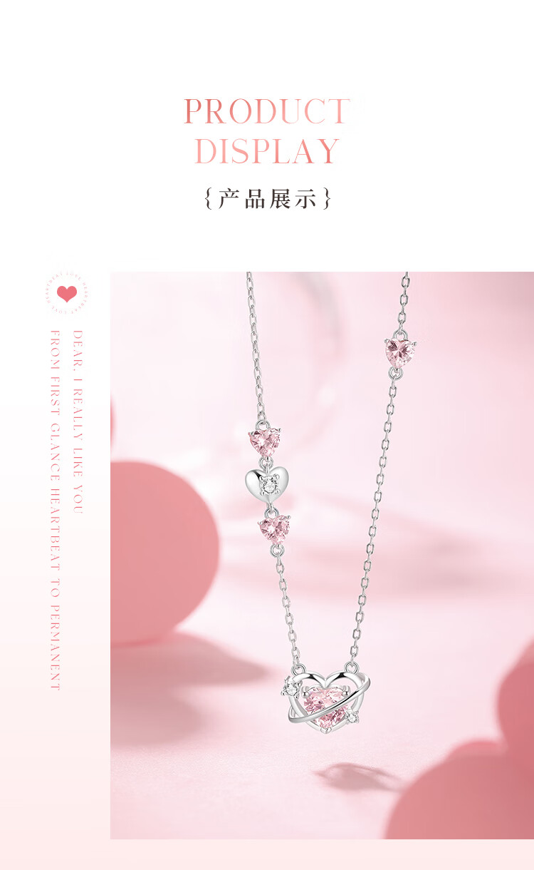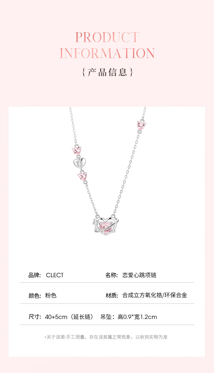 Clect Keli Love Heartbeat Necklace Women's Light Luxury Elegant Pendant Clavicle Chain Versatile Chinese Valentine's Day Gift for Girlfriend Love Heartbeat Necklace