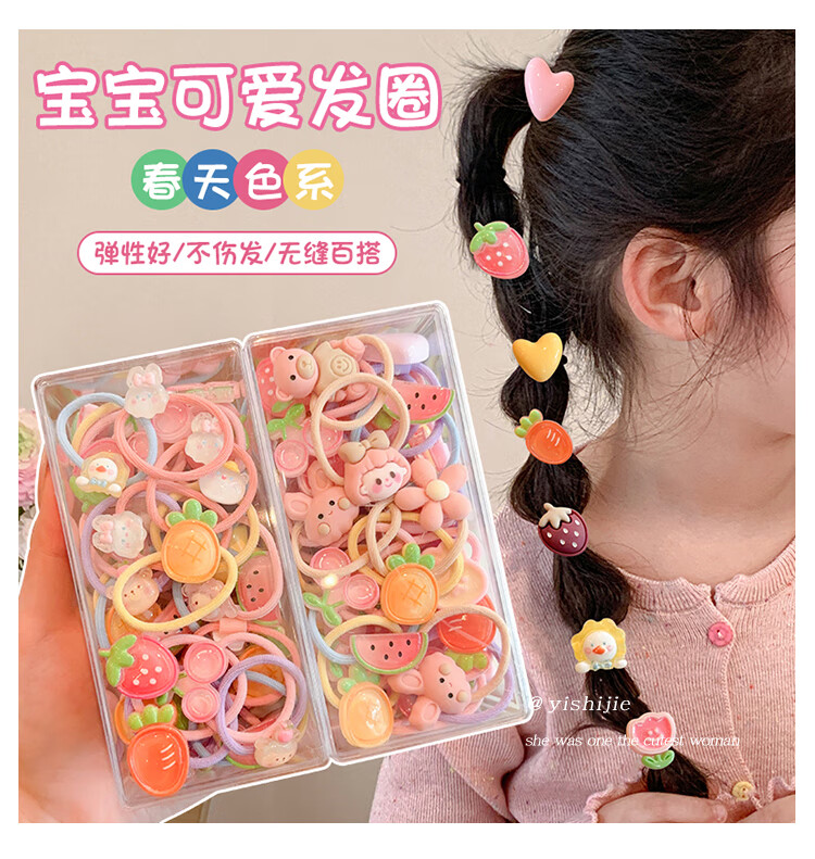 Children's cute cartoon headband hair tie girl's hair tie little girl's high elastic rubber band hair tie headband hot style 20 pieces free 1 small box /