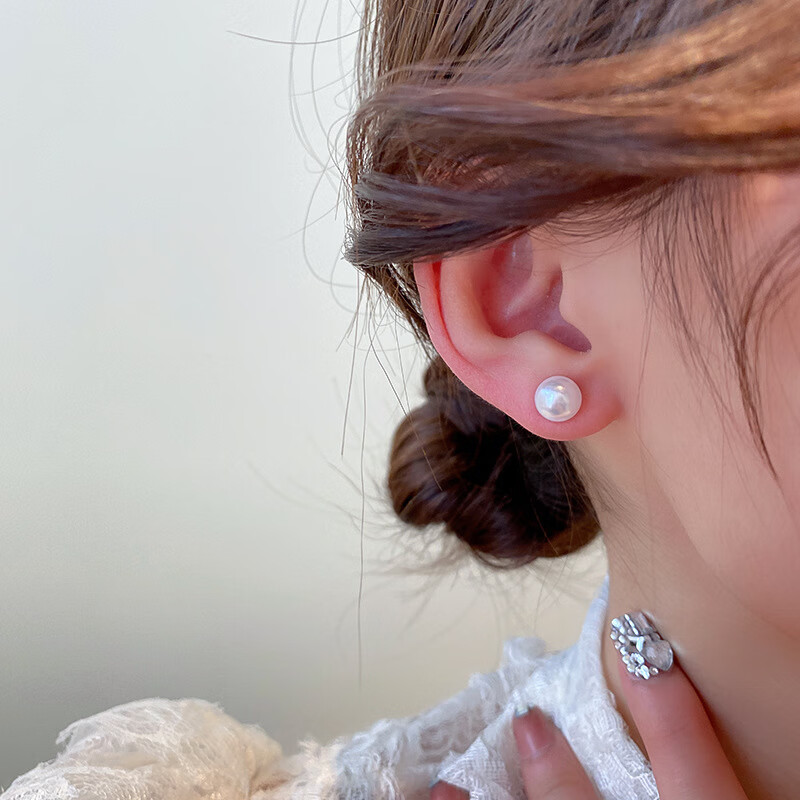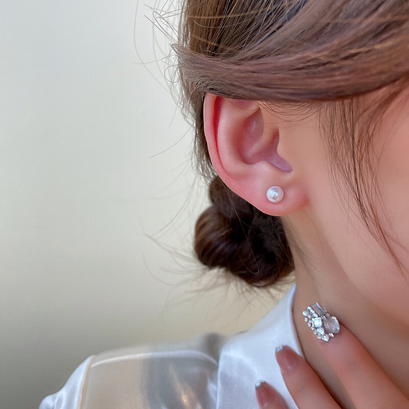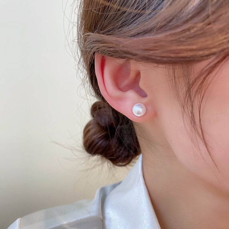 Silver needle simple design pearl earrings Korean niche versatile retro earrings small personality earrings for women Silver needle-8mm