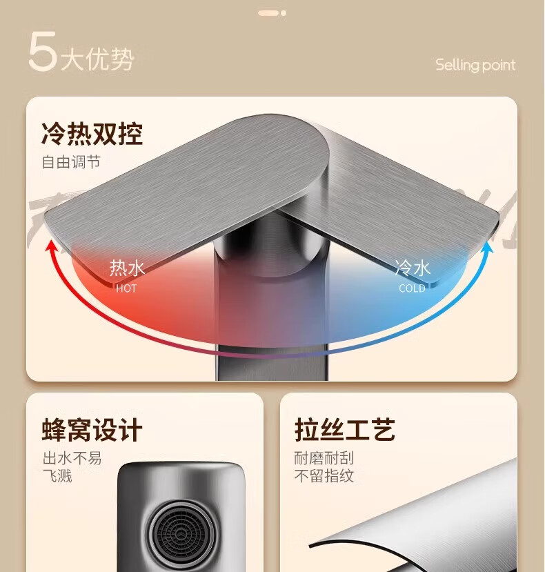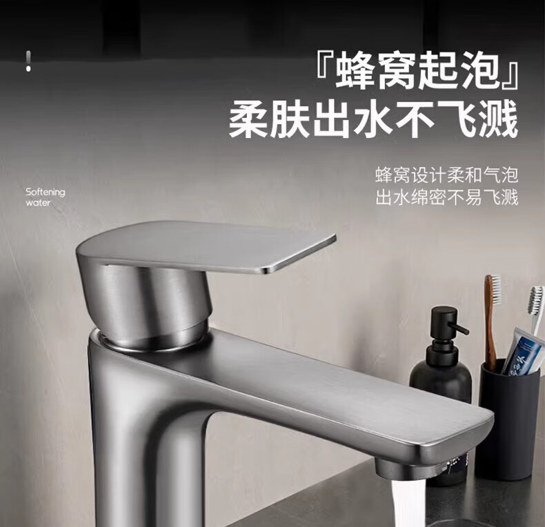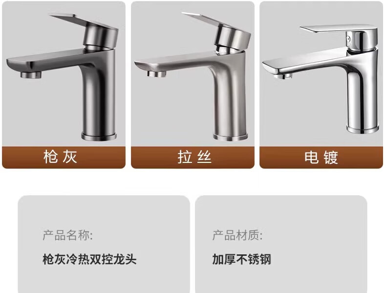Stainless steel faucet household hot and cold water wash basin faucet wash basin bathroom sink wash basin faucet hot and cold thickened copper valve + water inlet pipe