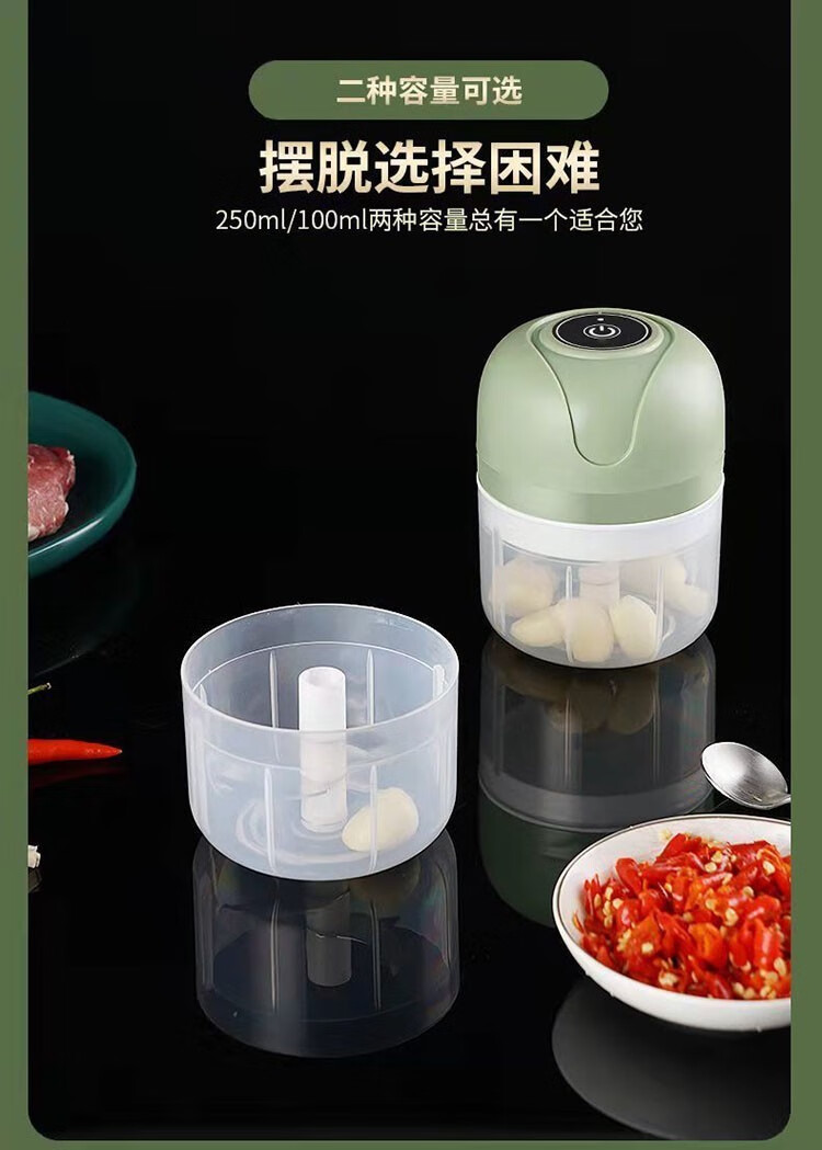 Electric garlic masher, home kitchen garlic pounder, garlic masher, garlic masher, minced garlic chili artifact cooking machine, upgraded sky white-250ML long battery life