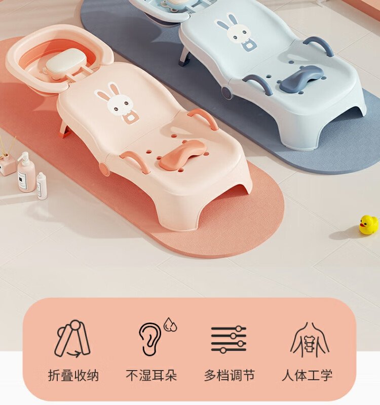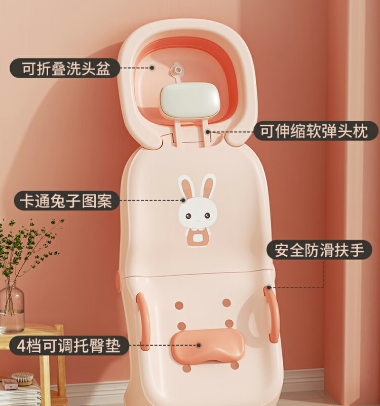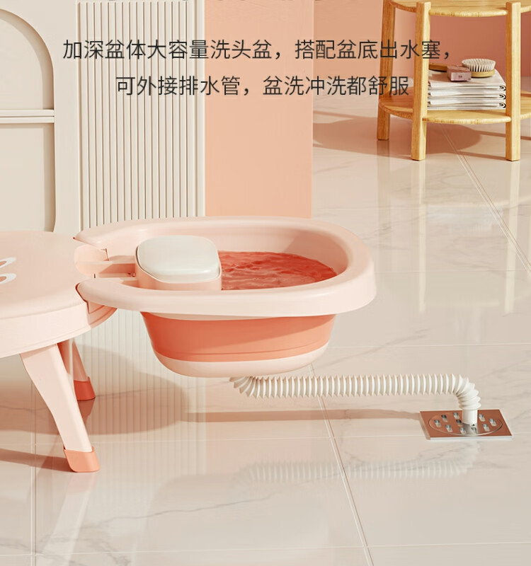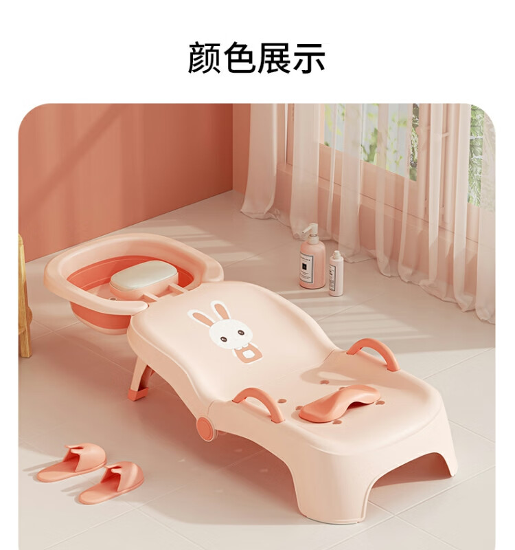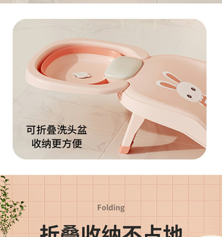 Beima Duoji children's shampoo recliner foldable hair shampoo artifact baby home shampoo bed girls children baby hair shampoo stool pink PVC cushioned headrest 0-16 years old pink