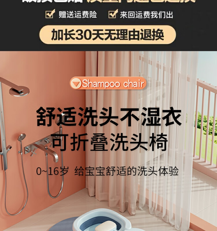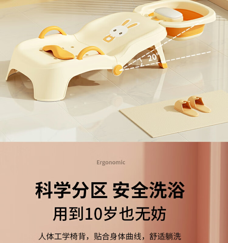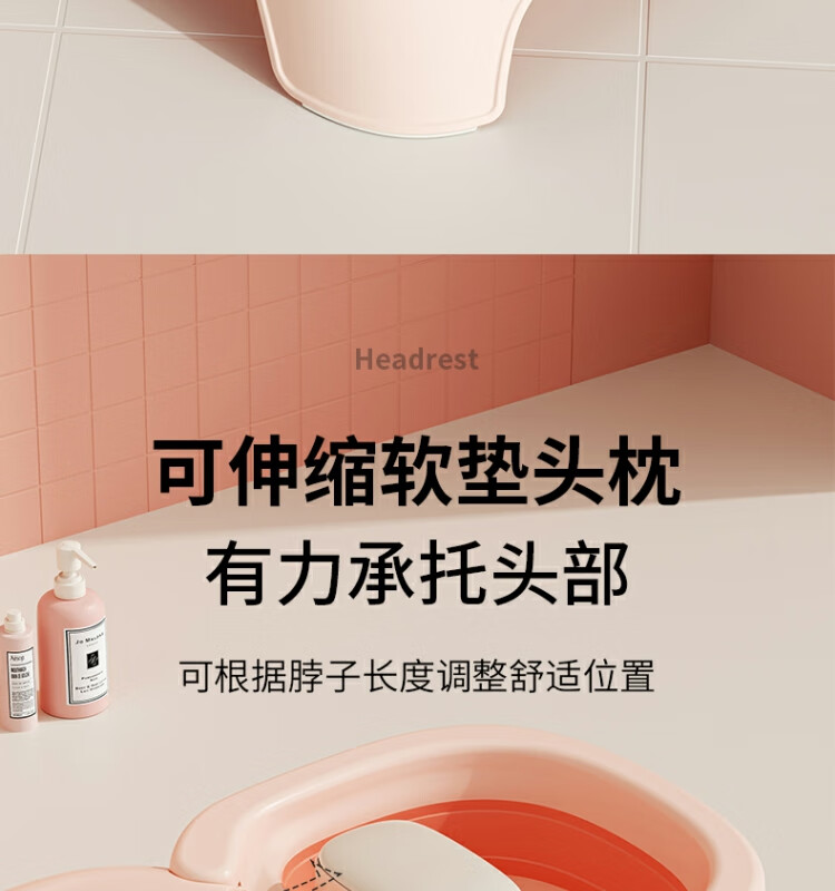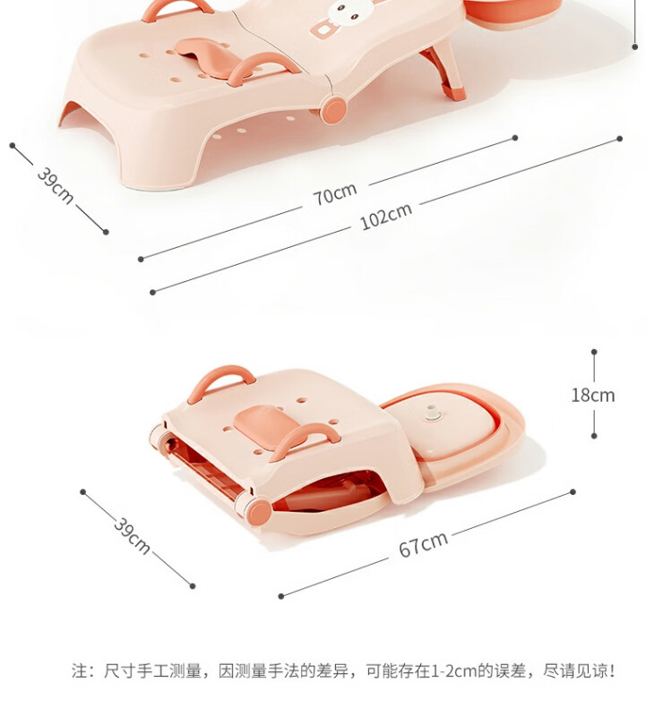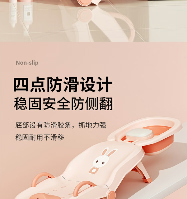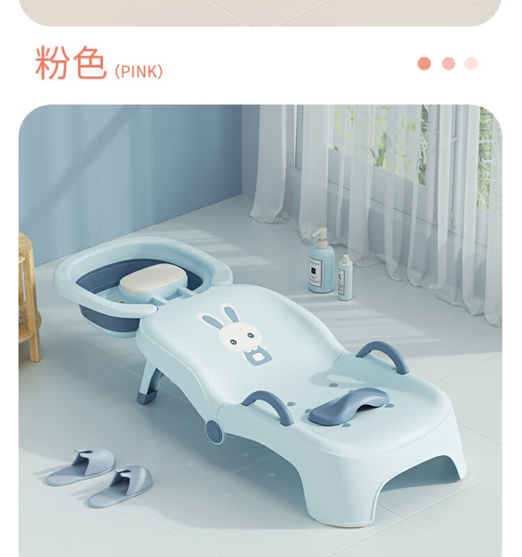 Beima Duoji children's shampoo recliner foldable hair shampoo artifact baby home shampoo bed girls children baby hair shampoo stool pink PVC cushioned headrest 0-16 years old pink