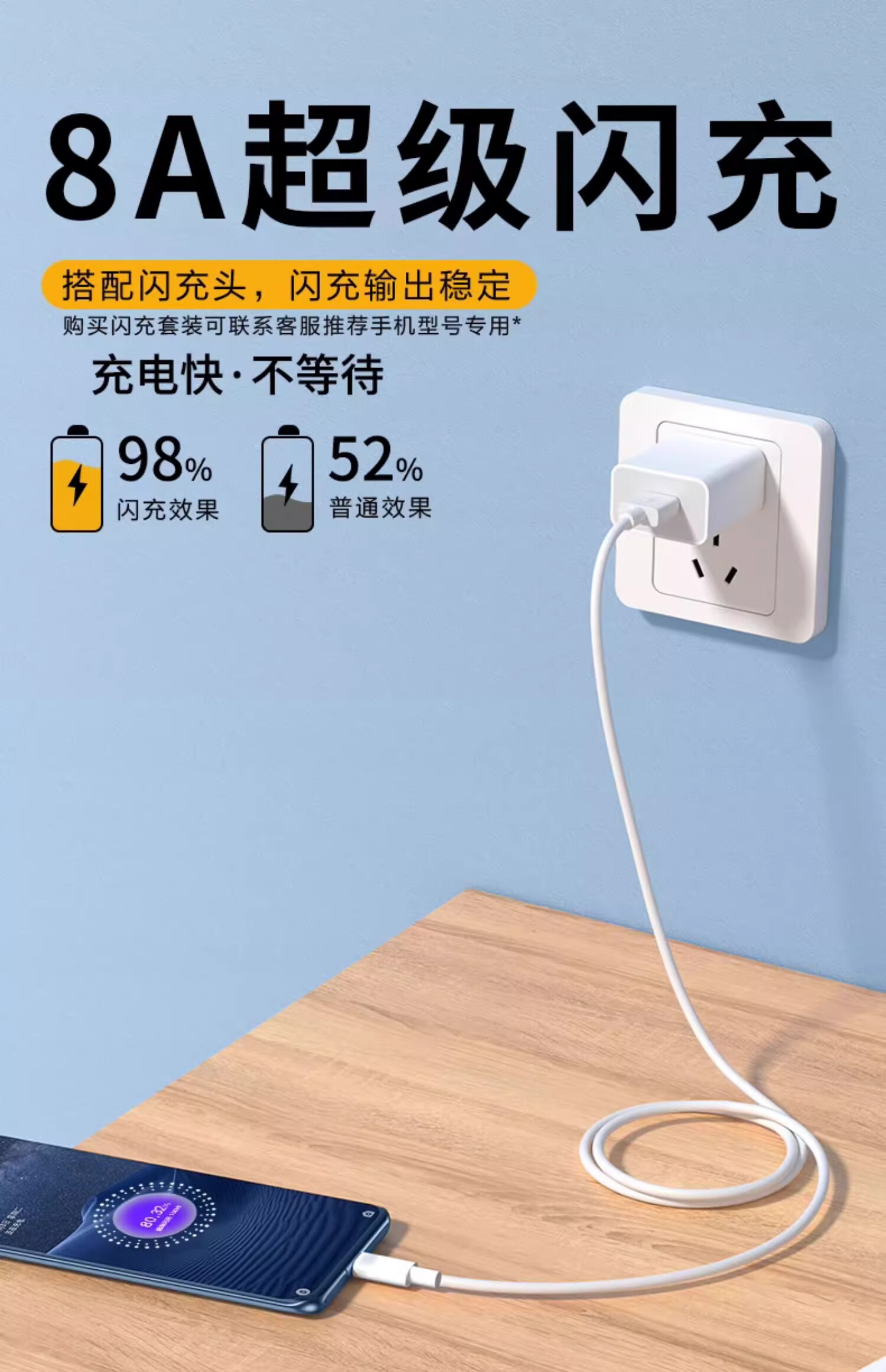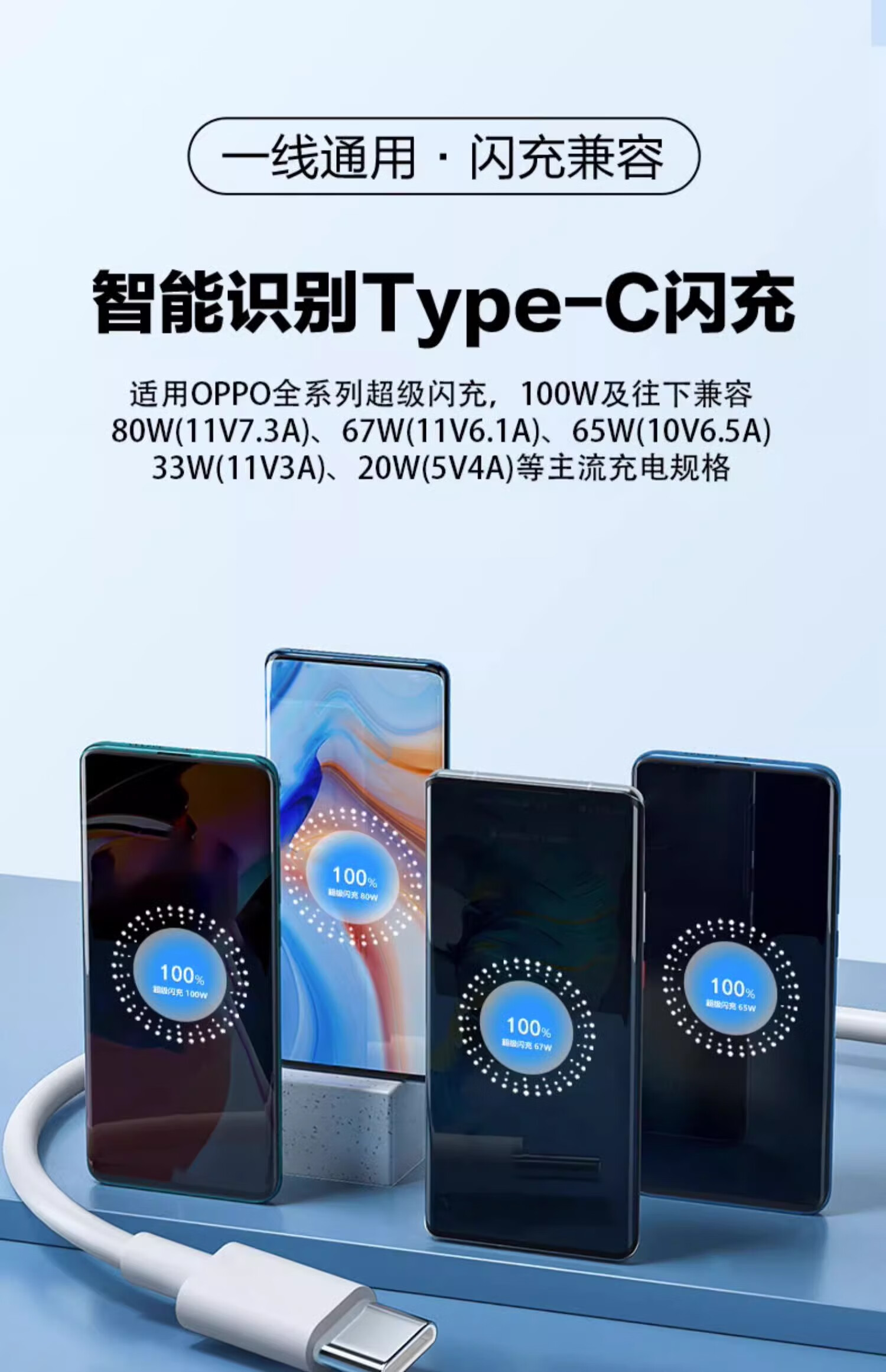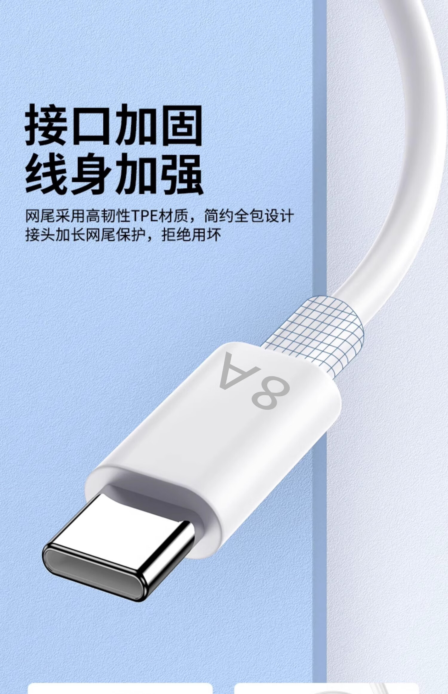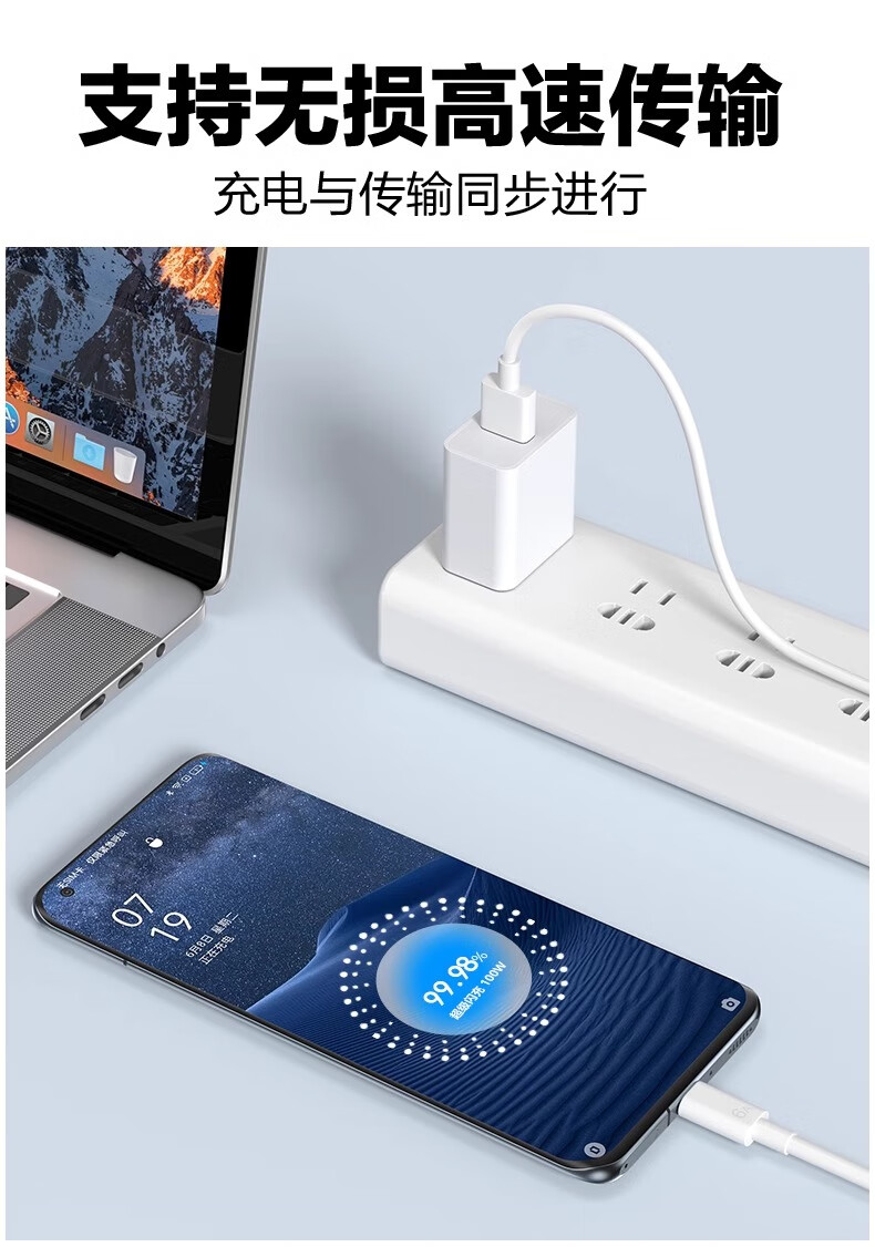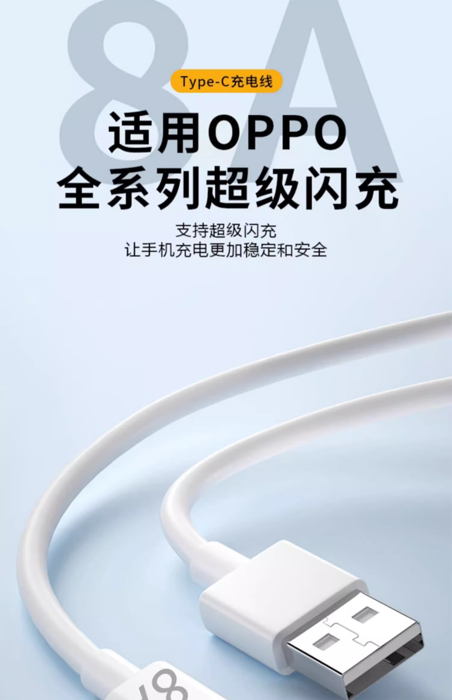 Suitable for OPPO charging cable 8A flash charging 80W data cable k12/Huawei vivo Xiaomi Android mobile phone universal type-c fast charging 6A5A charger cable 1.0 meters 8A fast charging/ivory white 1 pack