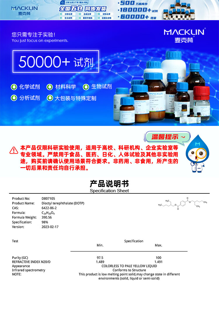 Macklin dioctyl terephthalate CAS 6422-86-2 D807105-500ml