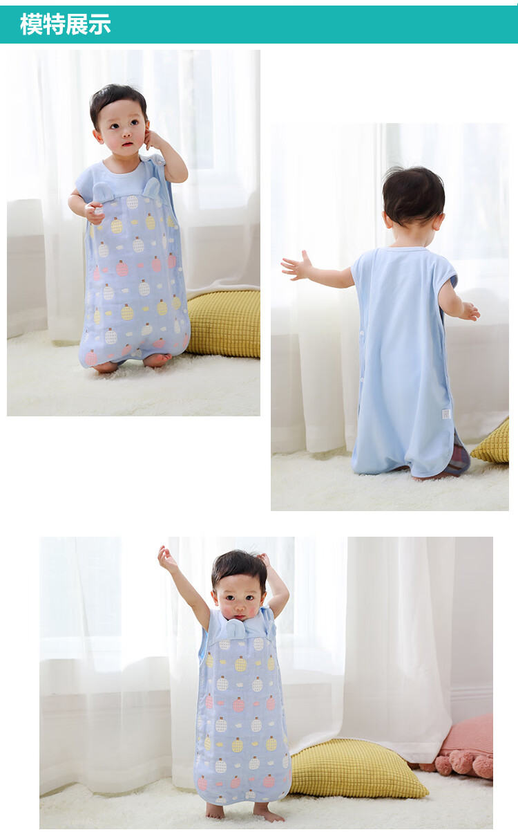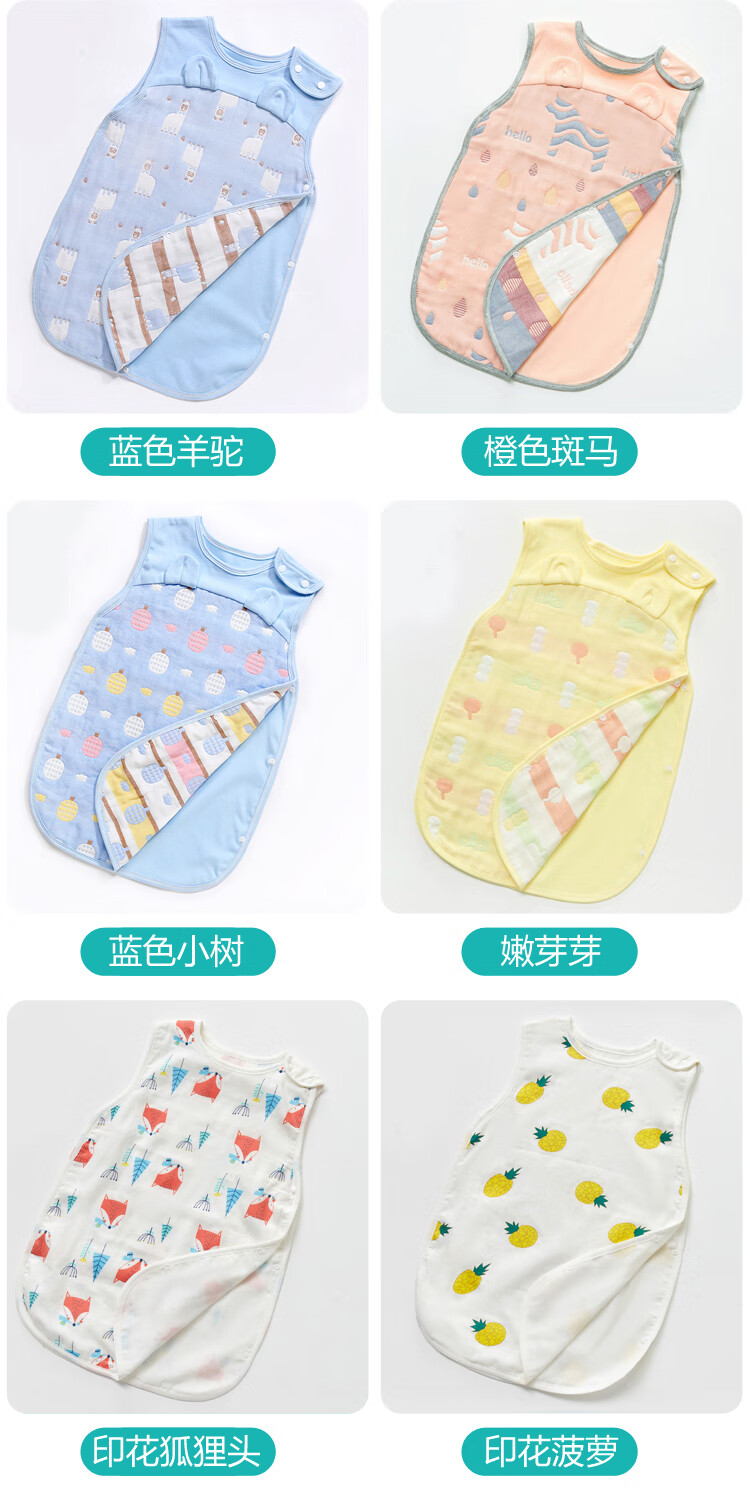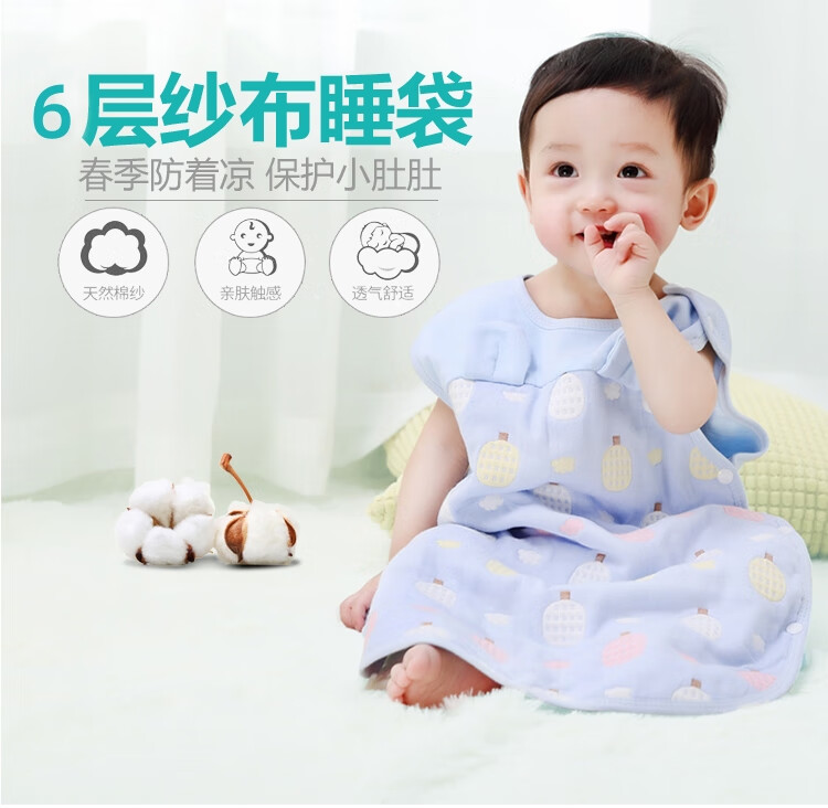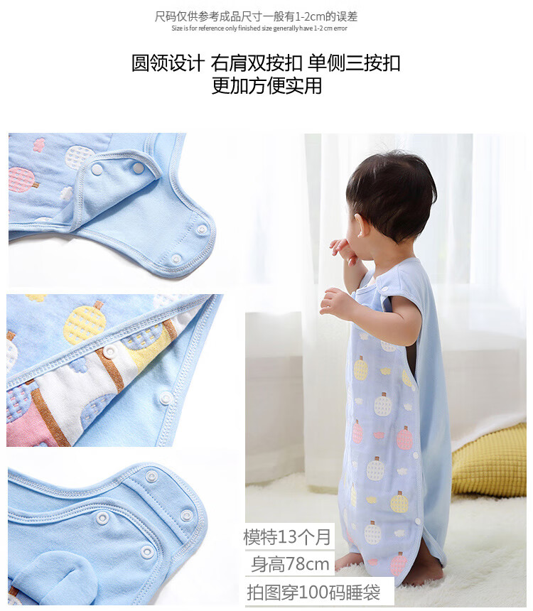 Tian Miaomiao baby anti-kick quilt artifact for boys and girls, all-season cotton sleeping bag for baby to sleep against cold gauze pajamas, 6 layers of type A gauze and cotton, reversible, blue tree, XL size, suitable for 3-6 years old, 100-140cm