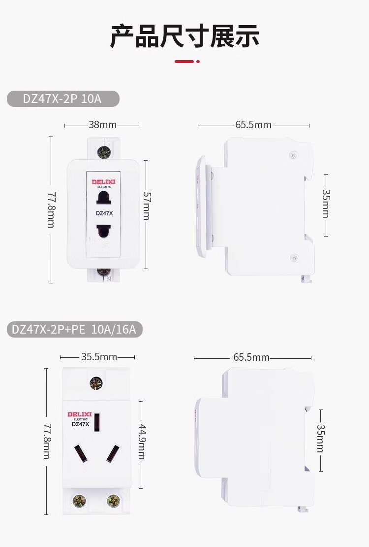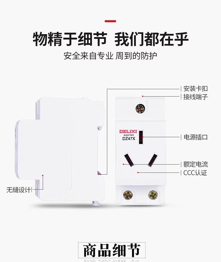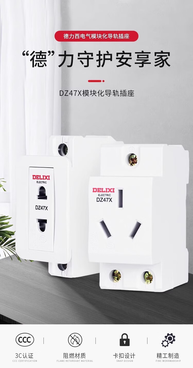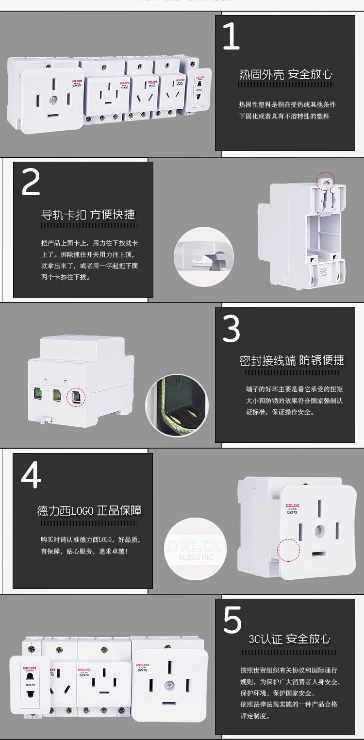 DELIXI ELECTRIC Delixi AC30 modular socket DZ47X five-hole three-plug 10A two-hole 16 distribution box leakage protection and air-opening combination. For other combinations, please contact customer service