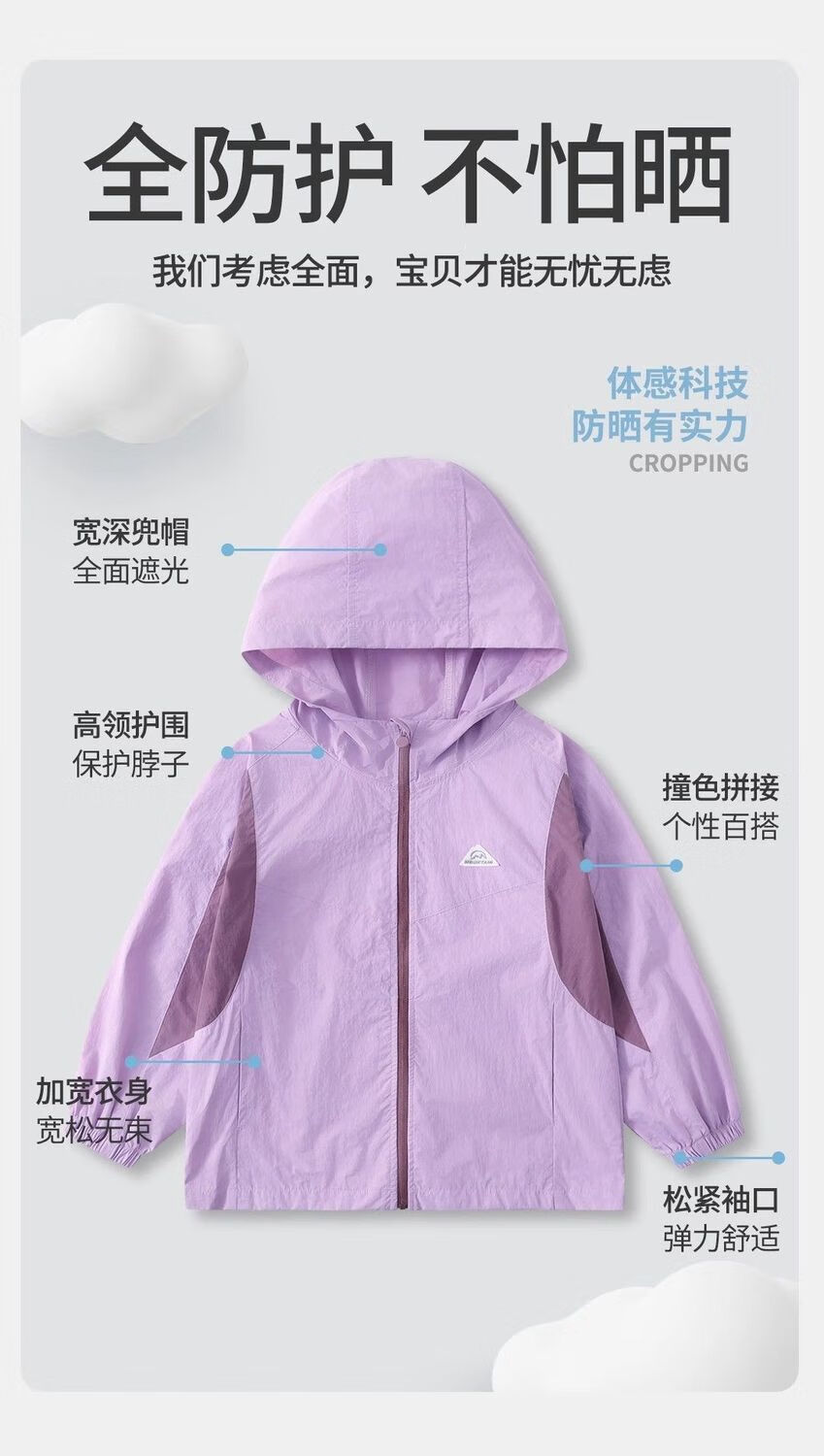 Snoopy boys summer thin jacket 2025 new handsome boy ice silk thin sun protection clothing children's summer clothing sun protection clothing upf50+ solid color navy 110