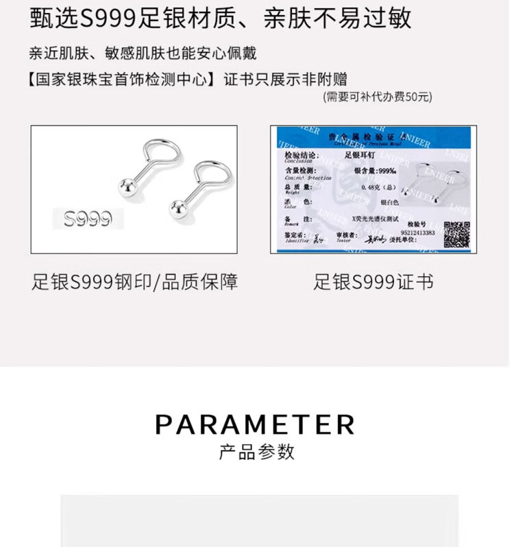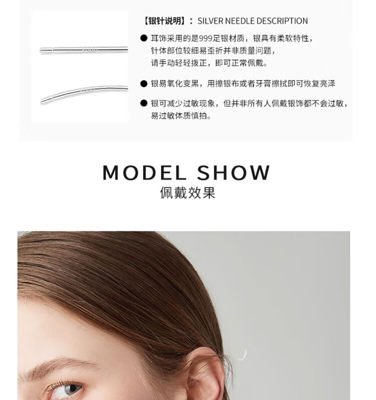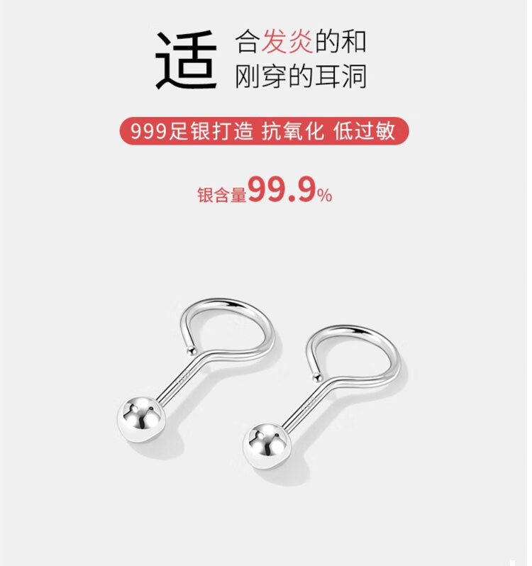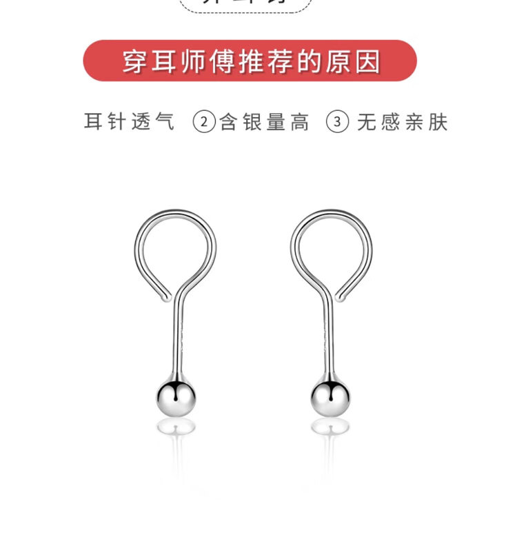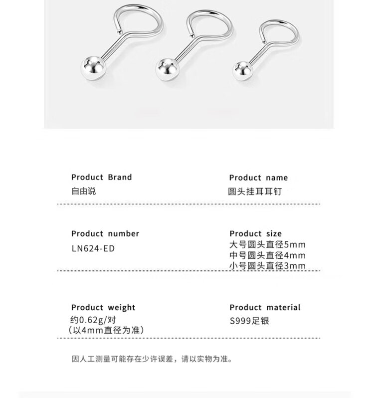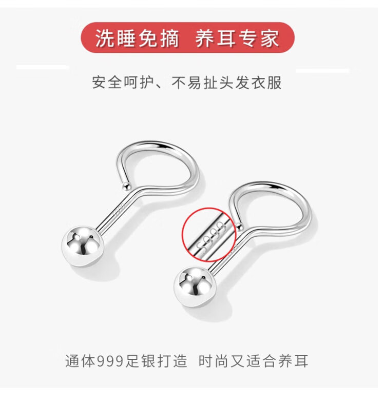 Free Talk 999 sterling silver curved hook earrings for women, pierced earrings, ear bone nails, anti-falling earrings for sleeping, no need to remove ear sticks, anti-clogging needles, 3mm pure silver silver curved hook earrings