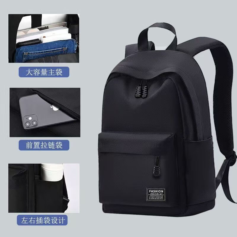 Backpack Men's Large Capacity Casual Travel Computer Bag Junior High School Student School Bag Black