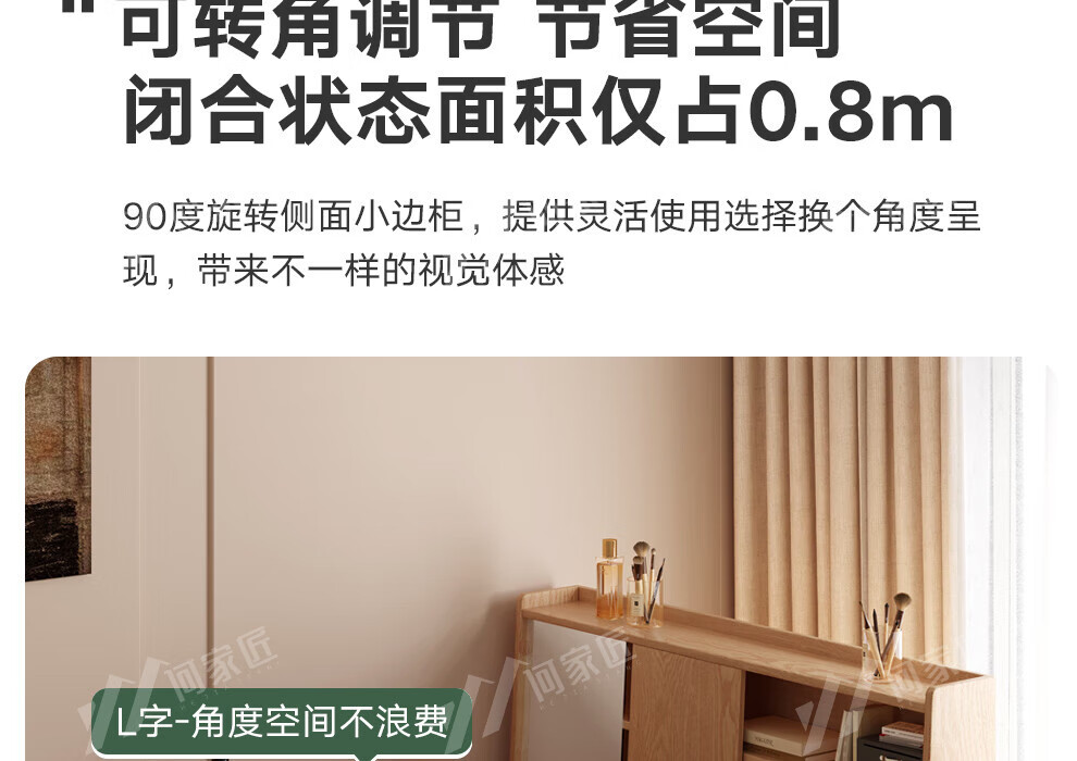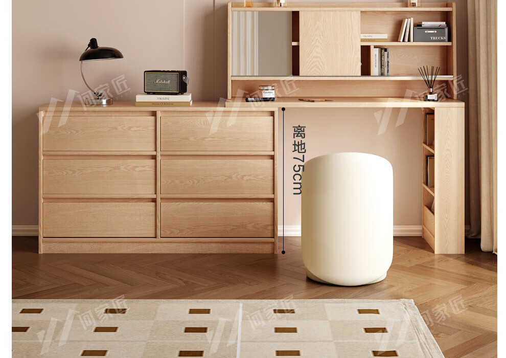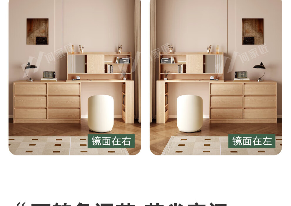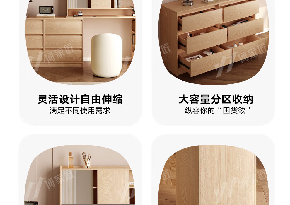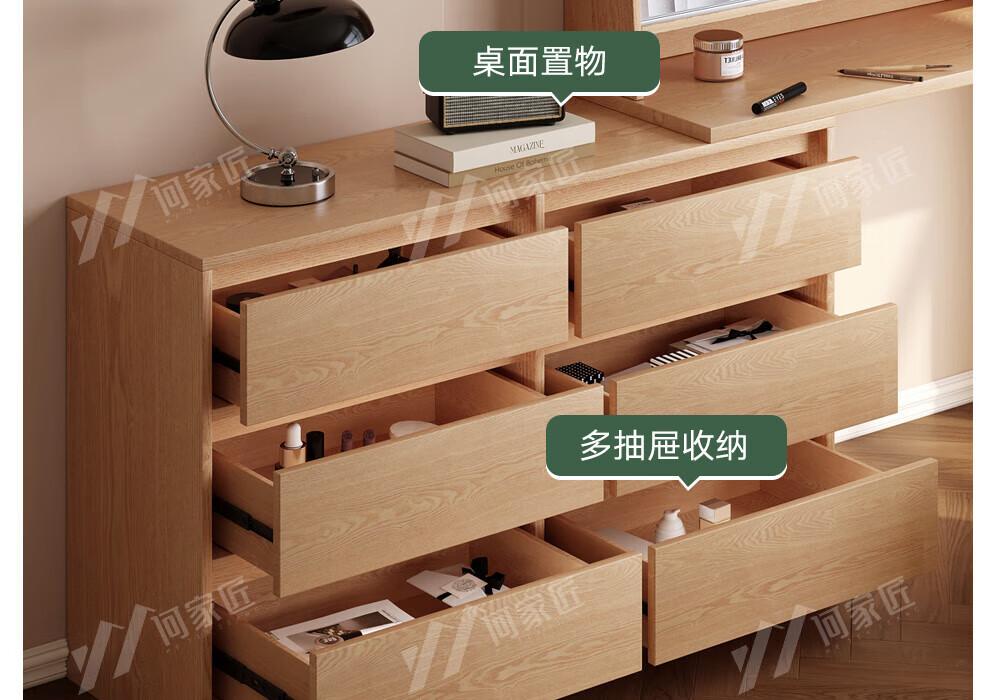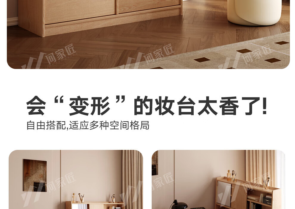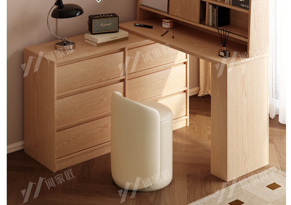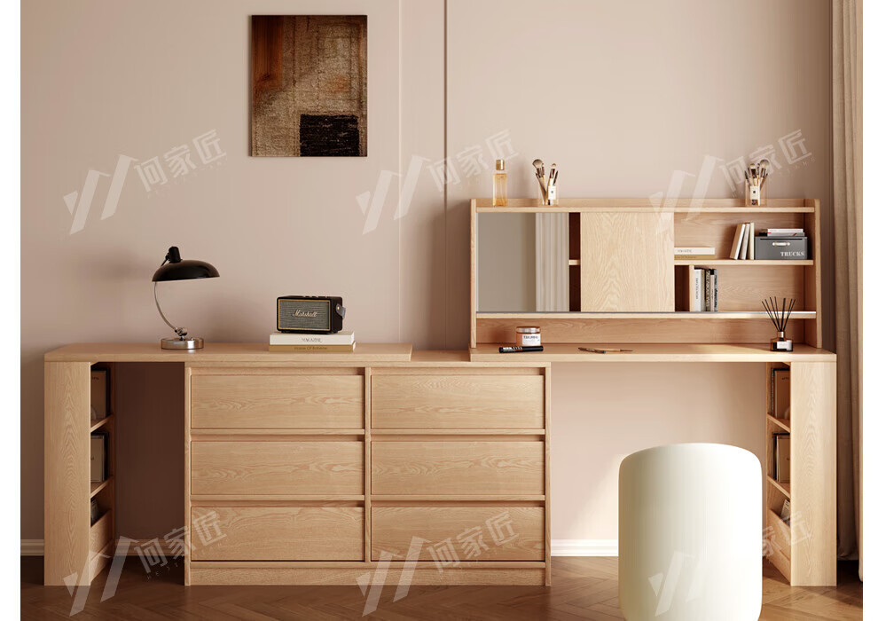 He Jiajiang all solid wood oak bedroom dressing table, cupboard and desk integrated corner dressing table, log style multi-functional dressing table, 1.2m cupboard + 1.2m dressing table + makeup stool, all solid wood