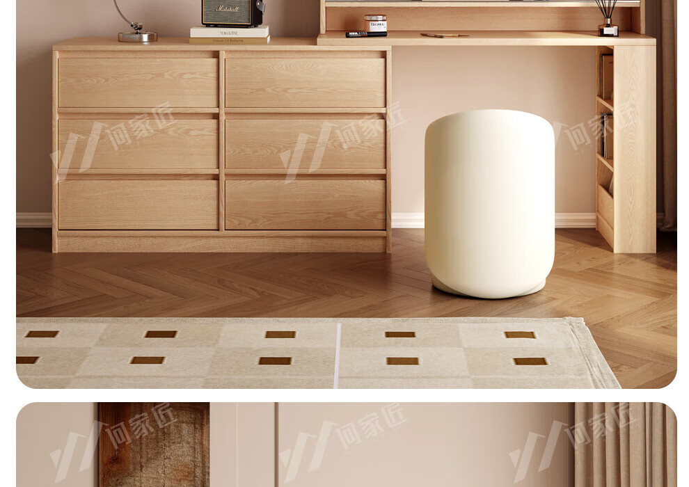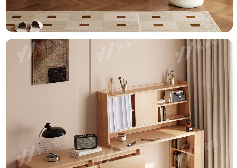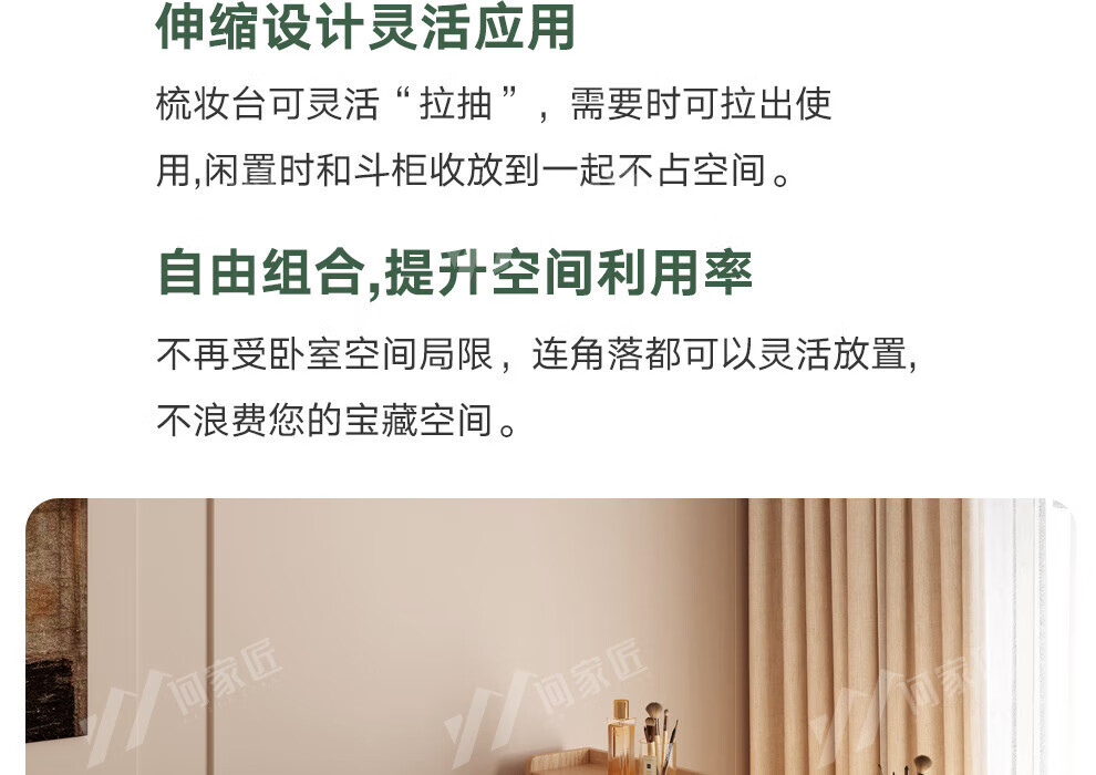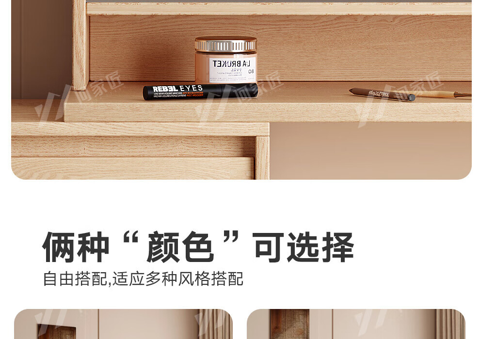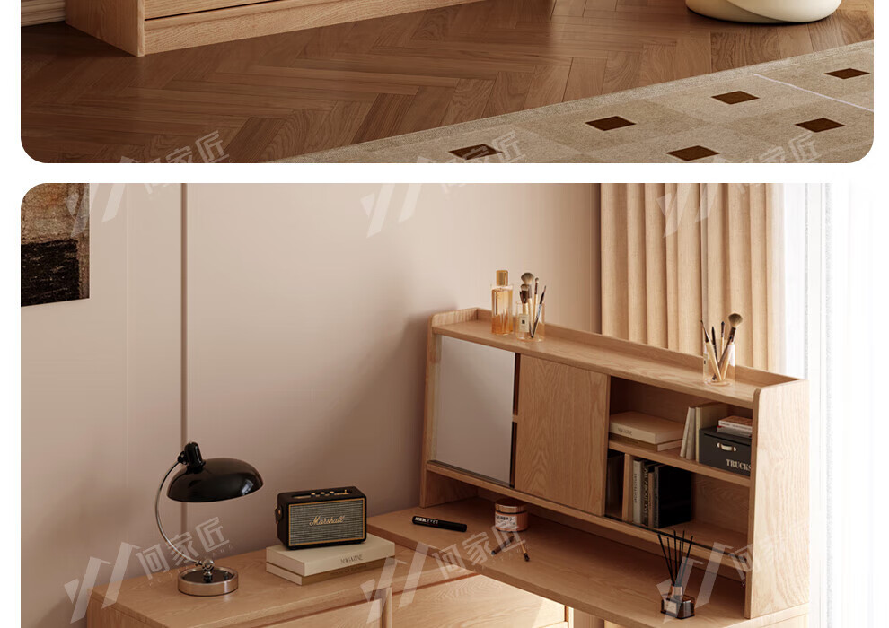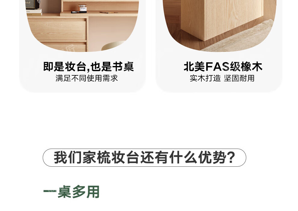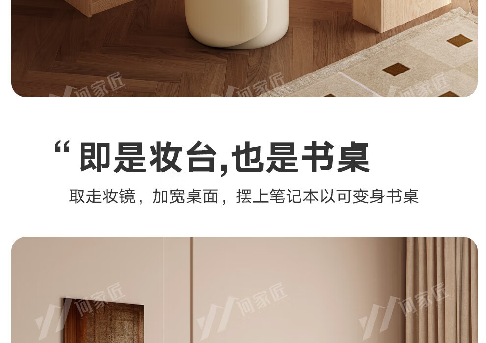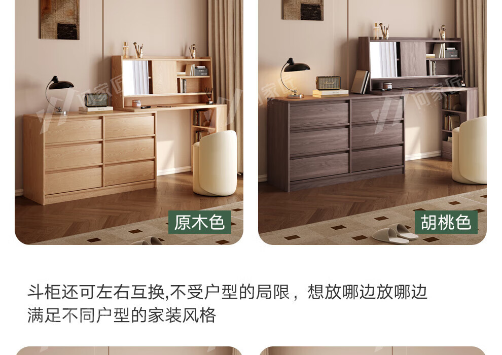He Jiajiang all solid wood oak bedroom dressing table, cupboard and desk integrated corner dressing table, log style multi-functional dressing table, 1.2m cupboard + 1.2m dressing table + makeup stool, all solid wood