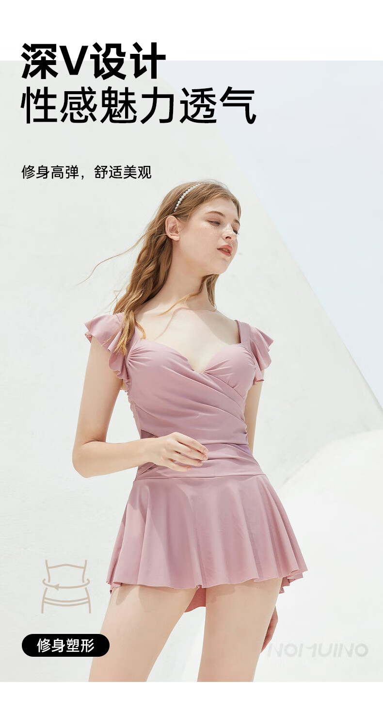 Nomuyi swimsuit for women, one-piece skirt, steel rims, pink sleeveless, sexy, belly-covering, slimming, fashionable hot spring swimsuit, fans, one size fits all, height 160-165cm, weight 80-120Jin Jin is equal to 0.5kg