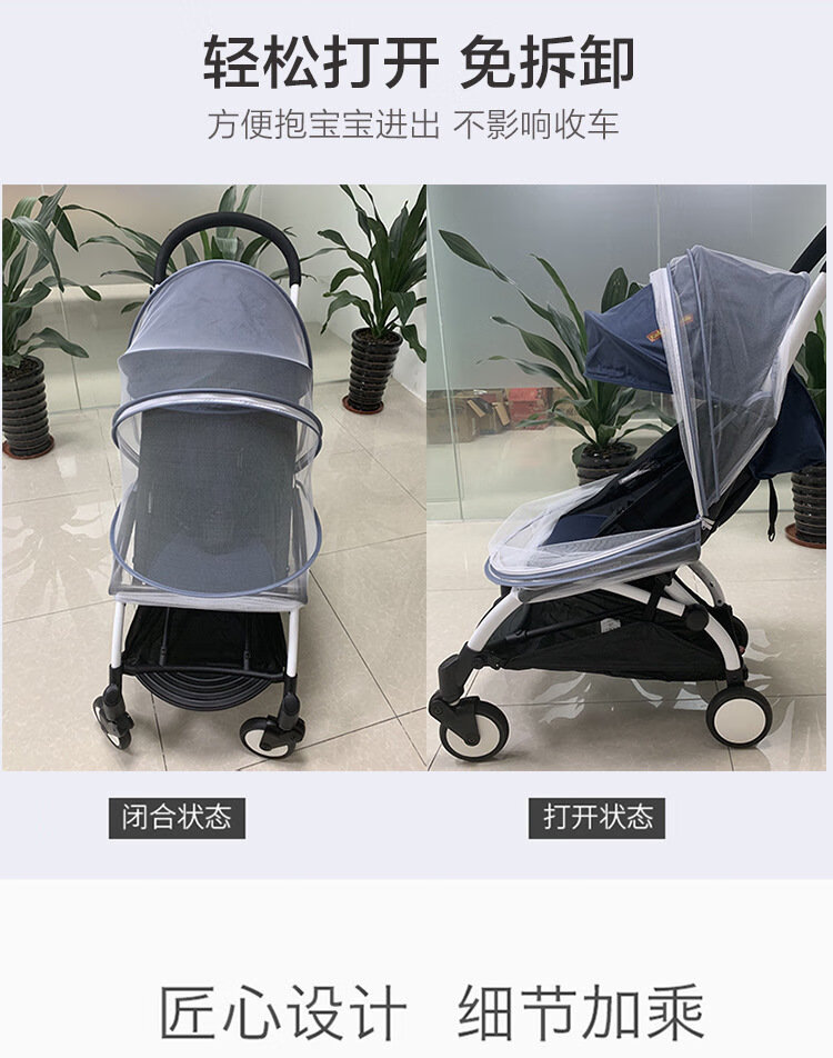 Elittile suitable for Elittile EMU baby stroller anti-mosquito net children's stroller full cover anti-flying catkins black-43cm 100cm