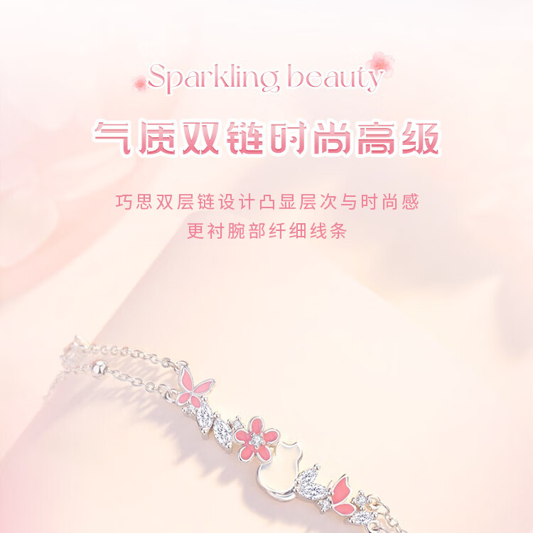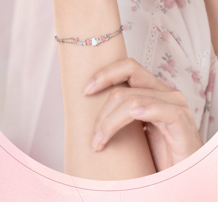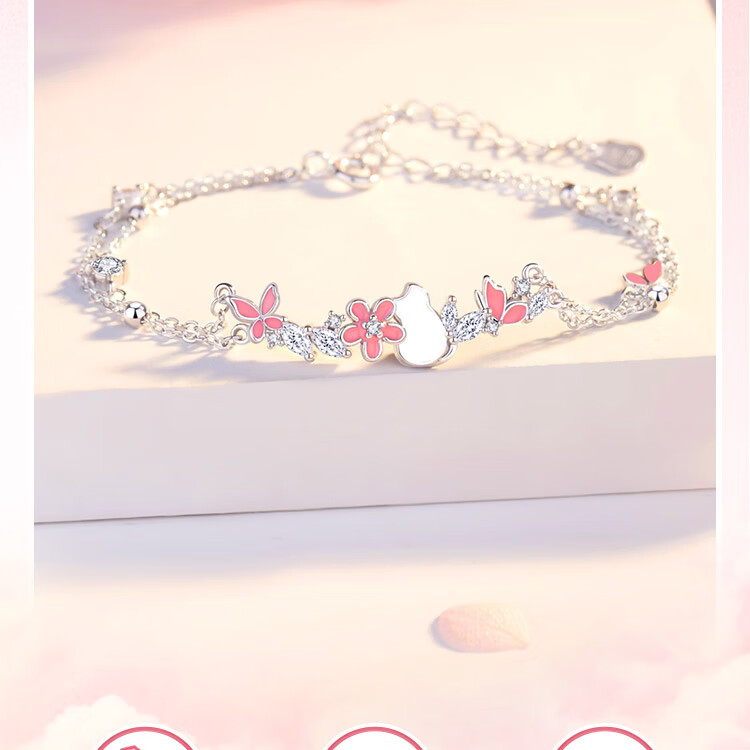 Ginqianhui 999 sterling silver cat bracelet for women, high-end light luxury butterfly bracelet for women, birthday gift for girlfriend and wife. Butterfly cat double-layer bracelet/luminous effect + seven warehouse delivery/next day delivery, high-end rose gift box/with jewelry certificate/Valentine's Day girl gift