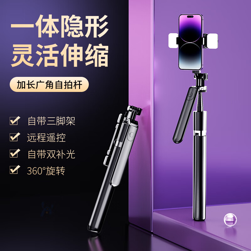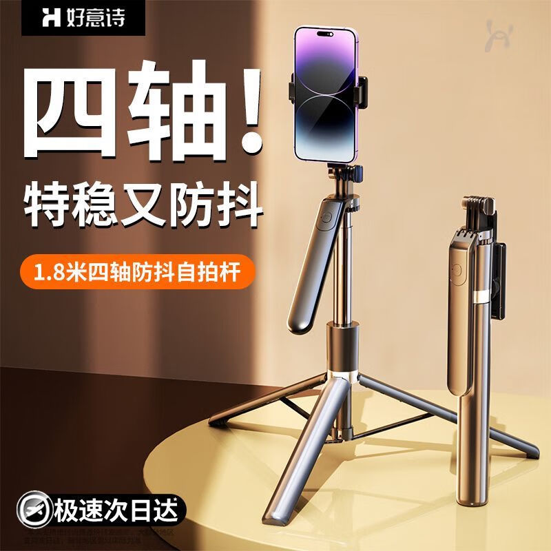 Jieyu 2025 anti-shake selfie stick, universal shooting bracket for mobile phones, 360-degree rotating travel portable floor-standing tripod, swing arm type 1.84 meters | four-axis true anti-shake black #vlog must-have