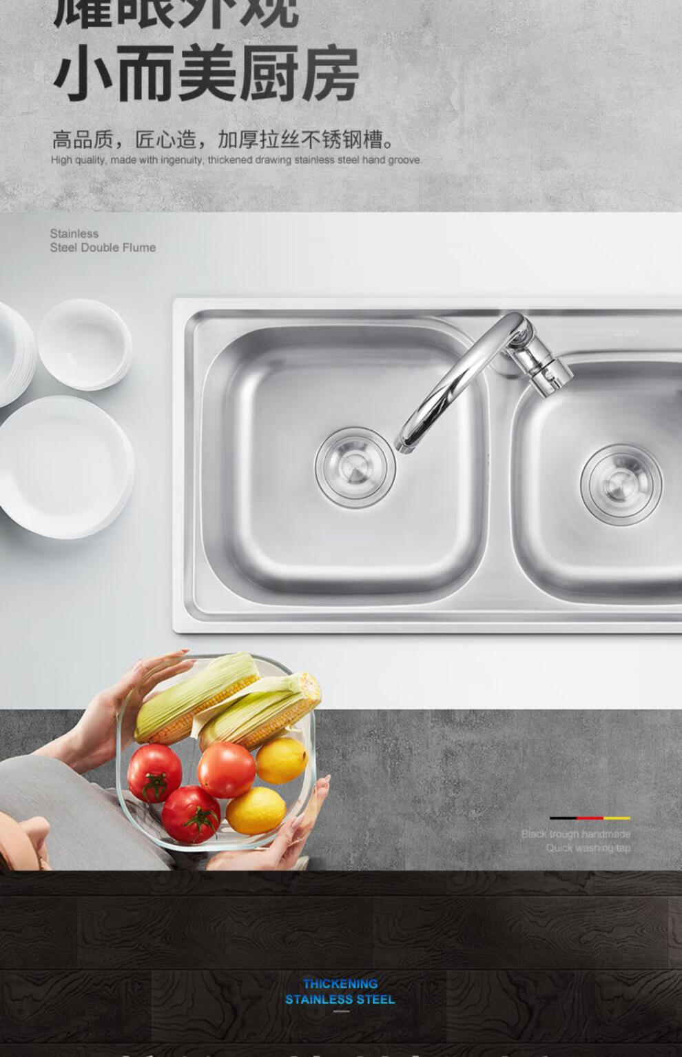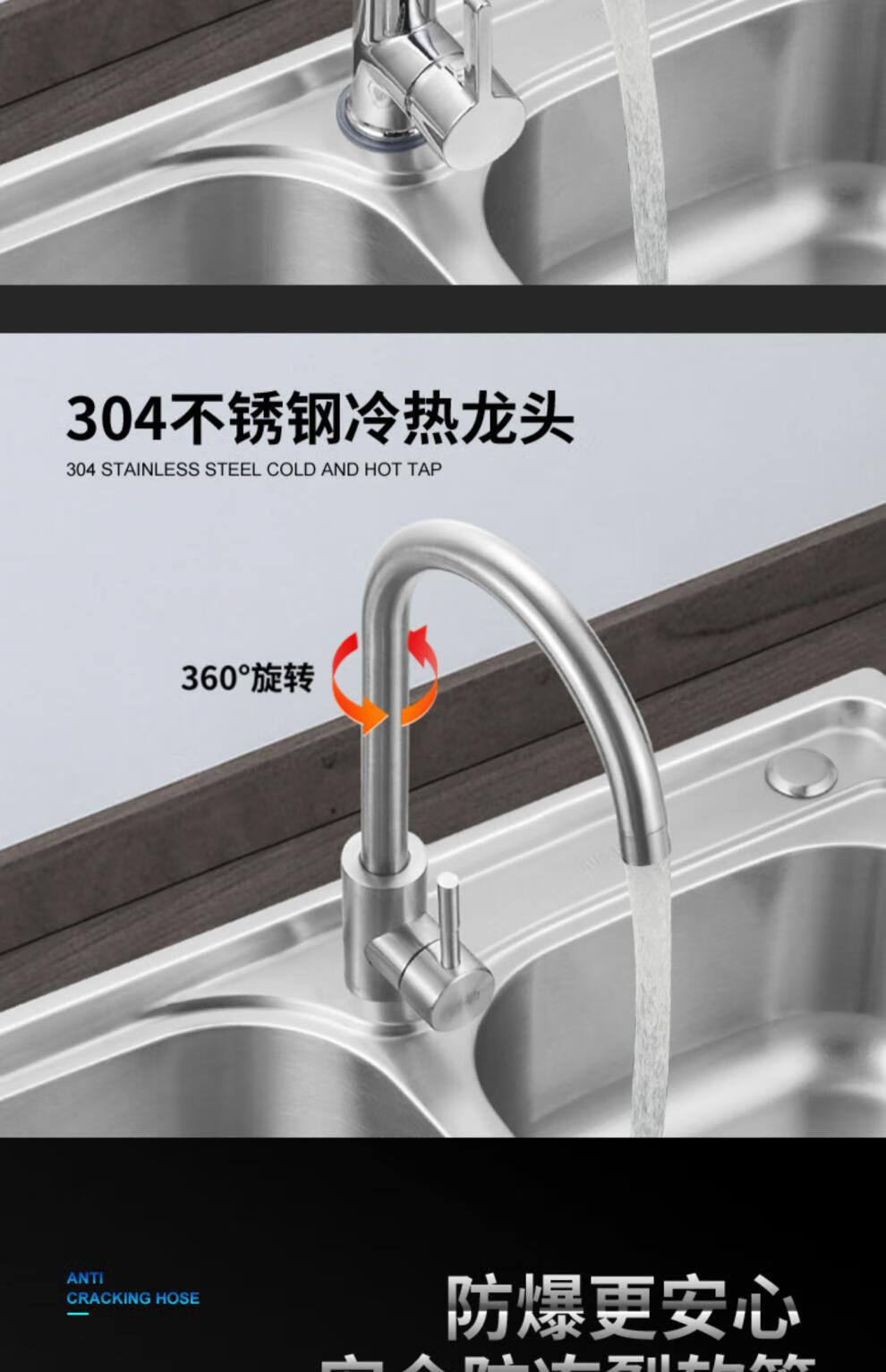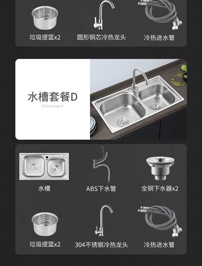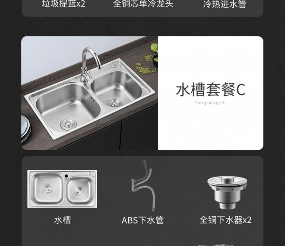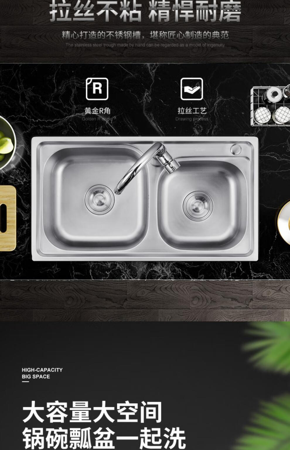 TOTOl official direct sales sink double-slot kitchen stainless steel sink thickened 304 dish basin sink dish thick section 68*38 basic package