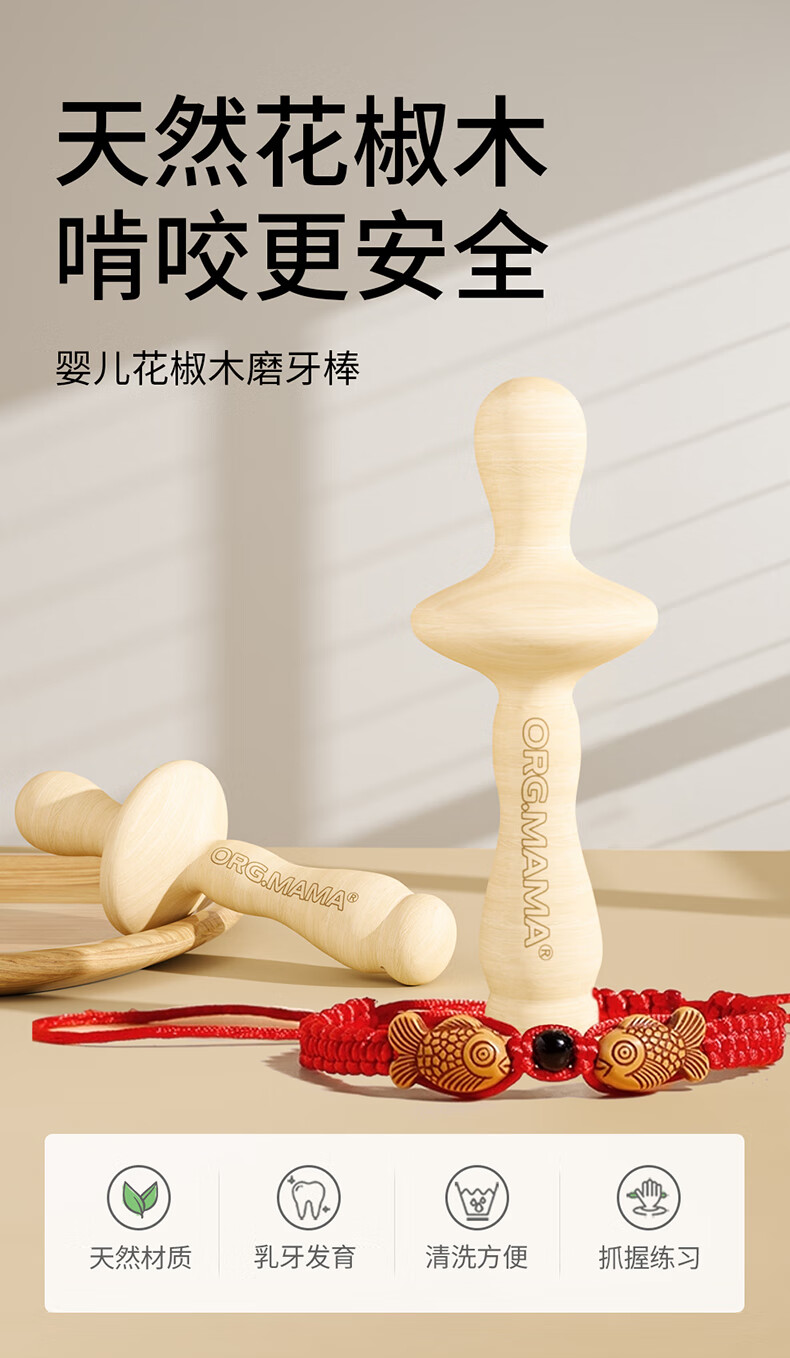 Mamaguo (org.mama) Zanthoxylum wood molar stick, baby teething glue, baby teething glue stick for 3-6 months and above, soothing toy, Zanthoxylum wood molar stick, storage box + red string 1 piece