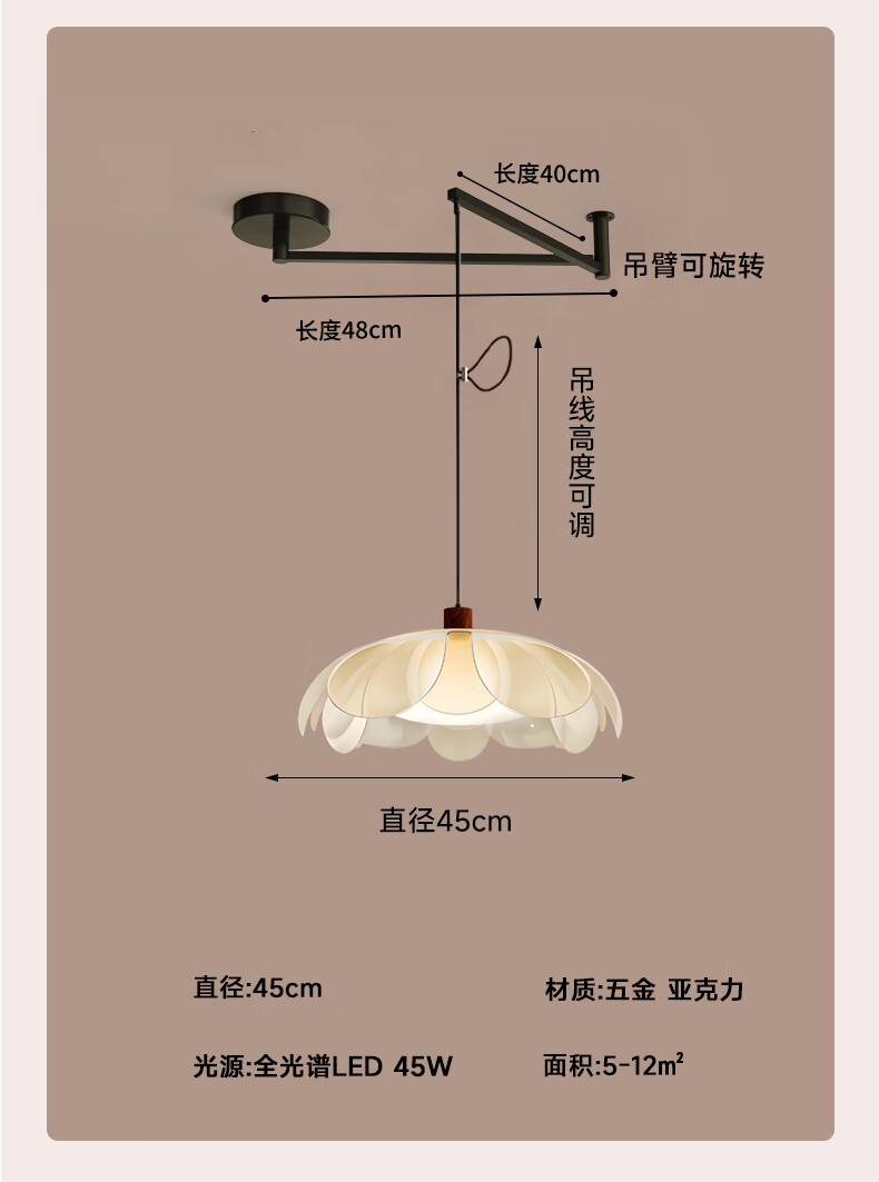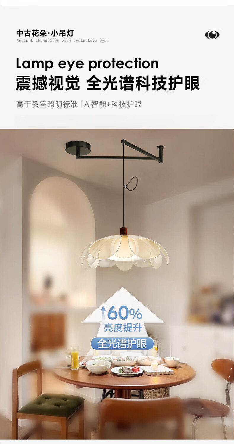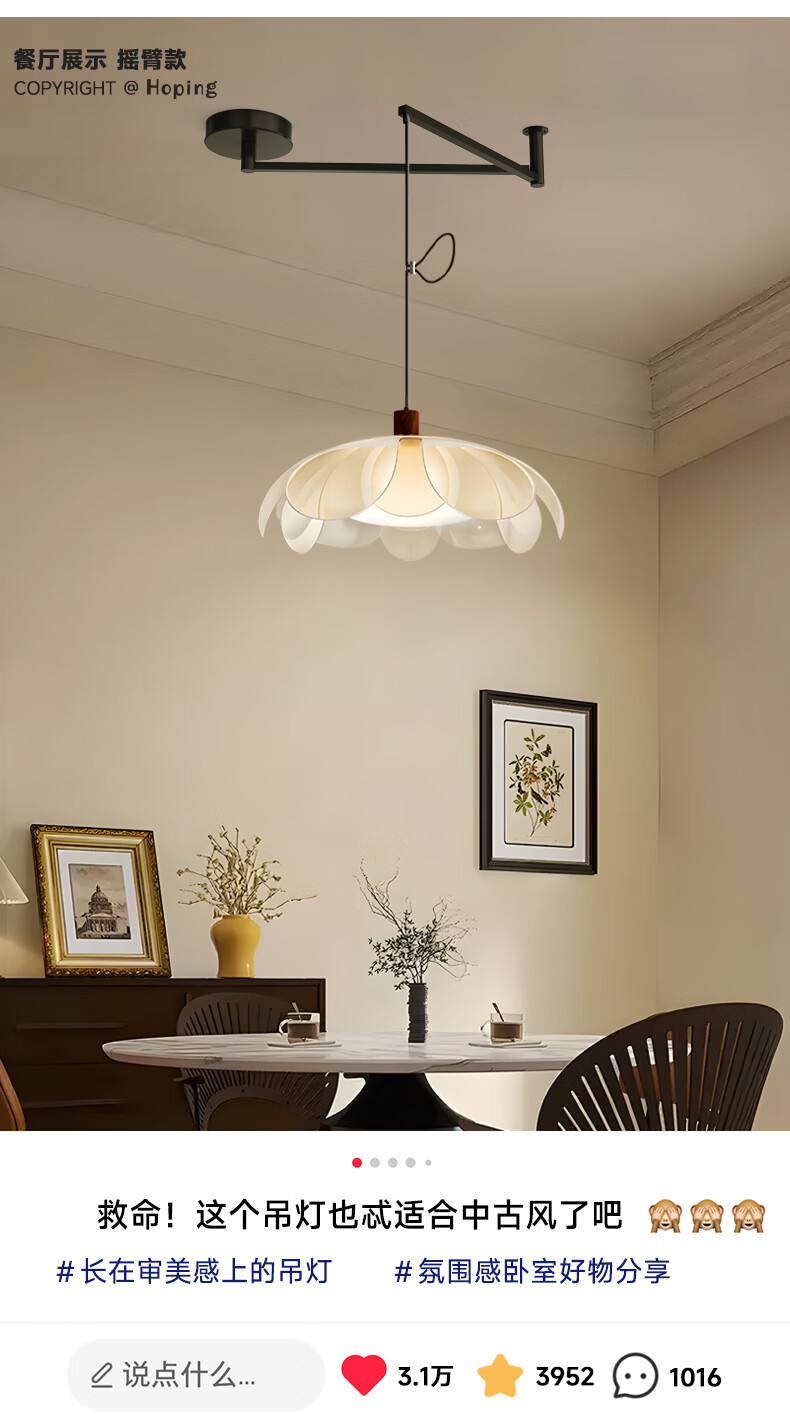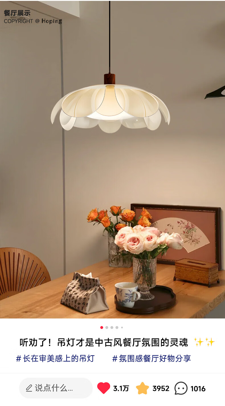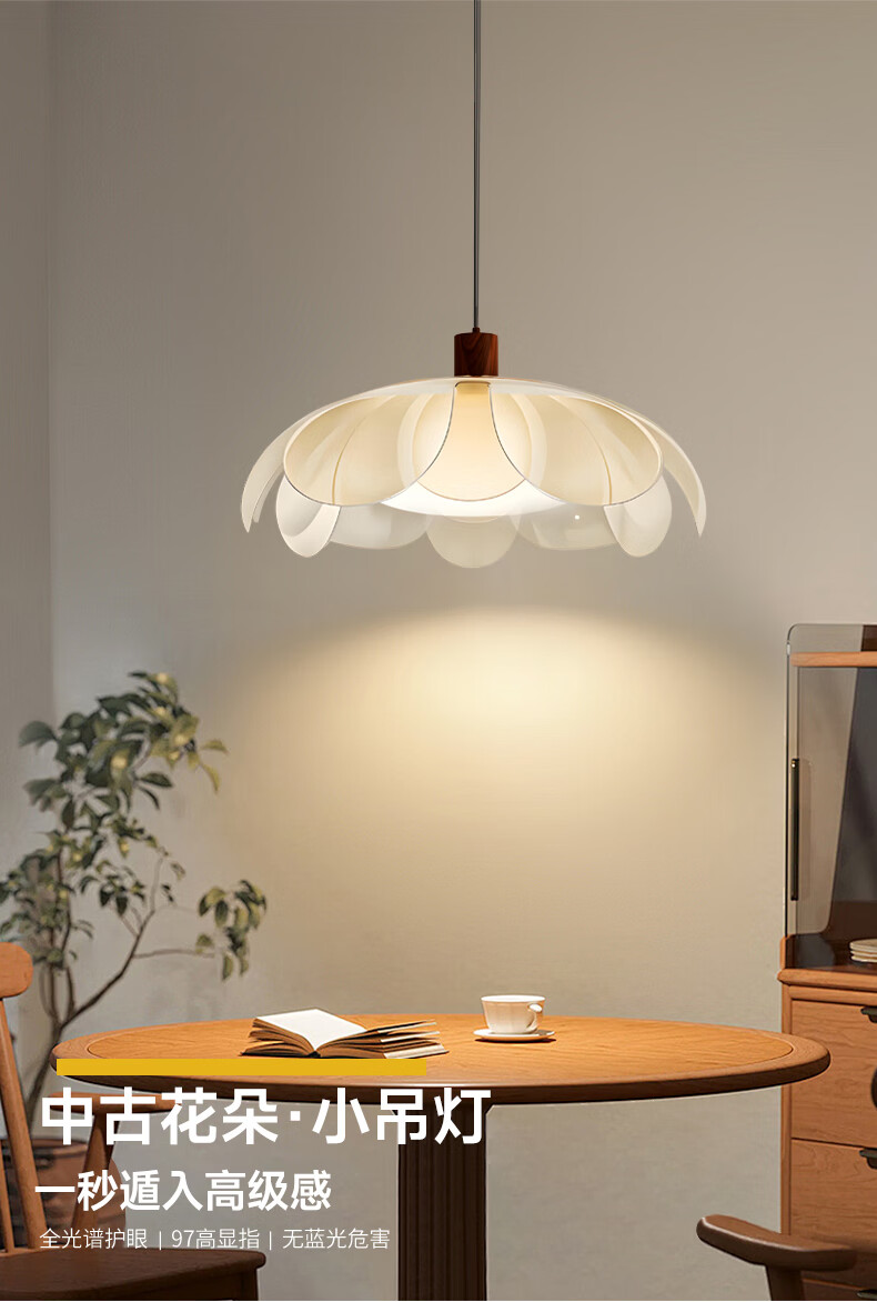 Red product Aijia French medieval style restaurant chandelier cream style 2025 new study room high-end petal bar table lamps chandelier style/45CM three-color light (acrylic flower