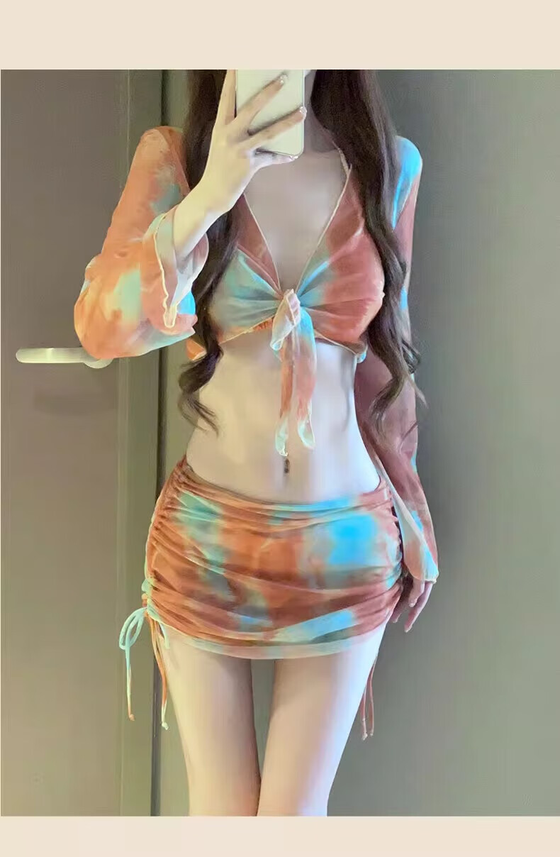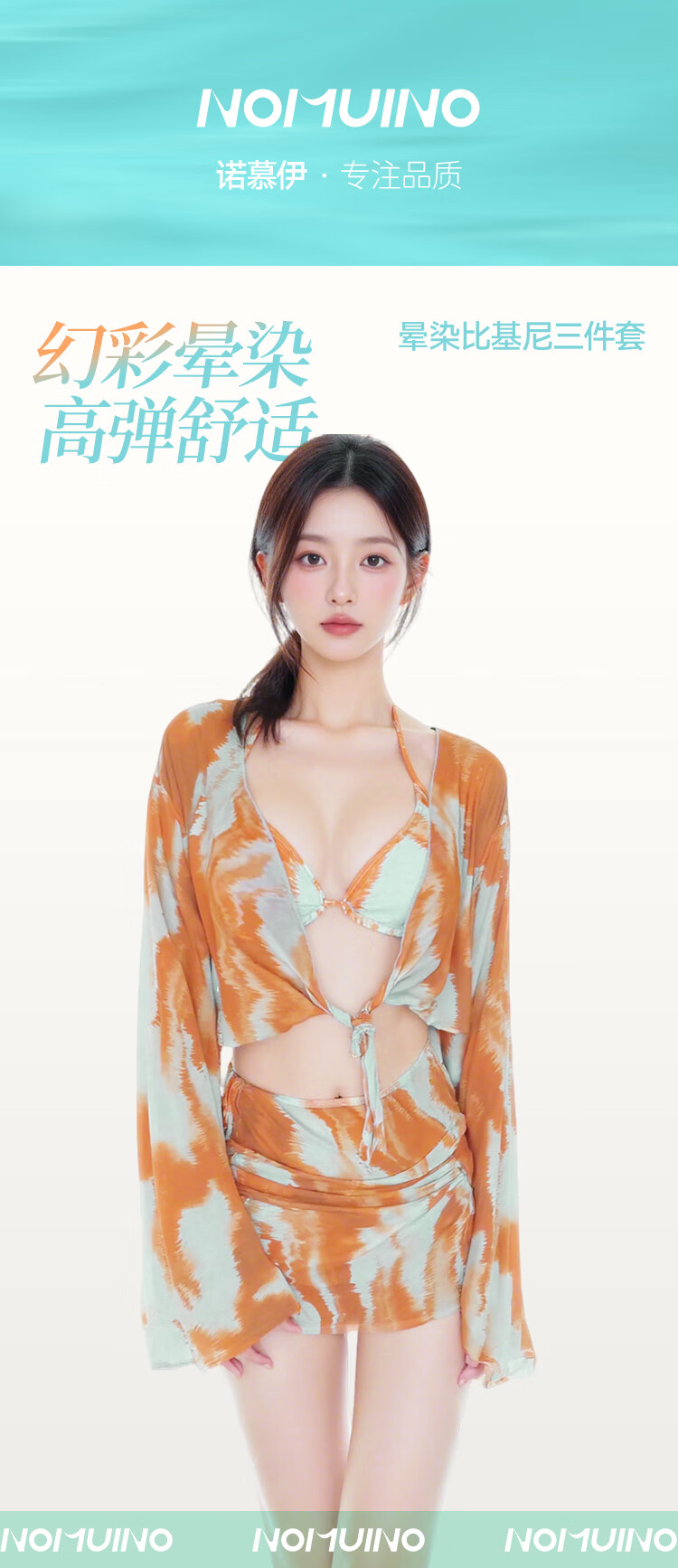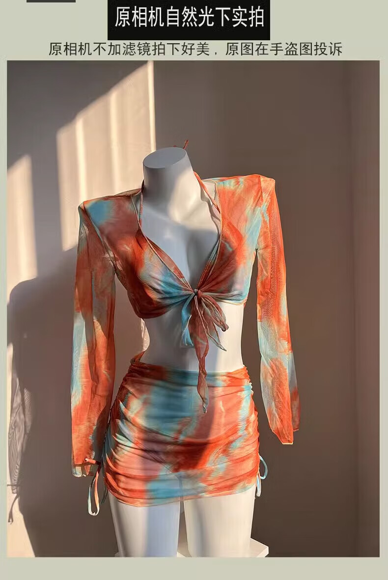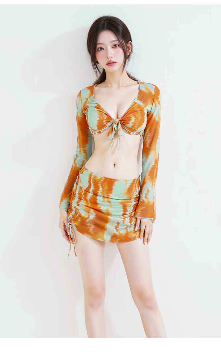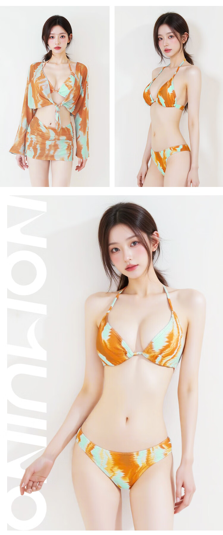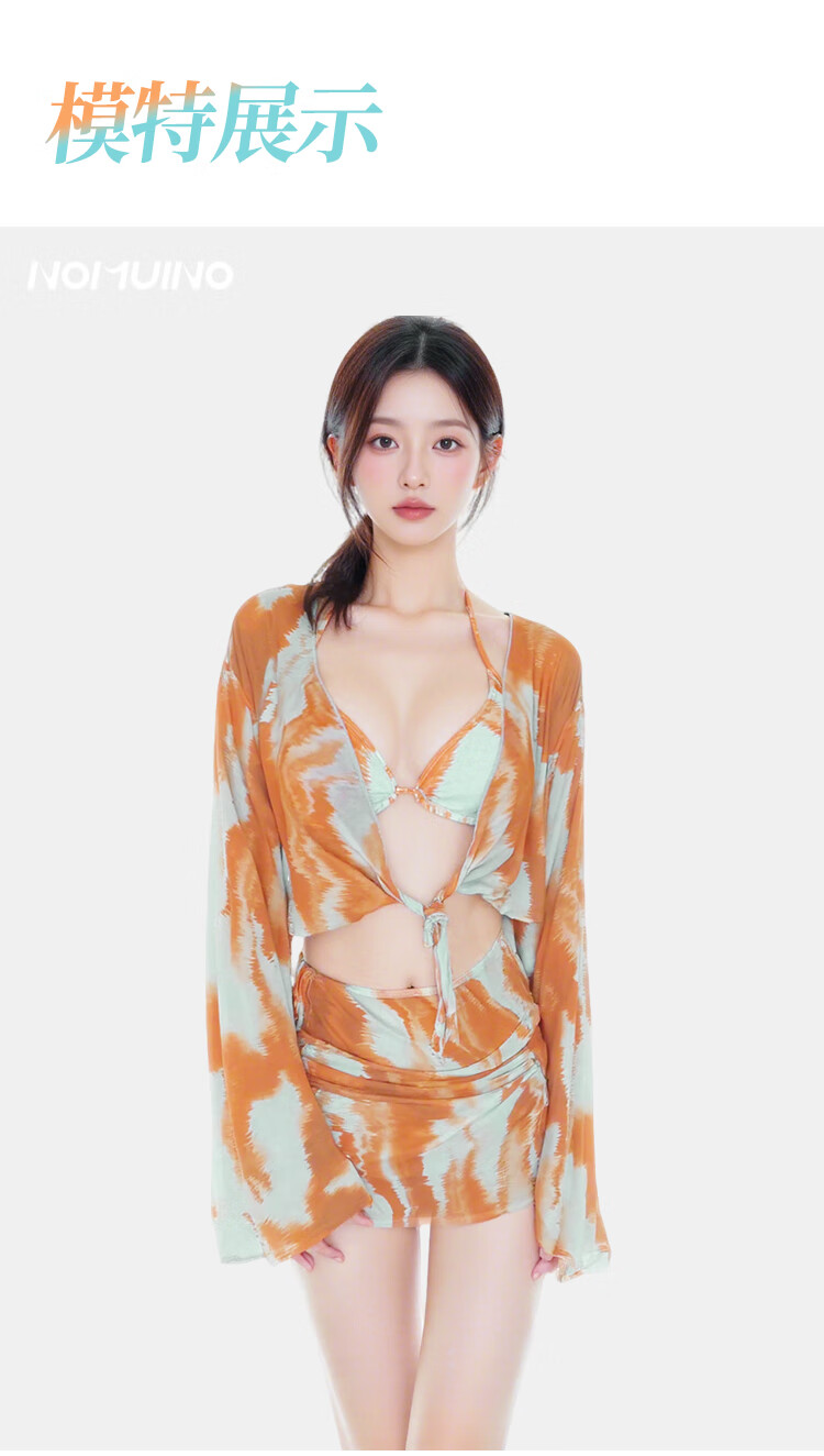 Nomuyi swimsuit women's retro new bikini four-piece long-sleeved sunscreen covering conservative high-end island resort hot spring high-end four-piece set M recommended 95-105 Jin Jin equals 0.5 kg