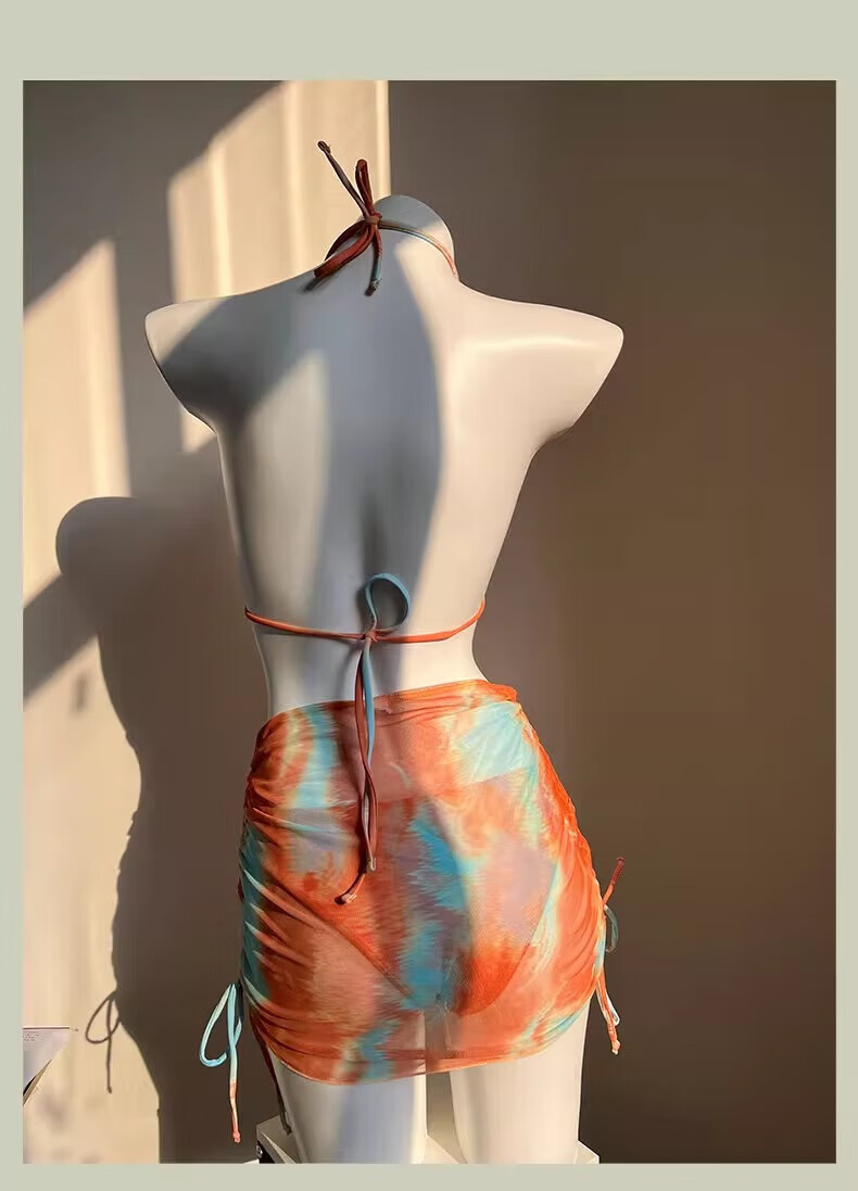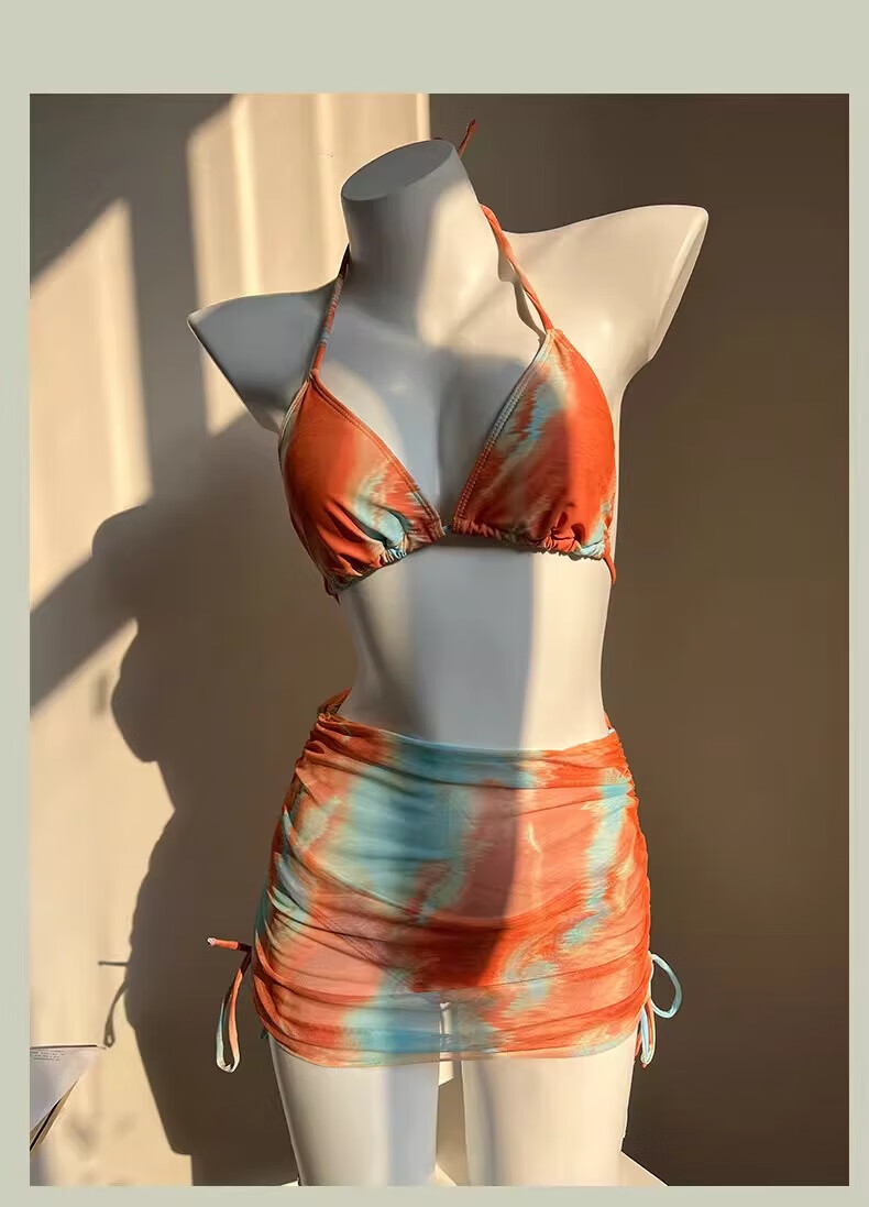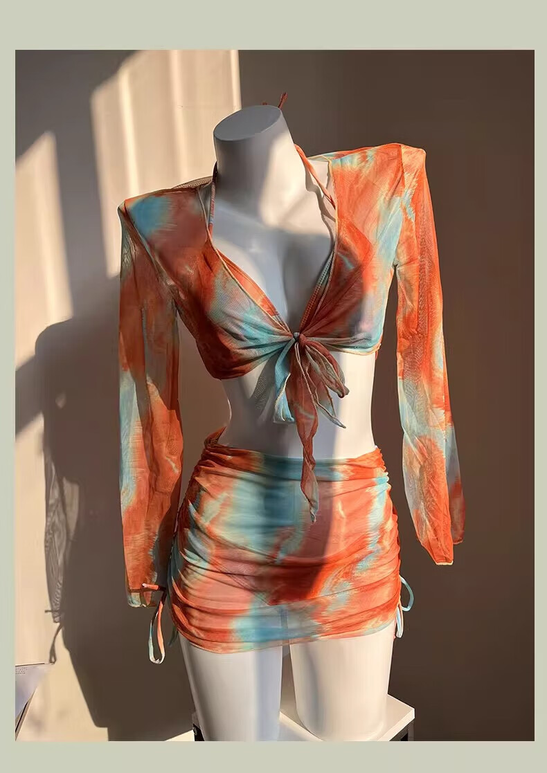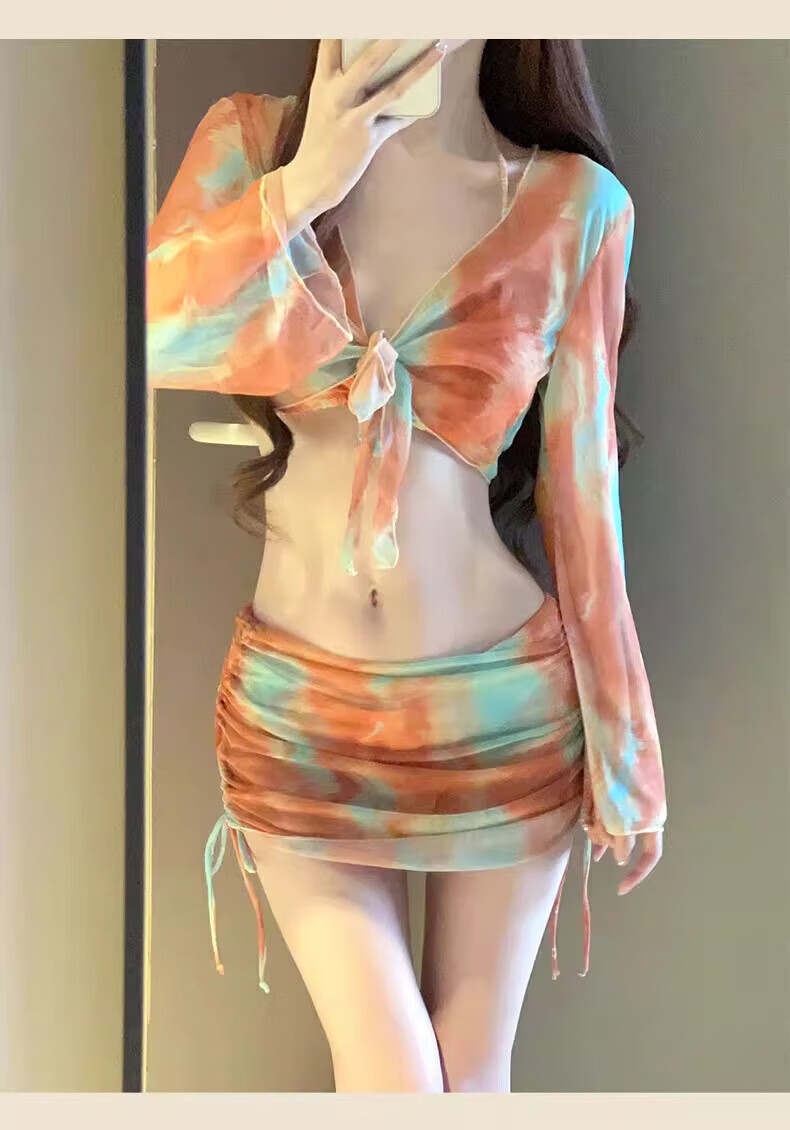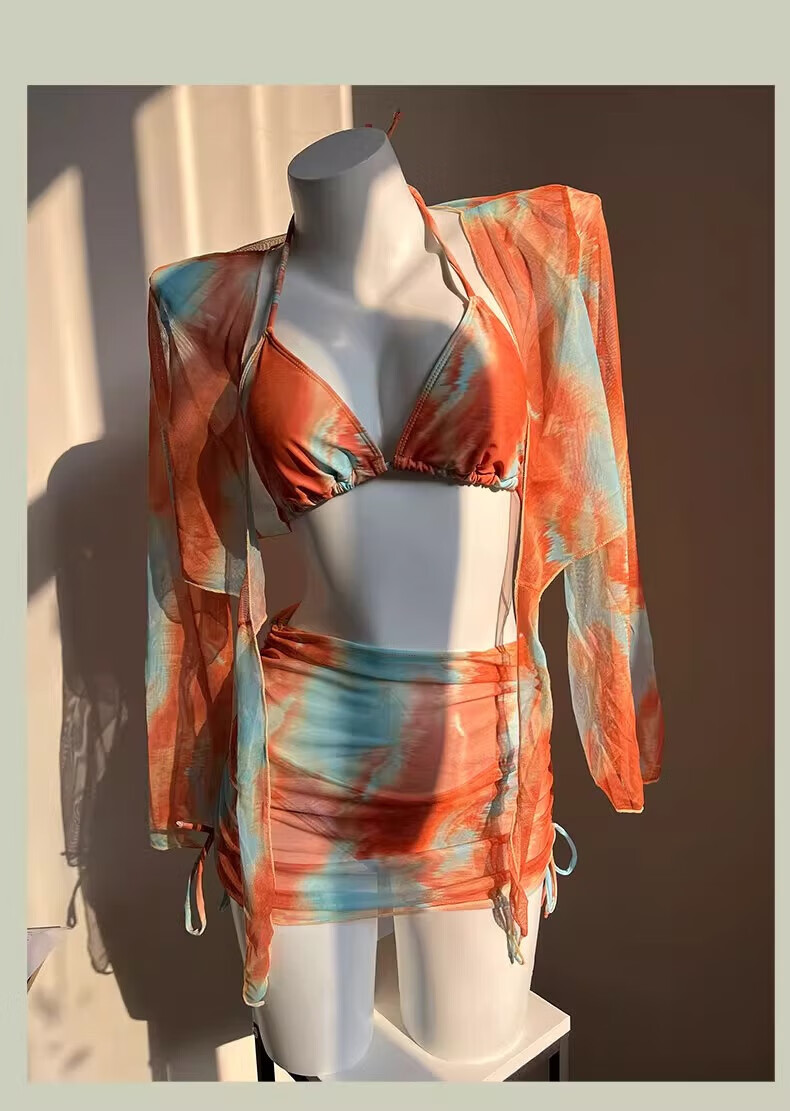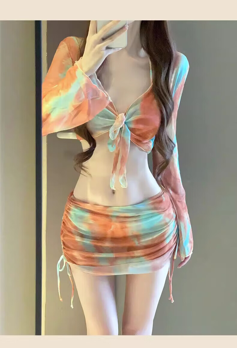 Nomuyi swimsuit women's retro new bikini four-piece long-sleeved sunscreen covering conservative high-end island resort hot spring high-end four-piece set M recommended 95-105 Jin Jin equals 0.5 kg