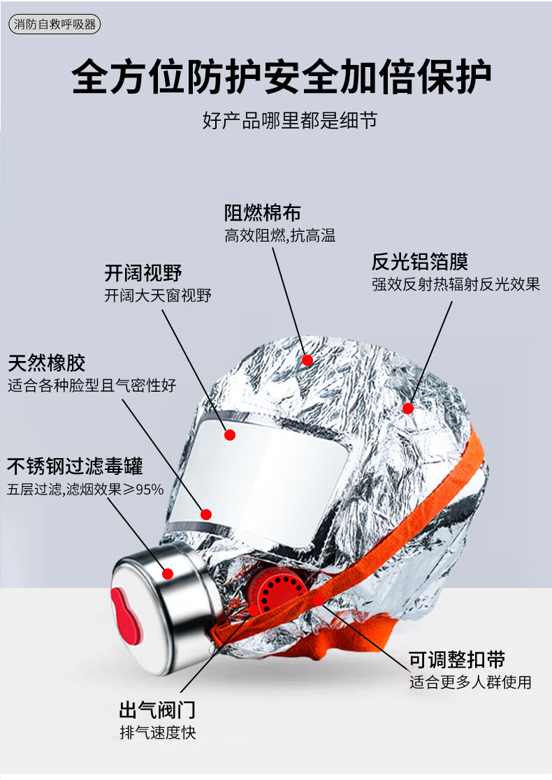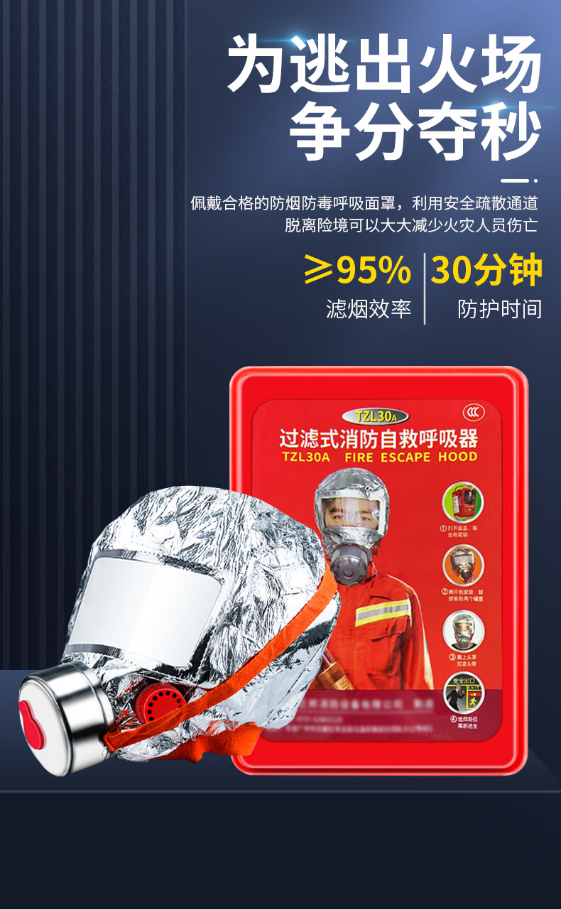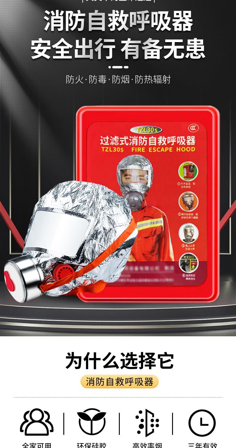 Yanhuang gas mask fire mask anti-smoke fire mask 3C certified escape filter self-rescue respirator silicone 1.5 meter fire blanket + mask + water-based