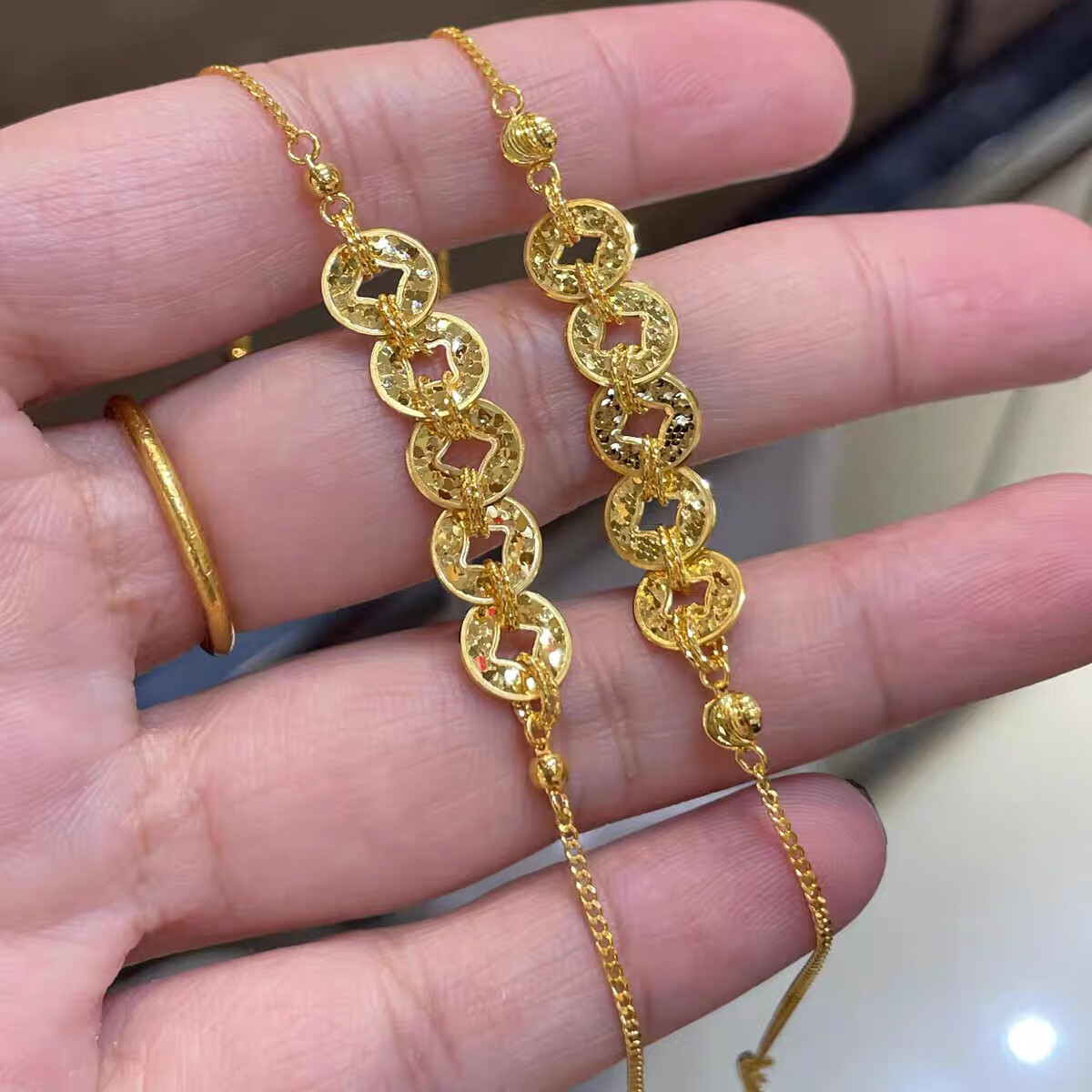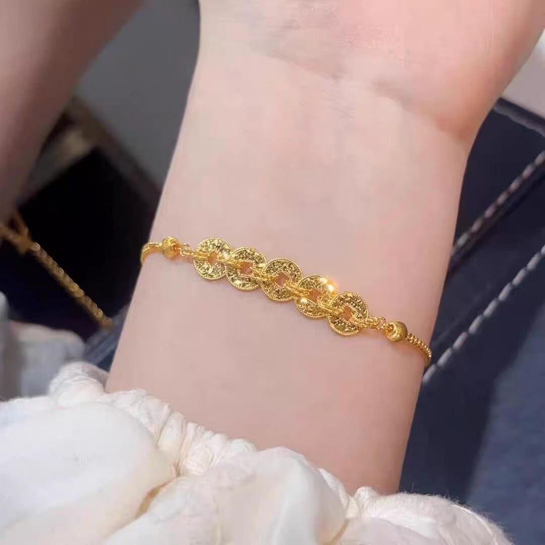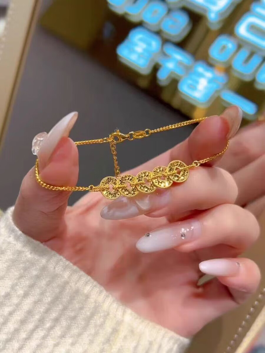 Xi welcomes Chinese Valentine's Day, gold-colored Five Emperors' Money necklace for women, 18K gold broken ice treasure coin bracelet for girlfriend, gold shop Five Emperors' Money necklace