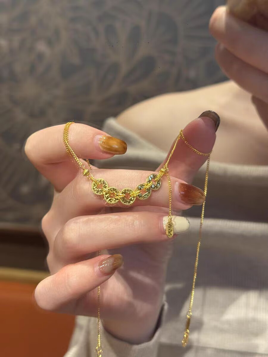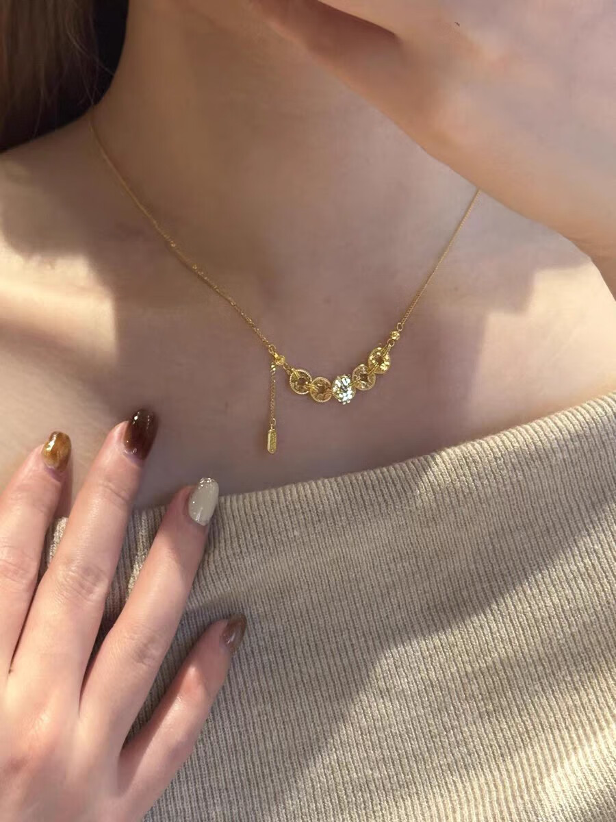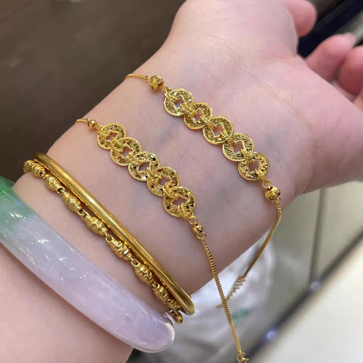 Xi welcomes Chinese Valentine's Day, gold-colored Five Emperors' Money necklace for women, 18K gold broken ice treasure coin bracelet for girlfriend, gold shop Five Emperors' Money necklace