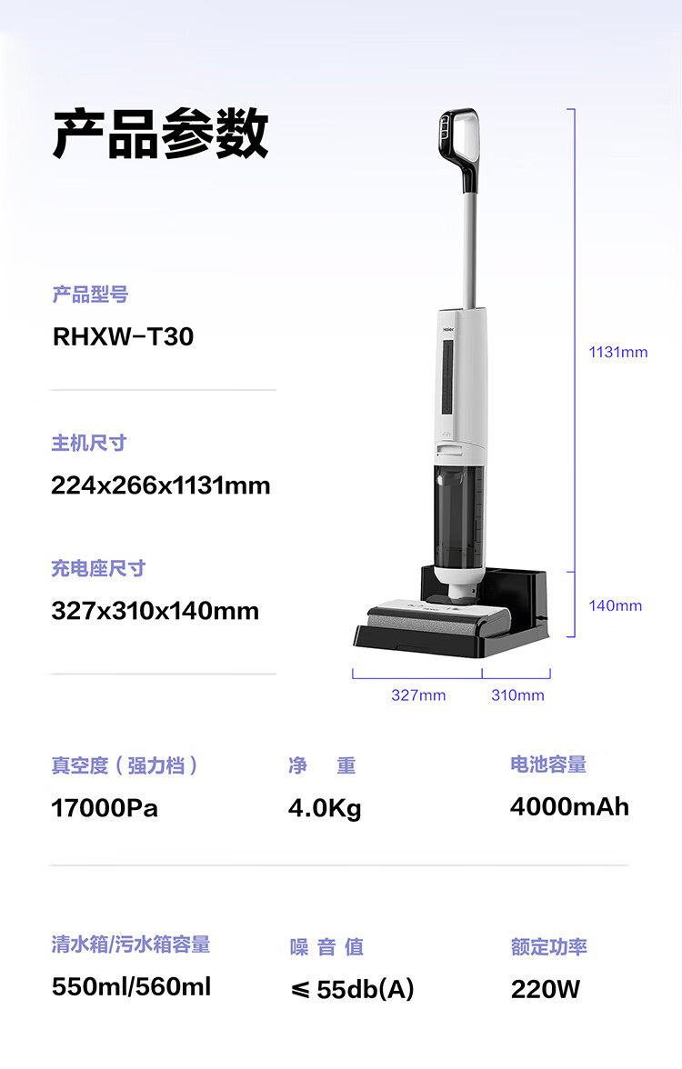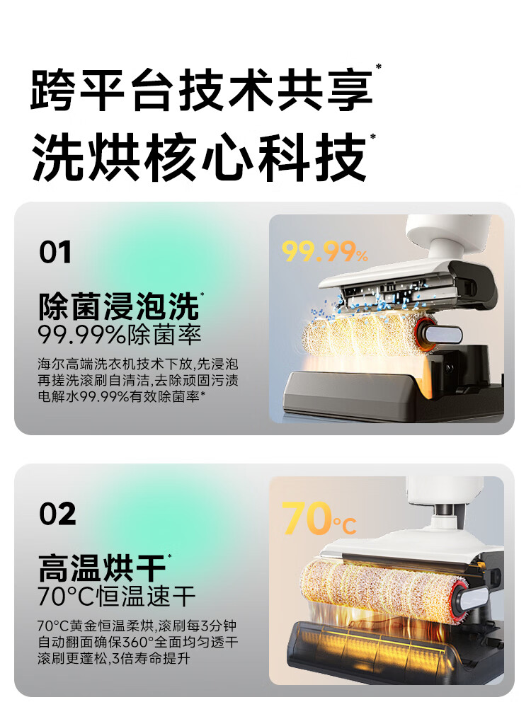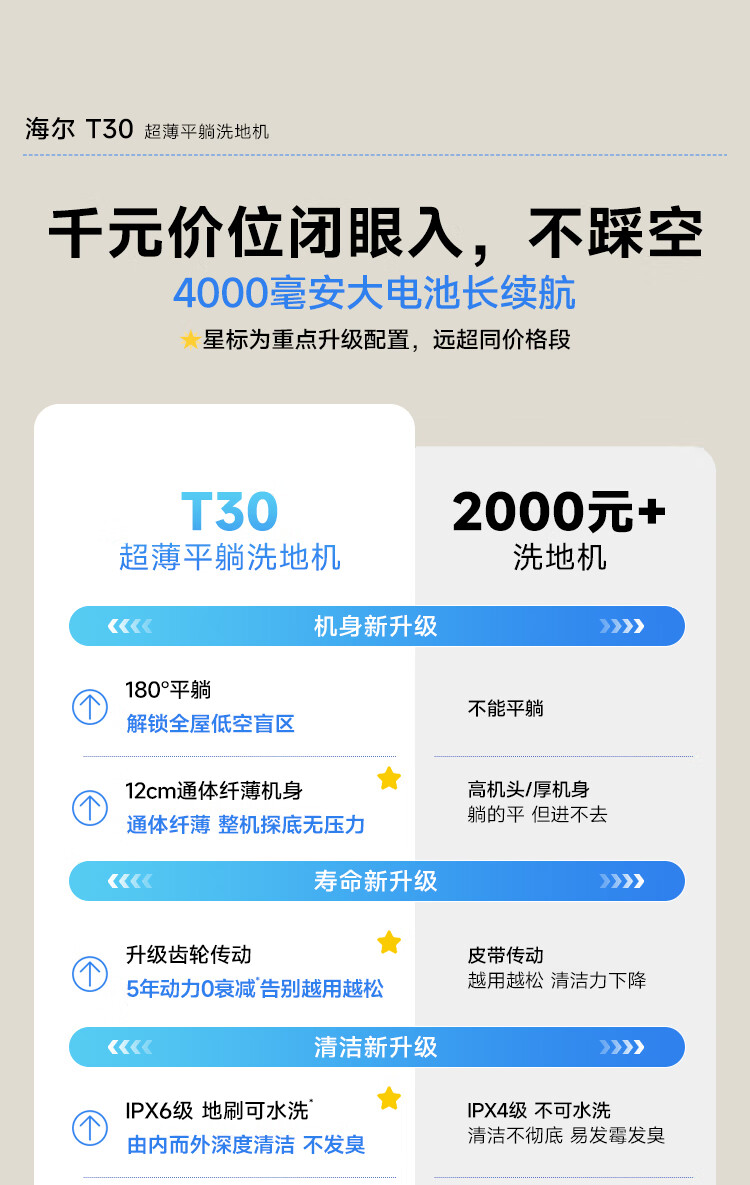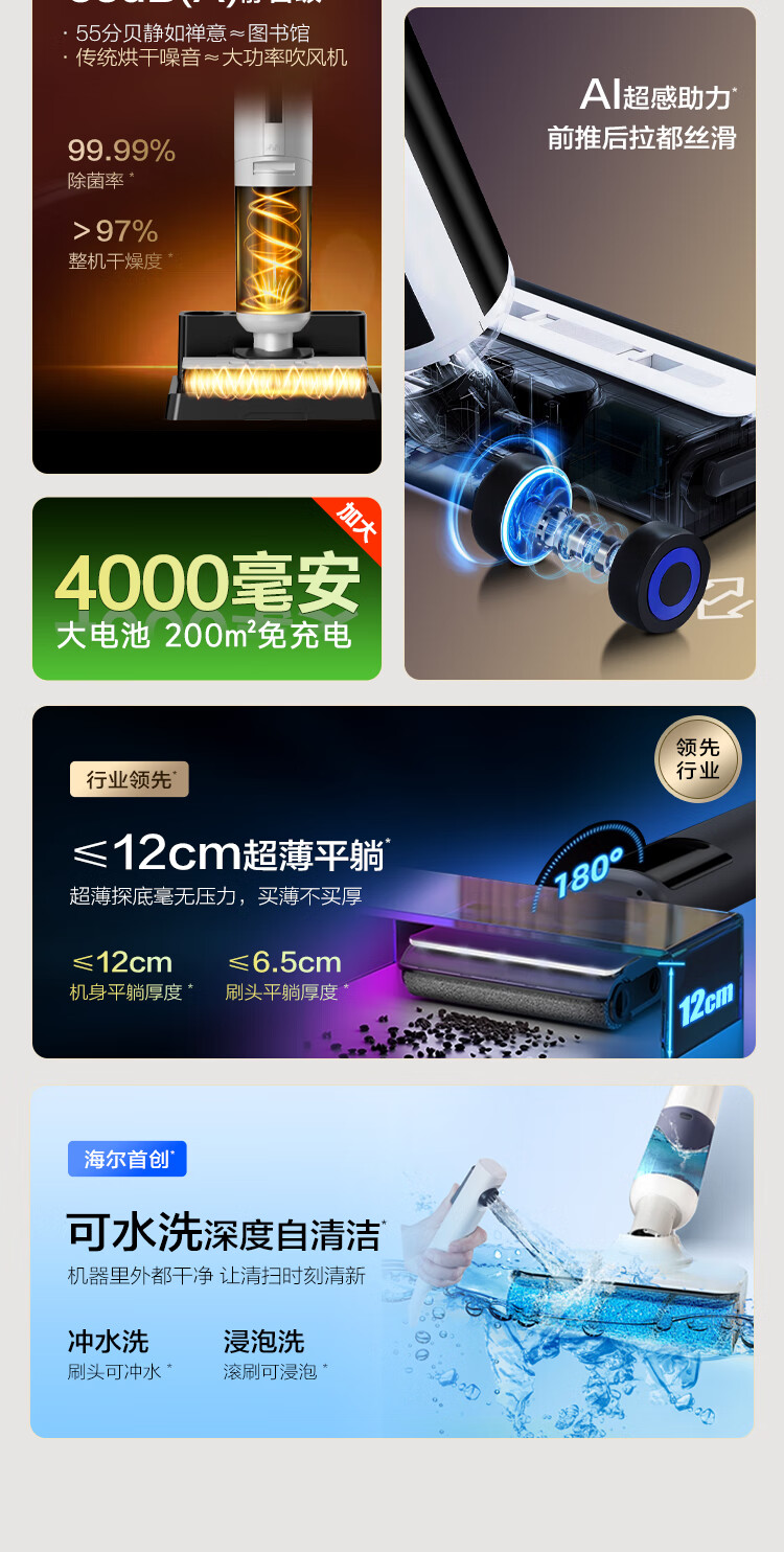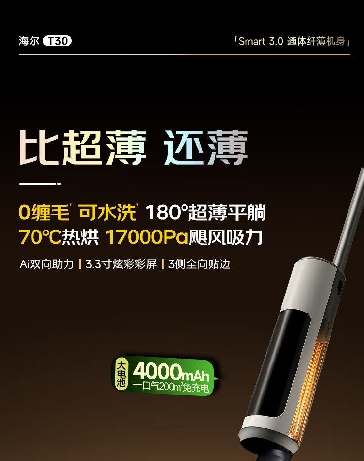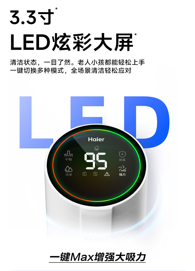 Haier T30 is washable, 0 tangled, 12cm ultra-thin, lies flat, 70 high temperature sterilization, state-subsidized smart household floor scrubber, vacuum, sweep and mop all-in-one machine, upgraded to 3.3-inch colorful large screen (not small screen with handle)