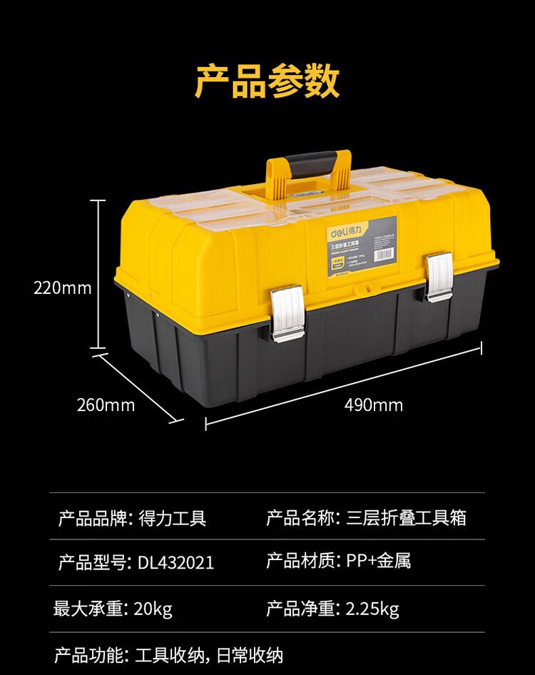 Deli Hardware Tool Box Storage Box Set Car Repair Tool Electrician Home Portable Large Industrial Grade Empty Box 12-inch Reinforced Plastic Tool Box + Parts Box