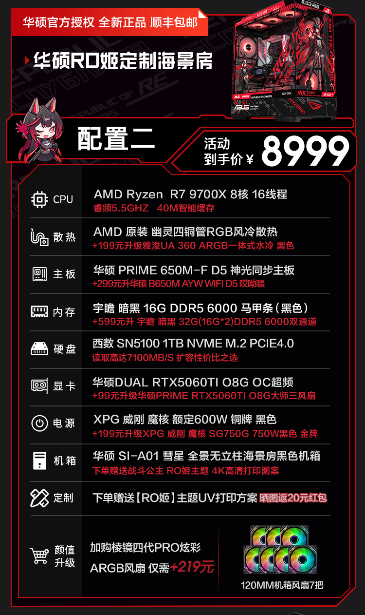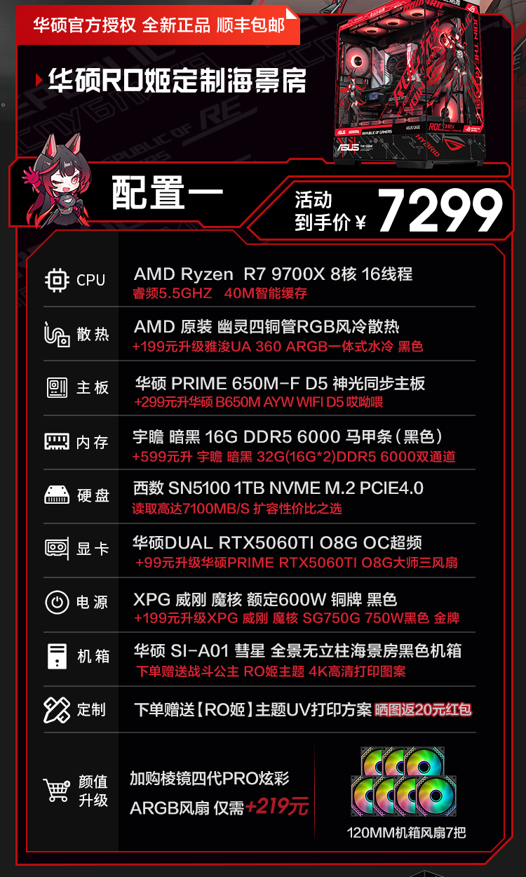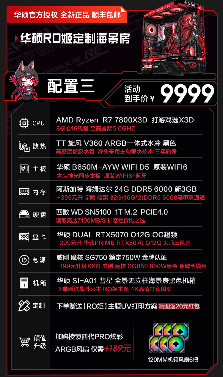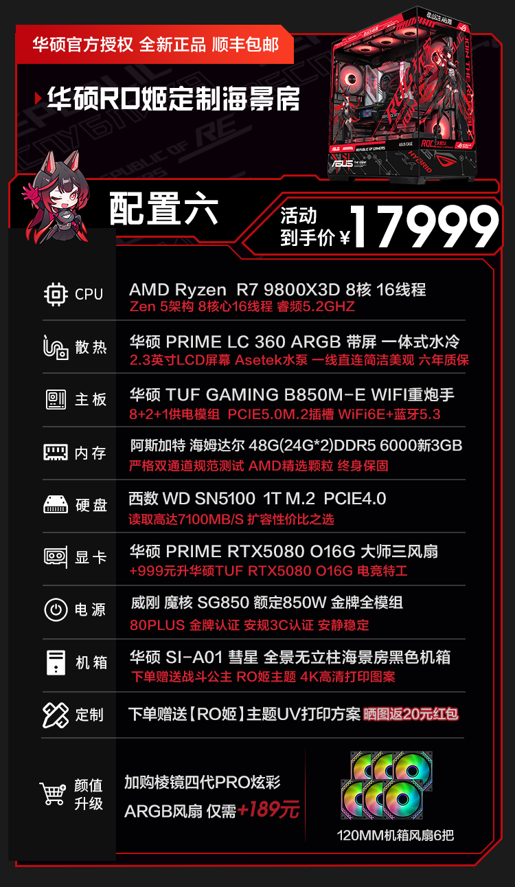 ASUS ROG family bucket R7 9800X3D ASUS RTX5070 5070Ti new graphics card e-sports game assembly computer AI smart DIY assembly machine computer host complete machine configuration 2 R7-9700X + ASUS RTX5070
