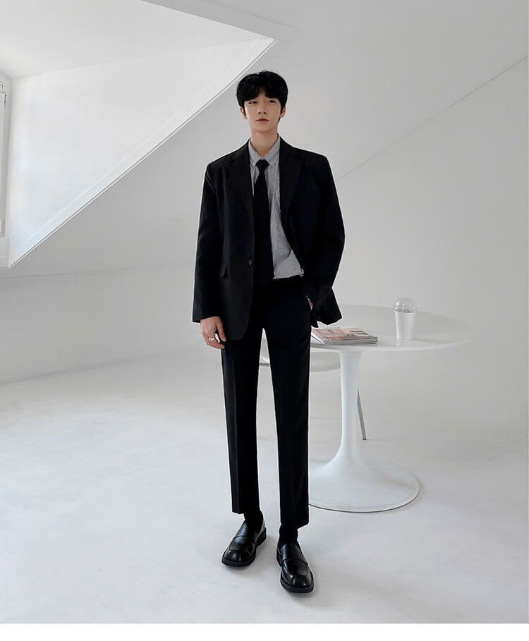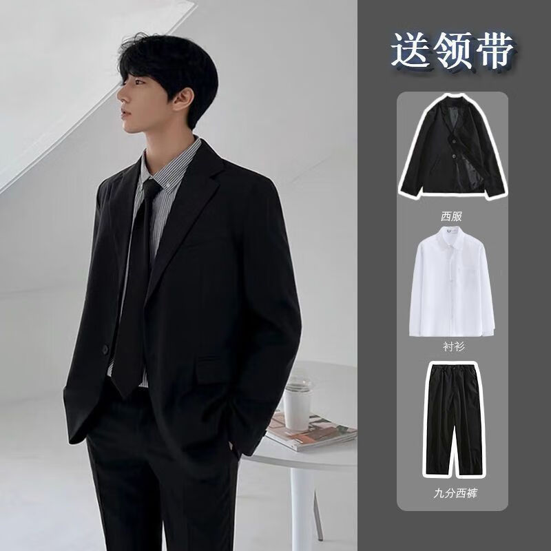 Lieyan suit complete set for male teenagers, high school students, college students, male graduation defense, interview, adult ceremony, club set, five pieces, belt + suit + short-sleeved shirt + tie + trousers 2XL. Follow the store for priority delivery